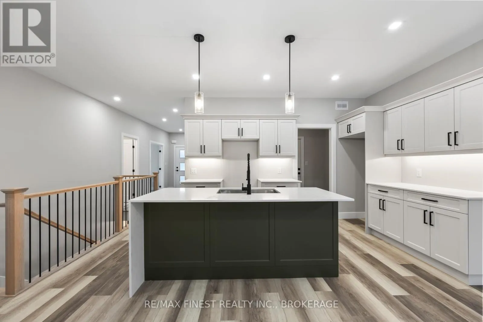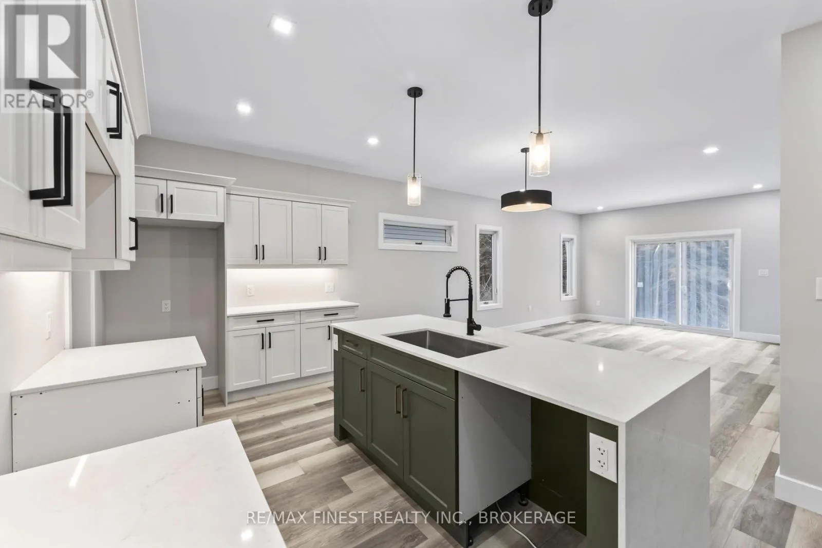 From Hwy 2 - south on Creighton Drive North Peak Homes is proud to offer a brand new modern appealing design with great character accents and such a smart use of space. This 3 bed / 2 bath bungalow is 1290 sq/ft with 9 foot ceilings on the main floor and basement, quartz countertops in the kitchen and an upgraded electrical/lighting package. This model offers a separate basement walk-up entrance giving great options for an in-law or secondary suite. The front room could be used as a bedroom or office, depending on your household requirements. The basement with bathroom rough-in has been spray foamed, electrical run and drywalled - a huge value not typically provided in new builds with unfinished basements. Another unique feature to this home is the well thought out main level entrance from the garage into the butler's pantry/mudroom that opens into the kitchen - perfect for dropping off groceries on the way in. Another great feature location-wise with this 40 ft wide lot is that it faces east across the street to a park and green space rather than into other homes and garages. The drive up appeal of stone accents and modern design on the front of the home with accent lighting, covered porch and attached garage all combine to provide elegance and character in an ideally situated neighbourhood for growing families as well as those looking to downsize. Only a couple of blocks away from the high school and an elementary school, a neighbourhood park across the street, 5 minutes to the west end of Kingston and just a couple of minutes from the 401 for travelling further afield. An amazing value and ready for its first owner. Grass & asphalt driveway to be completed by builder. (id:27476)