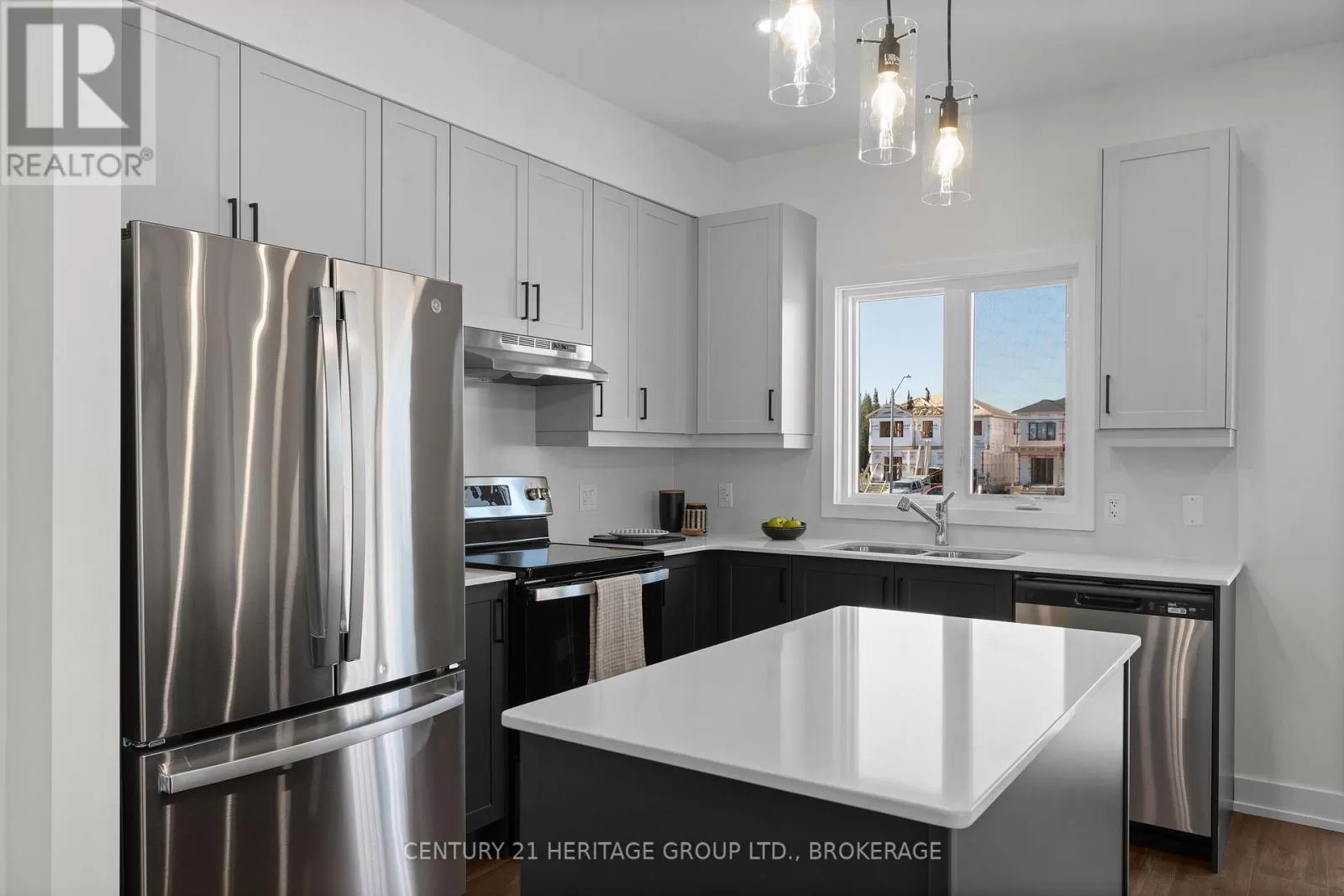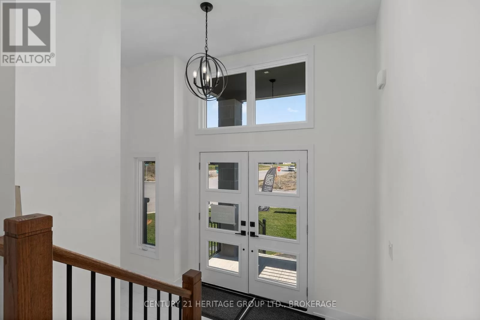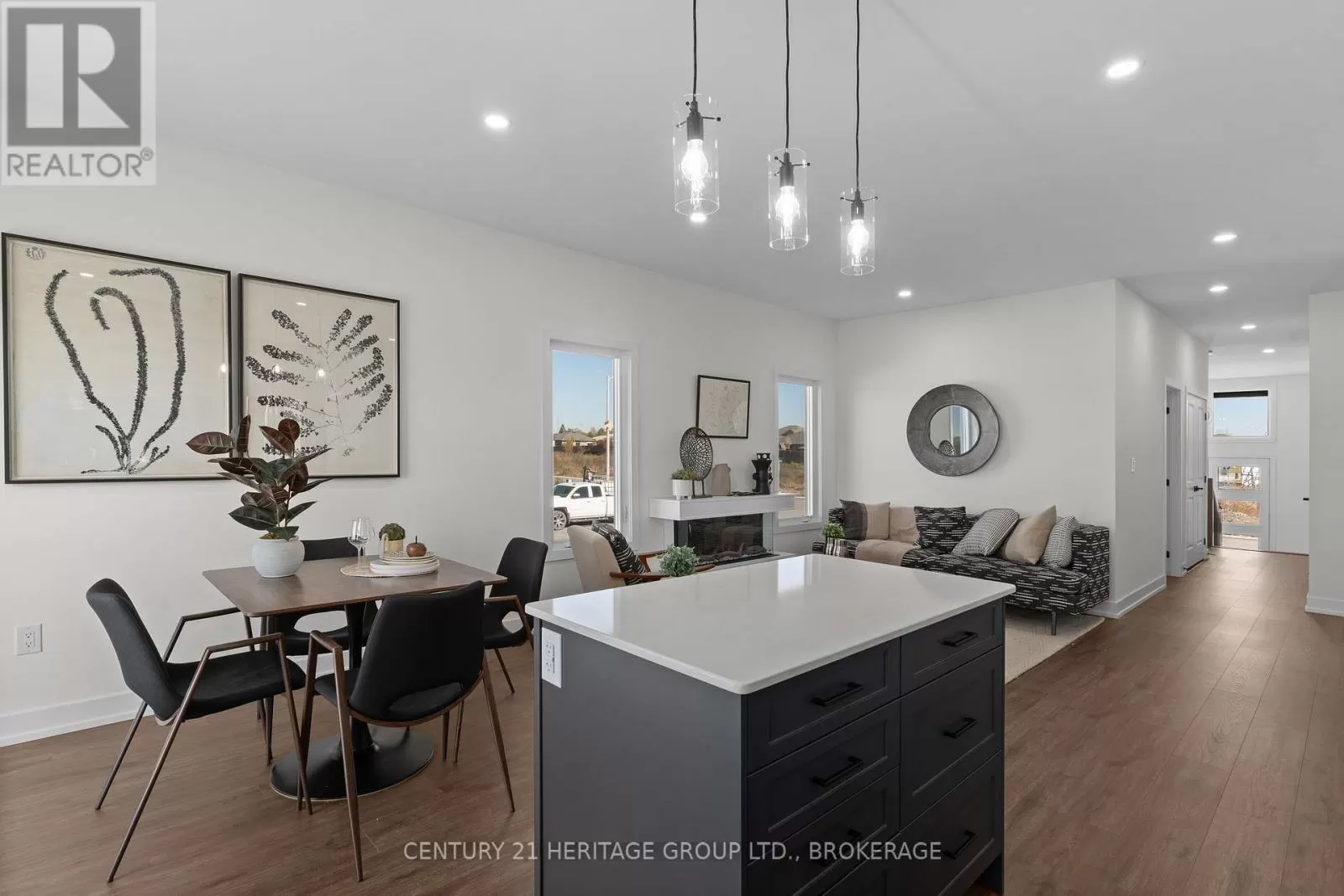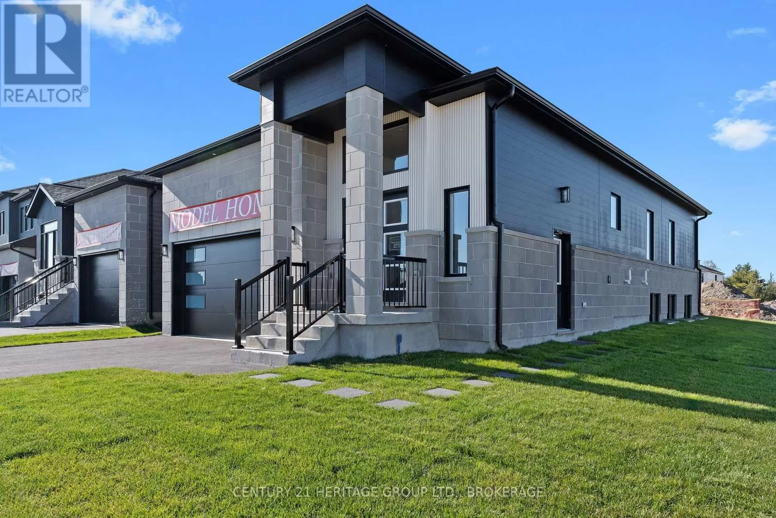 Cross Streets: Potter and Dusenbury. ** Directions: Hwy 2 TO Potter to Dusenbury. Welcome to the Legacy Model Home, built by Golden Falcon Homes, an impeccably crafted 2,600 sq ft two-storey residence that seamlessly blends thoughtful design with elevated finishes throughout. Built to showcase the best of modern living, this home is situated on a premium lot and offers a refined lifestyle with extensive upgrades, impressive functionality, and stunning curb appeal. From the moment you arrive, the upgraded full elevation siding and striking stone front façade set the tone for what lies inside. Step through the door into a spacious main floor with 9-foot ceilings, oversized black-framed windows, and a dedicated den or study perfect for remote work or a quiet retreat. The heart of the home is the showstopping kitchen featuring a designer colour package, quartz backsplash, and under-cabinet lighting that highlights the attention to detail. Enhanced with pot lights throughout, upgraded lighting, and elegant finishes, the space flows seamlessly into a warm and inviting breakfast area and living area anchored by a gas fireplace. Up the oak staircase, you'll find a thoughtfully designed second-floor laundry room for convenience and comfort. The upper level is finished with laminate flooring throughout and features generously sized bedrooms, including a luxurious primary suite. This is truly a haven. The ensuite bathroom is a retreat in itself, complete with a glass and tile shower, freestanding tub, and dual sinks offering both style and function. Additional highlights include upgraded interior and exterior lighting, air conditioning, a glass shower in the main bath, and ten exterior pot lights that accentuate the home's exterior in the evening. As a fully finished model home, this property is more than just move-in ready; it's a true showcase of craftsmanship, value, and modern luxury. If you're looking for a home that stands out in every way, the Legacy is the one you've been waiting for. (id:27476)