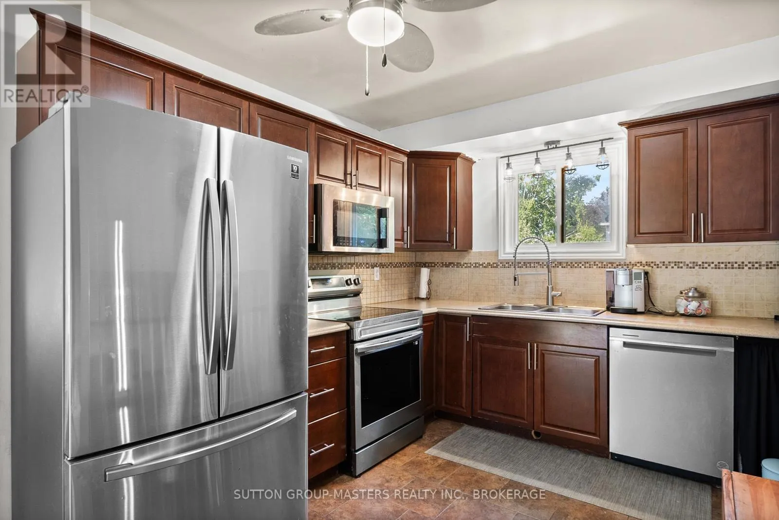 Kildare to Nicholson Welcome to this beautifully maintained family home on a mature and quiet street in Amherstview, only a few short minutes from Kingston's west end. This 3+1 bedroom, 1.5 bath home sits on a prime corner lot and offers a huge fully fenced yard. Walk up to welcoming flower beds and a sweet covered front porch. Features a bright kitchen, separate dining room and living room, as well as a family room and a half bath on the main level. The lower level offers a rec room, bedroom and laundry. Upstairs you will find 3 spacious bedrooms and full bath. Spend time on your back deck overlooking the pool sized fenced yard. Easy access to amenities including community pool, arena, library, activity centre, parks, transit and more. Ready for a new family, this house in a lakeside community is ready for you to call it home! (id:27476)
