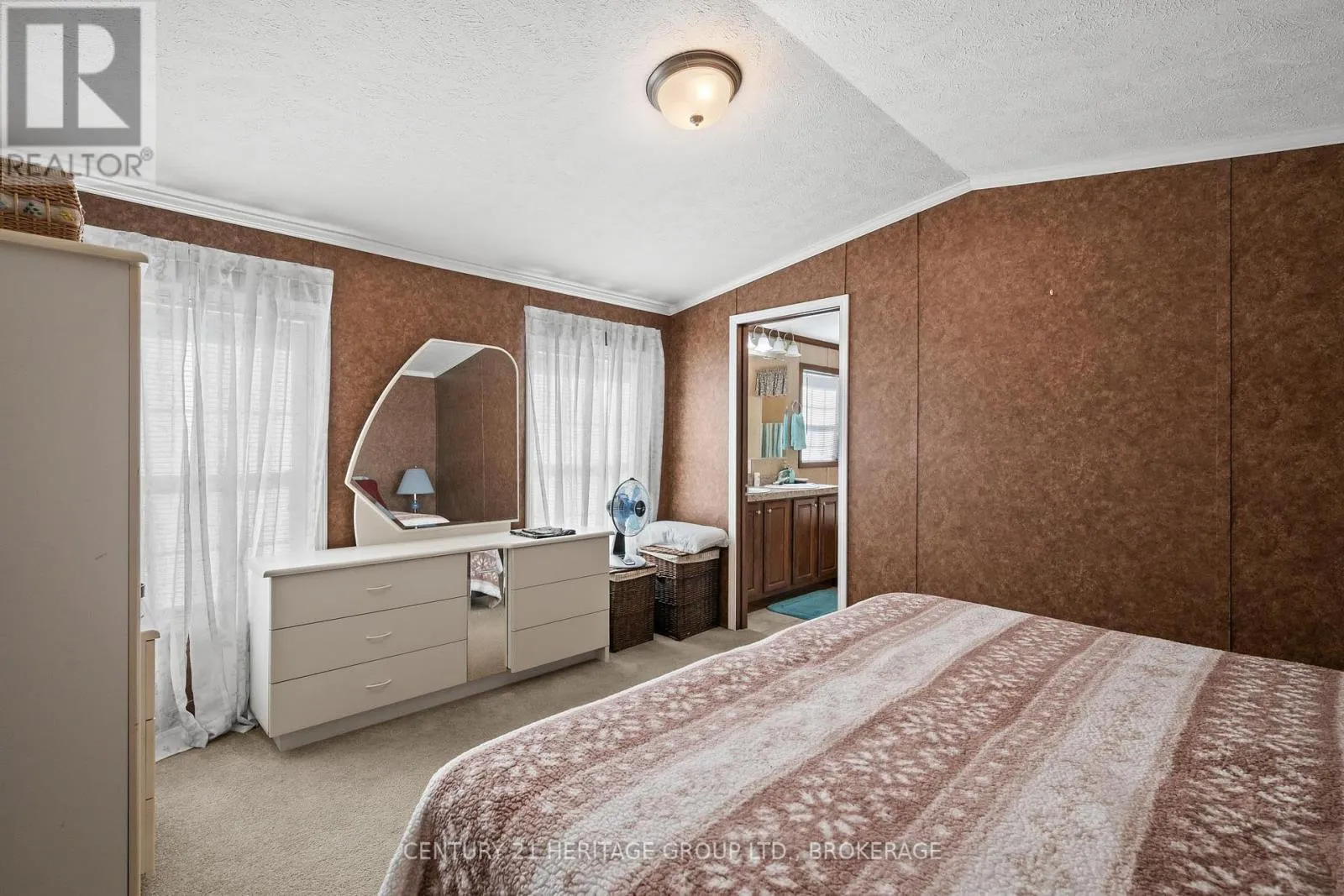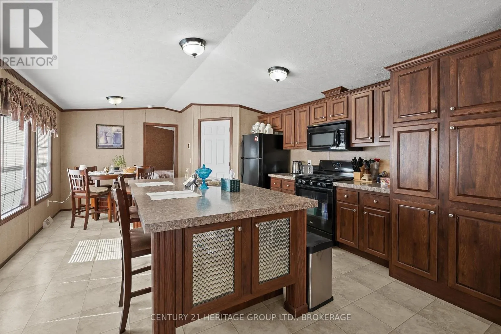 Bath Rd (Hwy 33) to 5633 Bath Rd. Set in a quiet, elevated location within a well-kept land-leased community, this modern 80 x 16 mobile home offers comfortable, low-maintenance living surrounded by nature. Designed for ease and functionality, the open-concept layout seamlessly blends the living room, kitchen, and dining area, perfect for both daily living and entertaining. The kitchen features rich cabinetry, a large center island, and ample storage space, creating a warm and inviting hub of the home. With two generously sized bedrooms thoughtfully placed at opposite ends, you'll enjoy maximum privacy. The spacious primary suite includes a luxurious ensuite with a deep soaker tub, while a second full bath conveniently serves guests and the second bedroom. Step outside to a large private deck, ideal for outdoor dining or simply unwinding in a serene setting. Recent upgrades include a new furnace and heat pump (June 2024), providing efficient, year-round comfort. Located just 15 minutes from Kingston, this home offers a perfect blend of quiet countryside living and convenient access to city amenities. Park fees include property taxes for added peace of mind. (id:27476)
