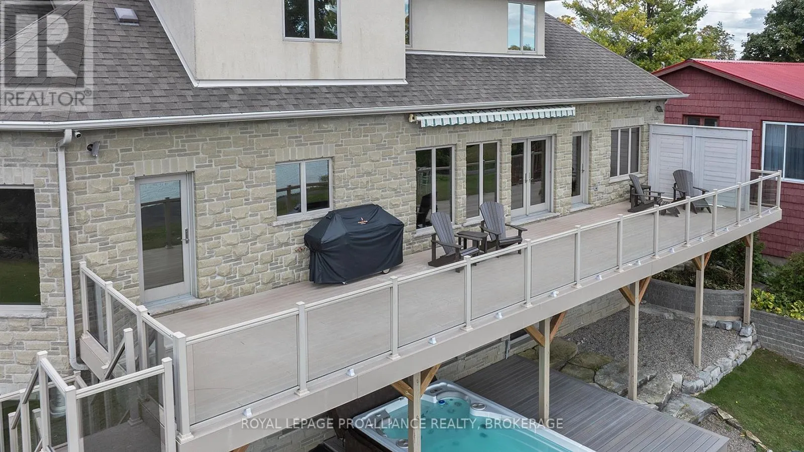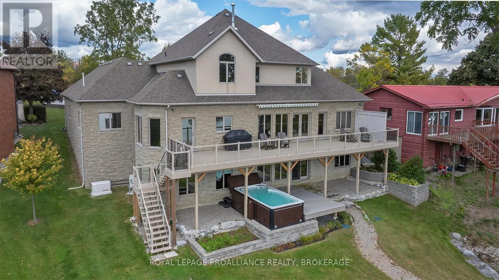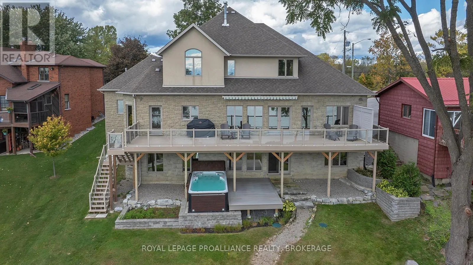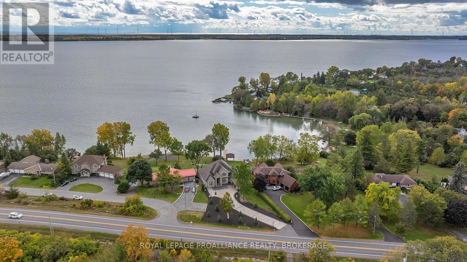 Cross Streets: Bath Road. ** Directions: West on Bath Road from Amherstview. Experience Unrivaled Luxury on the Shores of Lake Ontario. Welcome to your private lakeside retreat - a breathtaking 5,778 sq. ft. masterpiece built by Garofalo Homes, designed to capture panoramic water views and timeless elegance at every turn. Step through the grand foyer with its 18-foot ceilings and immediately feel the sophistication and warmth of this meticulously cared-for home. The main level offers a spacious great room with sweeping lake views, a primary bedroom suite with an ensuite bath, a chef's kitchen, and beautiful hardwood flooring throughout. Ascend the elegant open staircase to find three additional bedrooms, each with generous closet space, and a serene guest bath. The fully finished lower level is ideal for entertaining or relaxation, featuring two more bedrooms, a full bathroom, a private gym, and a heated patio with a 14-foot swim spa-perfect for unwinding while taking in the stunning sunsets. The backyard oasis is a true showstopper, boasting professionally designed landscaping that leads to the private 50' x 12' concrete dock with lighting, power, 2 Sea-Doo lifts, and a 7,000-lb boat lift-expertly crafted by Kehoe Marine for the ultimate waterfront lifestyle. Recent upgrades elevate the home even further: a patterned concrete driveway, smart Lutron lighting system, infrared camera system, 2 new Carrier furnaces, cold-climate heat pumps, and Nest thermostats. The heated 3-car garage includes a gas heater and an external gas generator for peace of mind year-round. Perfectly situated near Amherstview, Parrotts Bay Conservation Area, and just minutes from downtown Kingston's shops and restaurants, this home blends serenity with convenience. With its generous layout and unmatched location, it's an exceptional opportunity for a luxury residence, bed & breakfast, or even a professional home office. Take the first step toward your dream waterfront lifestyle - schedule your private tour and experience Lake Ontario living at its finest. (id:27476)