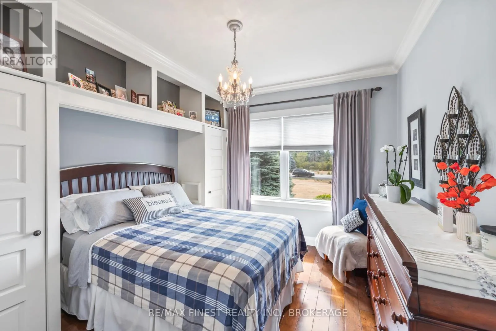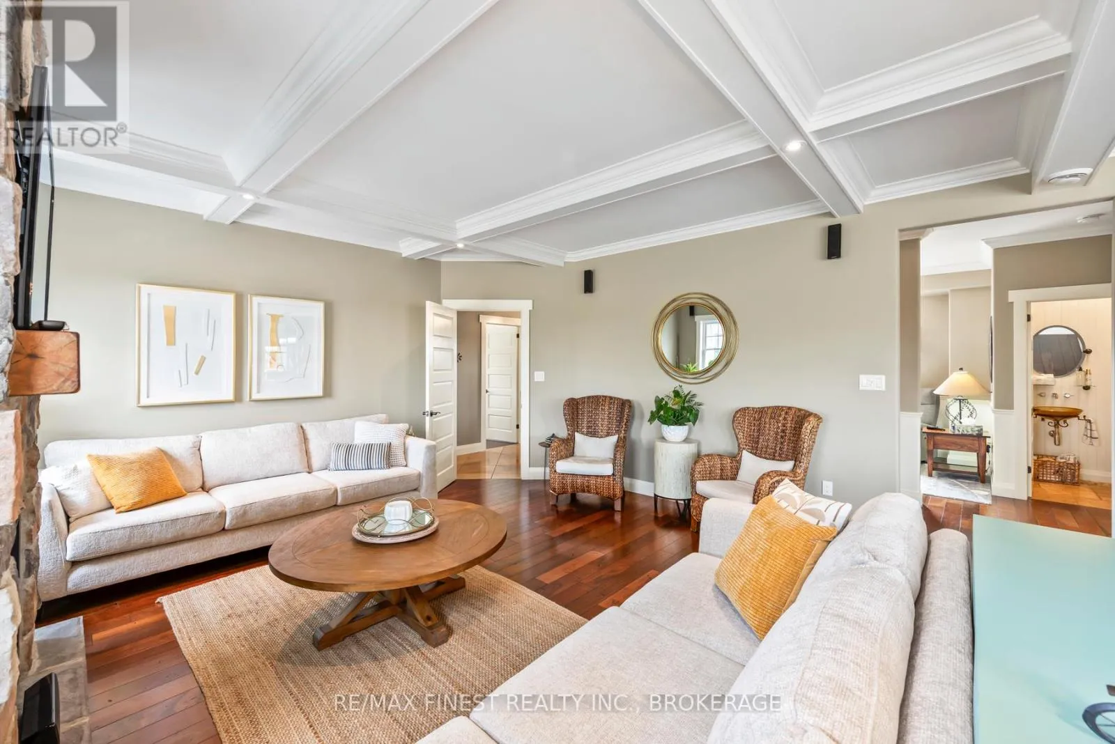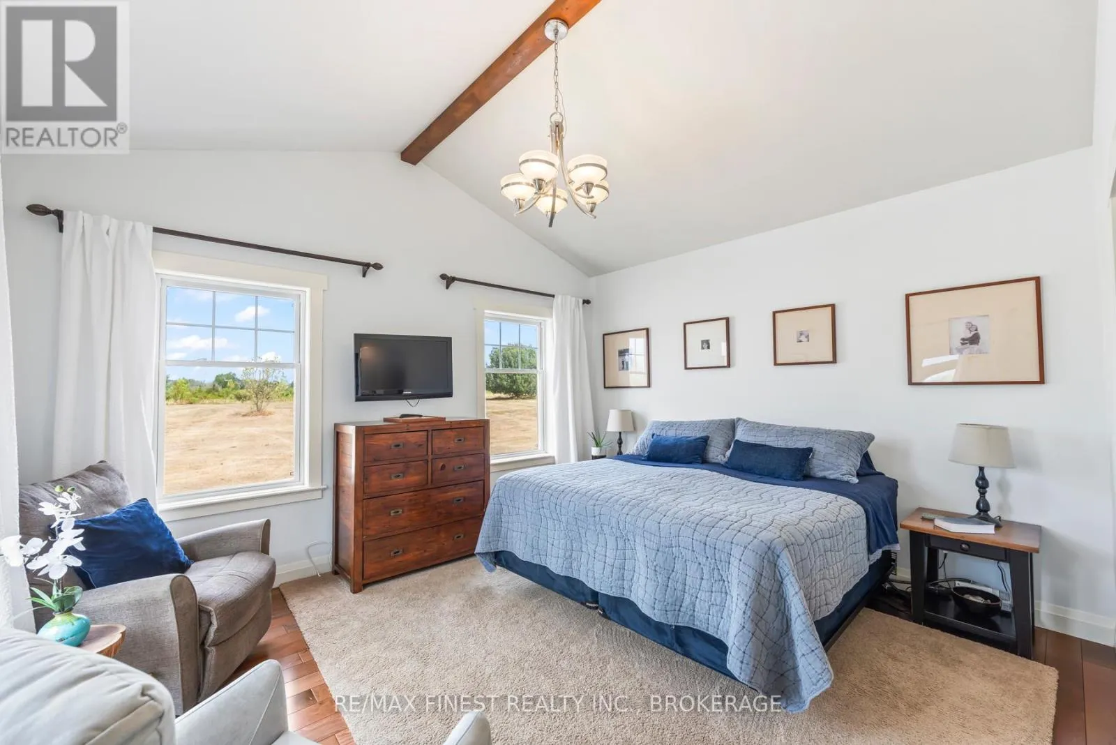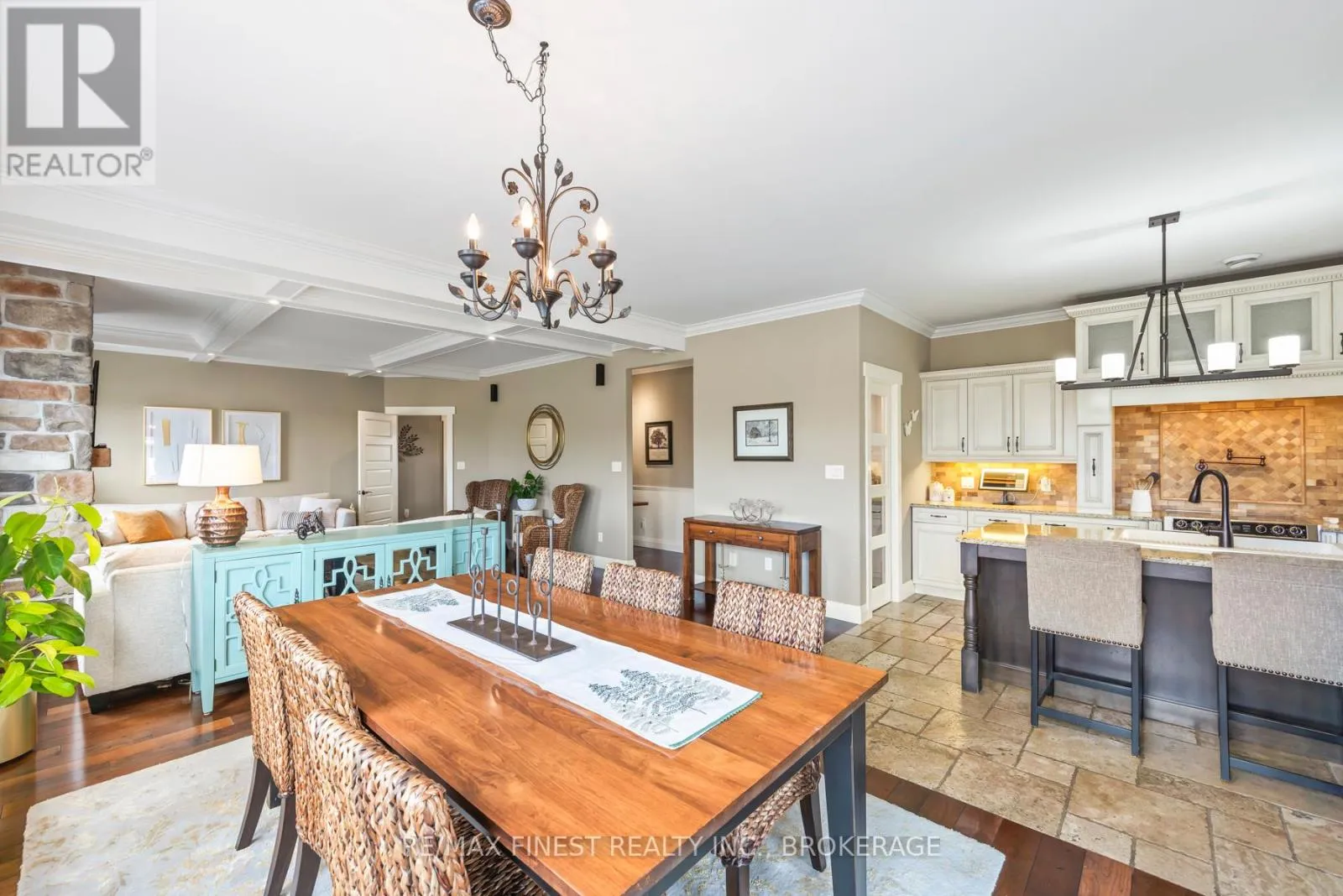 Cross Streets: County Rd 4. ** Directions: County road 4 towards #2, Right on County road 28. Discover this exquisite custom-built bungalow, over 2,000 sq. ft. of refined living on 2 meticulously landscaped acres, just minutes west of Kingston. Crafted with exceptional artistry and thoughtful design, every detail reflects superior quality. Step inside to distressed hickory hardwood and elegant travertine floors flowing throughout an open-concept layout. The luxurious primary suite boasts vaulted ceilings, exposed beams, a spacious walk-in closet, and a spa-like ensuite with a tiled walk-in shower and rainfall shower head. At the heart of the home, a grand family room with a floor-to-ceiling stone fireplace, coffered ceilings, and recessed lighting opens seamlessly to a gourmet kitchen. Featuring granite countertops, a stone backsplash, under-cabinet lighting, a convenient pot filler, a large pantry, and an expansive center island, it's a chef's dream. The adjacent dining area connects effortlessly to an early 1,000 sq. ft. partially covered cedar deck and gazebo through garden doors-ideal for al fresco entertaining. Additional highlights include a formal living room, a dedicated home office, and a well-appointed laundry/mudroom. The property offers a heated three-car attached garage and a 16' x 26' detached garage for generous storage and versatility. Comfort meets efficiency with radiant in-floor heating, a heat pump for supplemental heating and cooling, an HRV system, and central vacuum throughout. Timeless elegance, impeccable craftsmanship, and thoughtful functionality-quality through and through. Schedule your private viewing today and experience this exceptional residence. (id:27476)