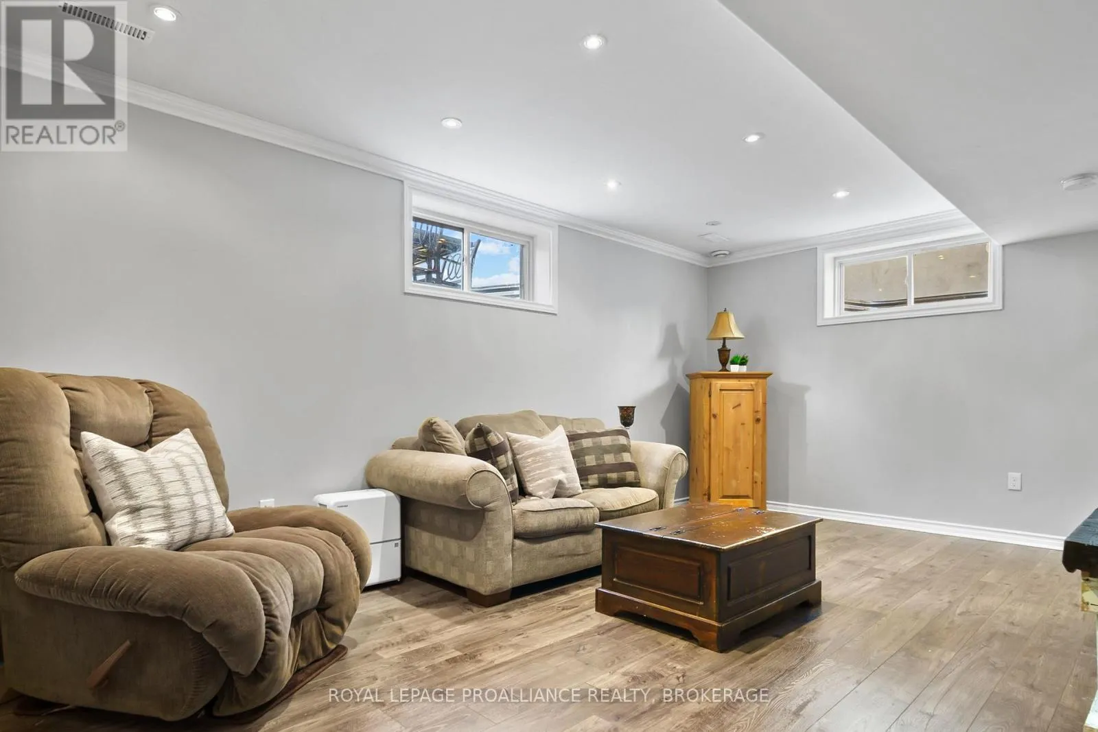 Cross Streets: Blakely and Pratt. ** Directions: County Road 6 to Amherst Drive. South on Pratt Drive. East on Blakely Street. Welcome to 121 Blakely St, a captivating 3+1 bedroom, 4-bathroom family home situated on a premium lot that backs onto a park - this property offers the perfect blend of comfort and convenience. Step inside and discover an inviting open concept layout featuring a spacious kitchen, dining, and living area that ensures seamless interaction among family and friends. The main level boasts elegant hardwood and ceramic flooring, enhancing the overall look and feel of the home. The large windows not only bring in ample natural light but also provide picturesque views of the park. A fully finished lower level with upgraded laminate floors adds valuable extra space featuring a rec room, a den, a fourth bathroom and unfinished storage/laundry area. Upstairs, the sleeping quarters include a primary bedroom with an ensuite and a spacious walk-in closet. Two more bedrooms and another full bathroom ensure that each family member enjoys their own private space. The partially fenced large yard with a brick patio offers a tranquil view of the park, perfect for outdoor gatherings, watching the kids kick the soccer ball around or a quiet evening enjoying nature. The exterior of the home is just as impressive with a double wide paved driveway leading to a two car attached garage with a garage door that embodies the essence of a true hockey family (New garage door quote available). The large yard is partially fenced, featuring a charming brick patio that overlooks the park - perfect for relaxation or entertaining guests. New improvements include a furnace (2022), air conditioning (2022), and fresh paint in the lower level (2024), all adding to the home's appeal and functionality. Embrace the opportunity to reside in a community that supports a vibrant and active lifestyle, all within walking distance to schools, medical centers, parks, J.R. Henderson Recreation Center (currently being upgraded), Foodland, shopping and much more. (id:27476)