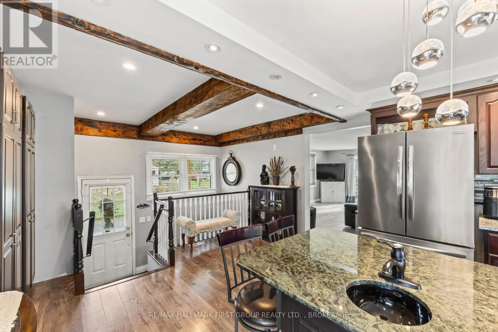 Cross Streets: Doyle Road. ** Directions: County Road 4, to Doyle Road, to Absalom Road. Discover the perfect blend of peaceful country living and modern convenience in this beautifully renovated three-bedroom, two-bathroom home, ideally positioned on a country lot just minutes from Kingston, Amherstview, and quick 401 access. Step inside and be welcomed by a bright, spacious kitchen featuring a stylish centre island with granite countertops and an inviting eat-in area overlooking the fully fenced backyard. The main floor offers exceptional flexibility, with a comfortable bedroom and a full bathroom renovated in 2025, providing an excellent option for guests, aging family members, or single-level living. Upstairs, the home continues to impress. The two additional bedrooms and full bathroom were thoughtfully renovated in 2024, including updated windows. The full-height basement offers generous storage and the opportunity for future development-whether you envision a home gym, workshop, or hobby space. Outside, the 24' x 24' detached garage with separate driveway provides ample room for vehicles, tools, and toys. Natural gas and high-speed internet services. Situated on a dead-end street in a well-maintained, family-friendly location, this home truly offers a lifestyle, not just a place to live. If you've been looking for a move-in-ready country home that checks all the boxes-this is the one. (id:27476)