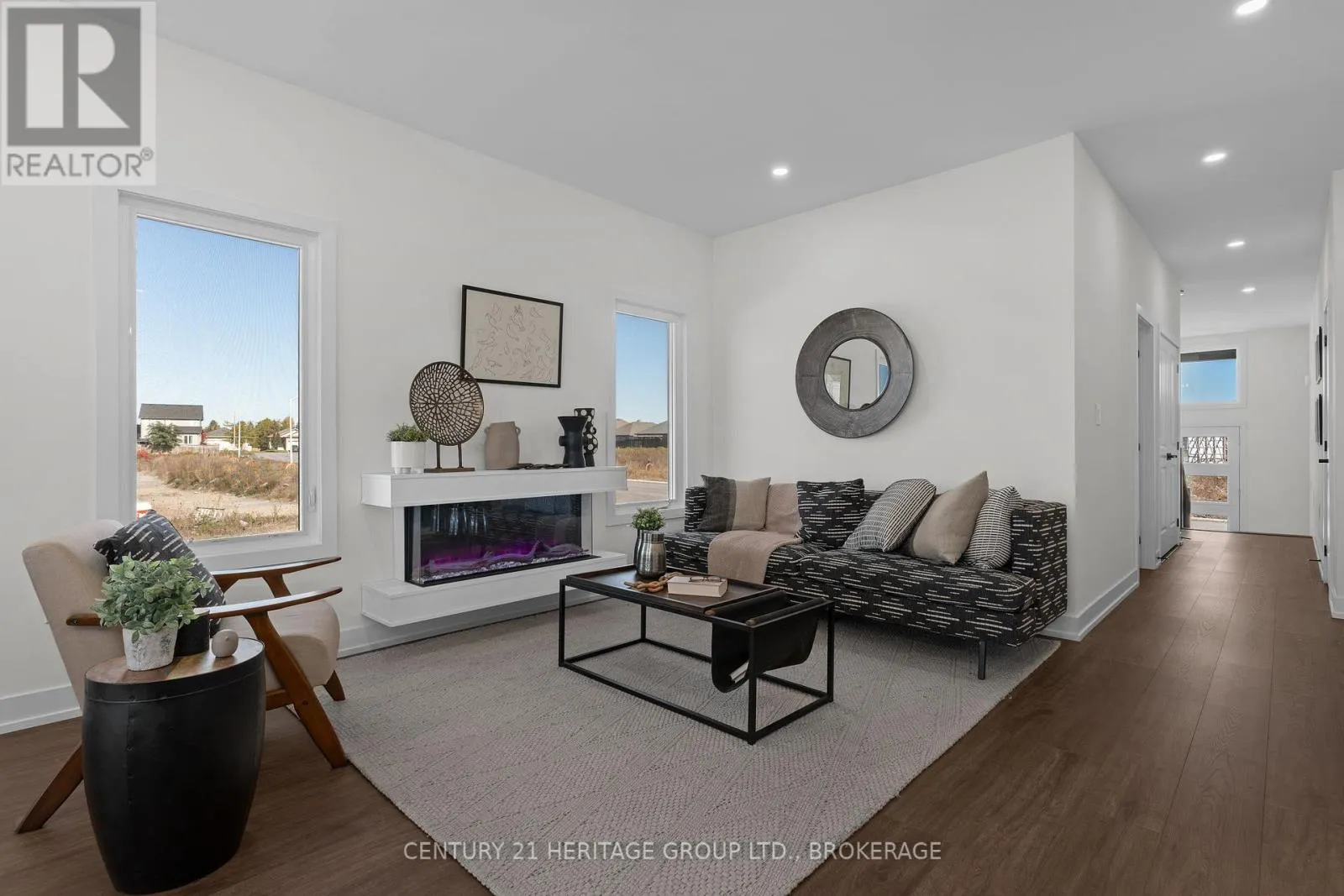 Hwy 2 Main St to Creighton Dr Discover the epitome of bungalow living with the Oasis model in Golden Haven, a beautifully designed 1,367 sq ft, 2-bedroom, 2-bath home that blends modern style with everyday functionality. Thoughtfully laid out, the spacious family room flows seamlessly into a custom-designed kitchen where granite countertops and tile flooring create the perfect backdrop for cooking, entertaining, and gathering. The primary suite offers a private retreat with a walk-in closet and a stylish ensuite, while a second bedroom, a chic main bath, and a convenient laundry area complete the main level-making this home as practical as it is elegant. Architectural stone accents, a modern façade, a covered porch, and an attached garage enhance curb appeal and everyday convenience. Purchasers benefit from an exceptional incentive package valued at $35,000 in free upgrades, including a side entrance to the basement, granite kitchen countertops, paved driveway, and sodding, along with a voucher for five appliances. In addition, buyers receive an extra $5,000 Builder Upgrade Studio credit to further personalize their home. Optional secondary dwelling units are also available, offering excellent flexibility for in-law living or future income potential. Ideally located near schools, parks, and Kingston's west end, with Highway 401 just minutes away, the Oasis offers both tranquility and connectivity. This is a rare opportunity to customize a beautifully crafted bungalow designed for contemporary living. Finished basements not included in price. Floor plan provided for reference. Welcome to Golden Haven-where the Oasis model delivers not just a home, but a lifestyle defined by comfort, elegance, and ease. (id:27476)