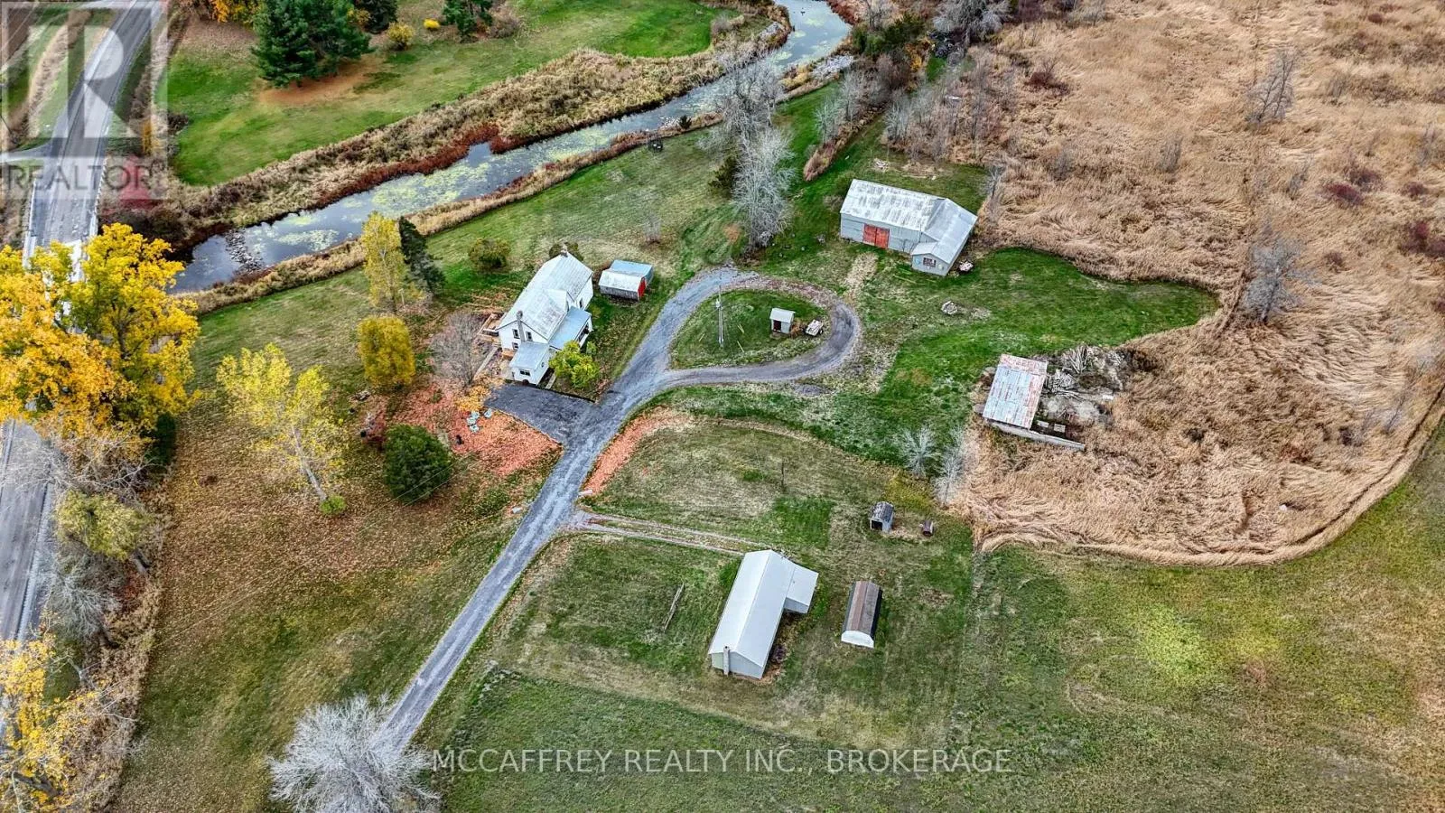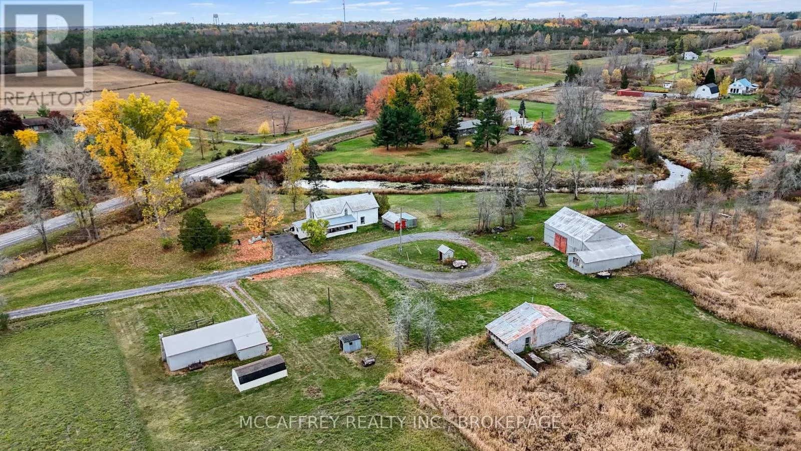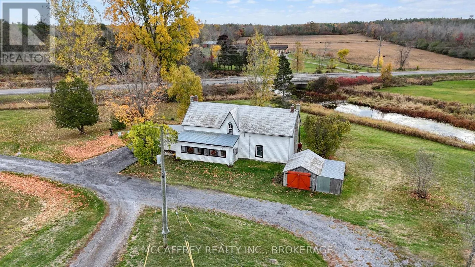 Cross Streets: Doyle Rd and County Rd 4. ** Directions: S on Cty Rd 4, W on Doyle, follow to 1549 on right. Creekside country retreat on just over 21 picturesque acres. Millhaven Creek meanders through the property, creating a serene backdrop, attracting wildlife, and offering a natural water feature at the heart of the land. A classic barn and multiple outbuildings provide flexible space for equipment, workshop, studio, or storage. There's ample room to plan gardens, meadows, trails, and outdoor living areas, all with the soothing sound of the creek nearby. The charming century two-story home blends rustic character with modern comfort. A welcoming front porch opens to an updated kitchen highlighted by warm wooden beams, and the adjoining dining, living, and sitting rooms provide generous space for family life and gatherings. A main-floor 3-piece bath and laundry add everyday convenience. Upstairs you'll find the inviting primary bedroom, three additional bedrooms, two more 3-piece baths, and a versatile flex space ideal for a walk-in closet, office, or playroom. Stay connected with Bell Fiber internet now available at the home-perfect for remote work, streaming, and smart-home needs. Despite the private, rural feel, you're just minutes from the village of Bath with its welcoming community and waterfront park. Whether you're envisioning expansive gardens, a workshop haven, or simply a tranquil country lifestyle beside a flowing stream, this property is ready to bring your vision to life. (id:27476)