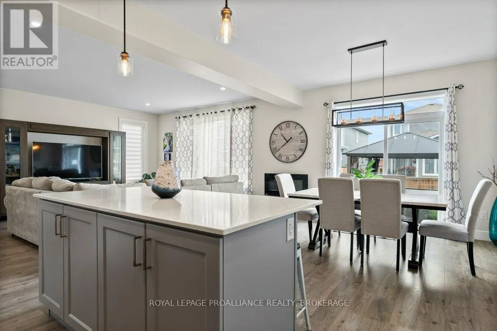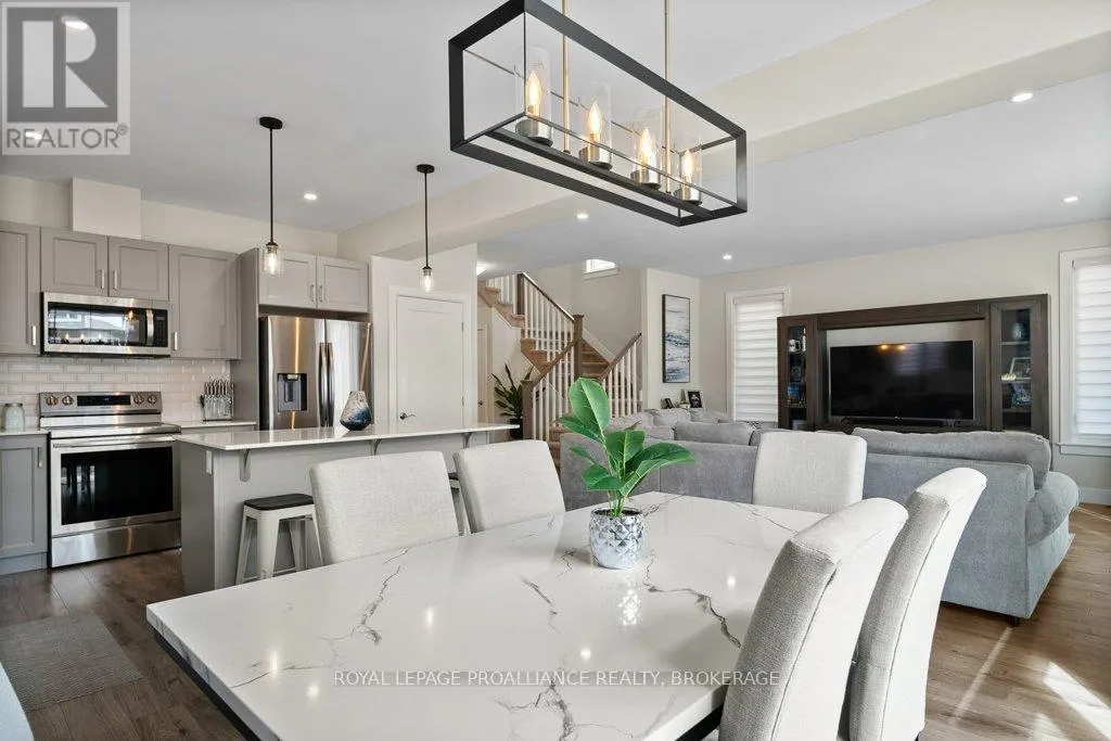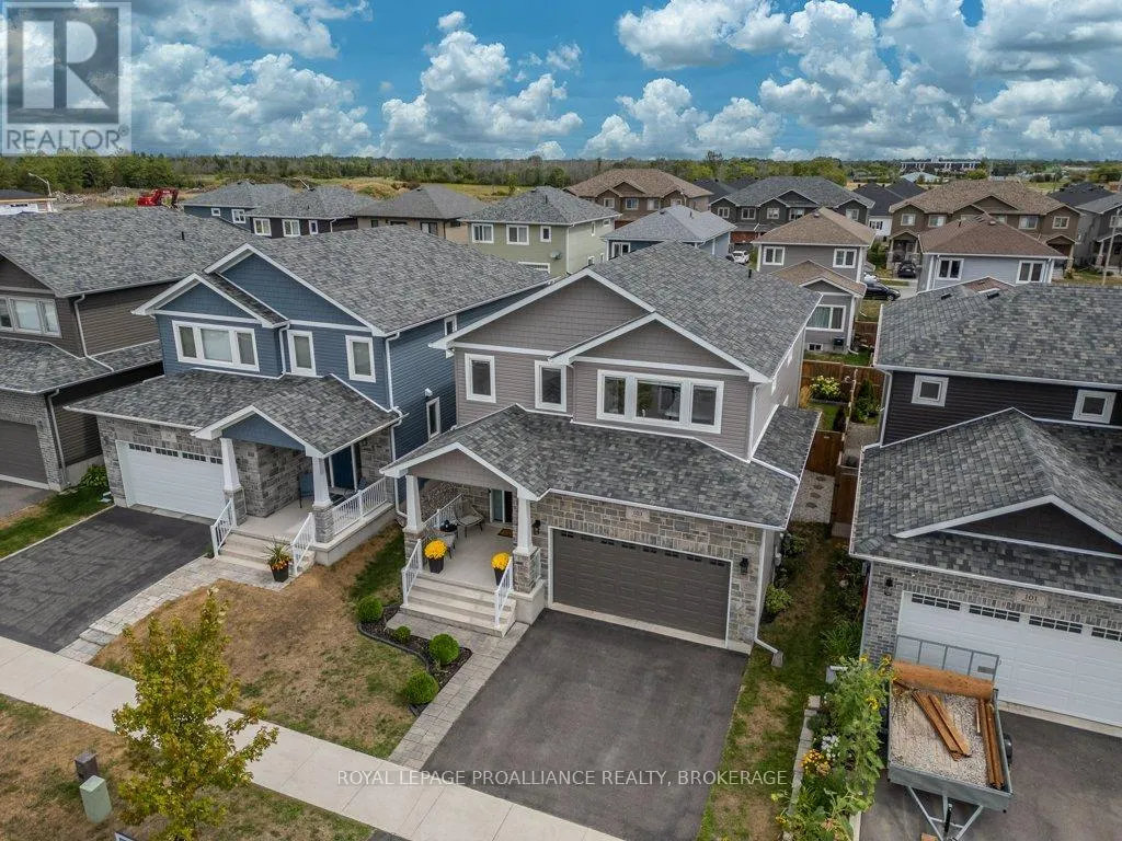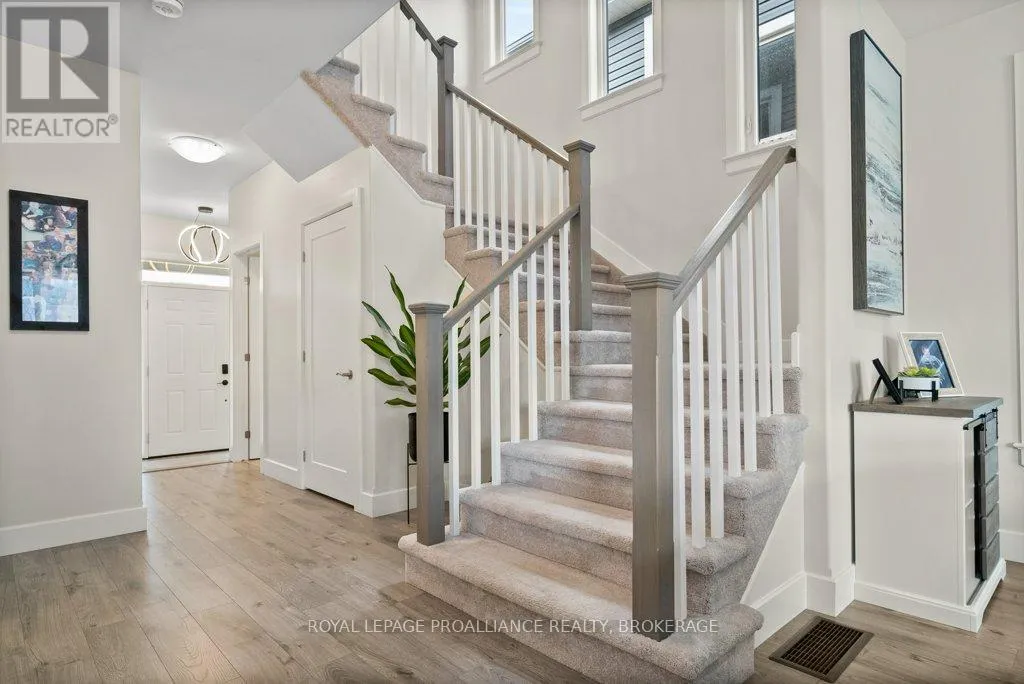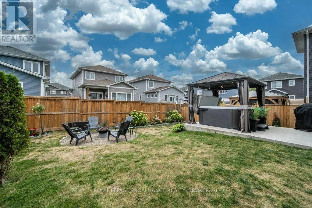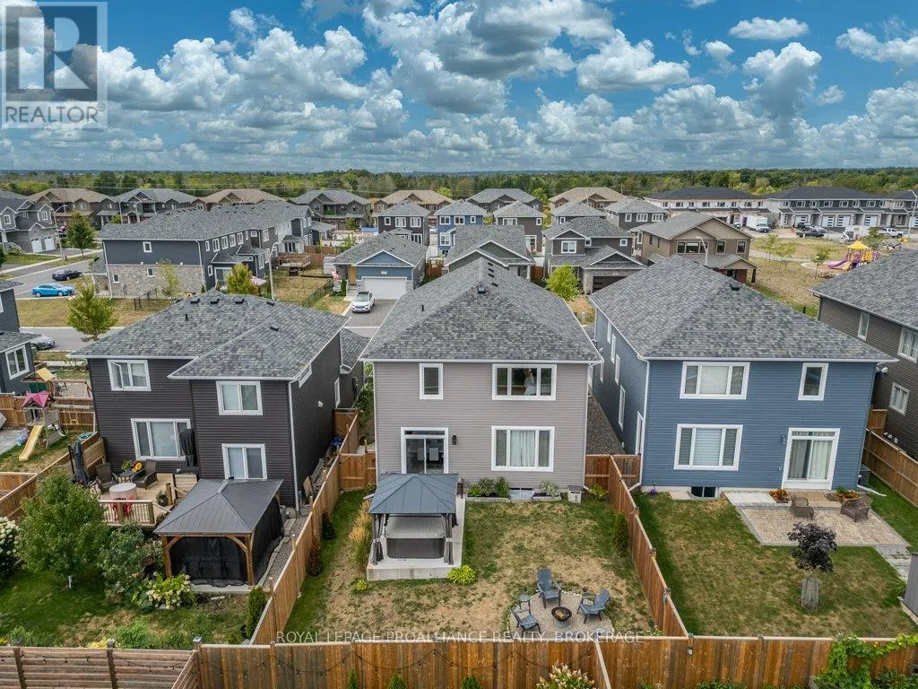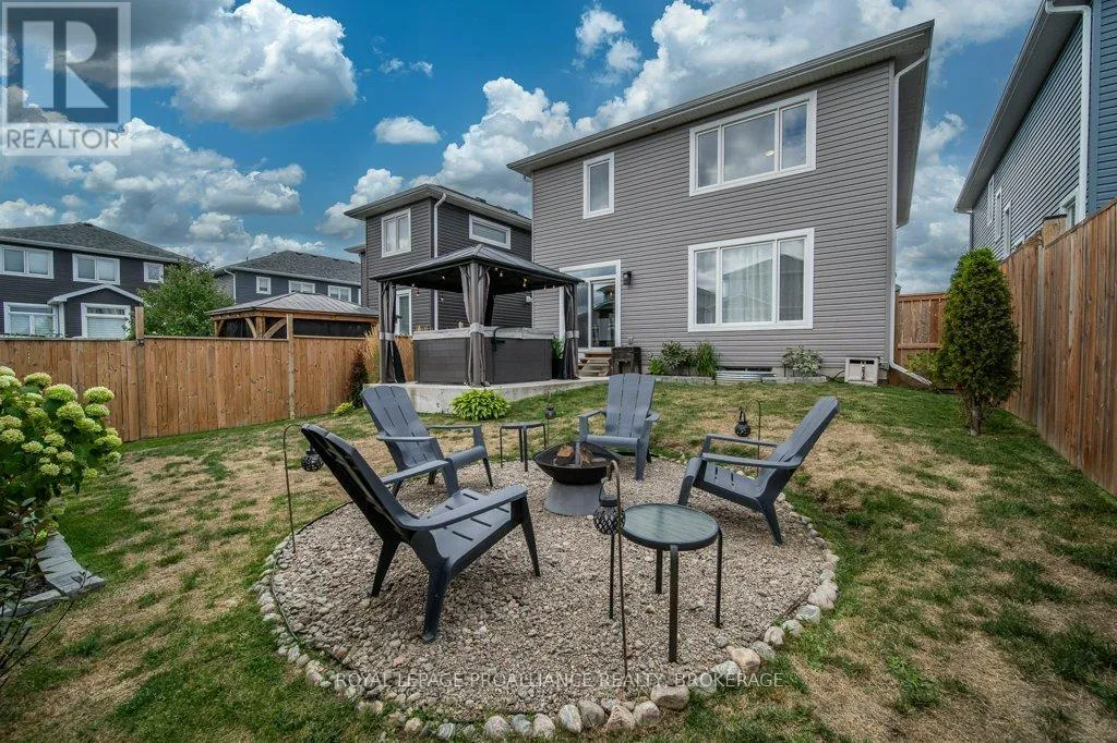 Cross Streets: Amherst Drive and County Road 6. ** Directions: County Road 6 to Amherst Drive to Pratt to Hazlett to Pearce. Welcome to this beautiful 2-storey detached home in the family-friendly community of Amherstview. Built in 2021, this modern home offers a spacious floorplan designed with comfort and functionality in mind and immaculately maintained. The upper level features 4 generously sized bedrooms and 2 full bathrooms, including a primary suite with a walk-in closet and ensuite. The main floor is bright and open, with a large living area, dining space, additional 2 piece washroom, and a well-appointed kitchen that's perfect for family living and entertaining. Convenient main floor laundry adds to the ease of everyday living. The basement is large and unfinished, offering endless potential for future customization. An attached 2 car garage + double wide driveway offers parking for 4. Outside, you'll find a fully fenced backyard; ideal for kids, pets, or summer gatherings with a gazebo, hot tub and firepit. This is the perfect home for families looking to settle in a welcoming neighbourhood close to schools, parks, and amenities! (id:27476)