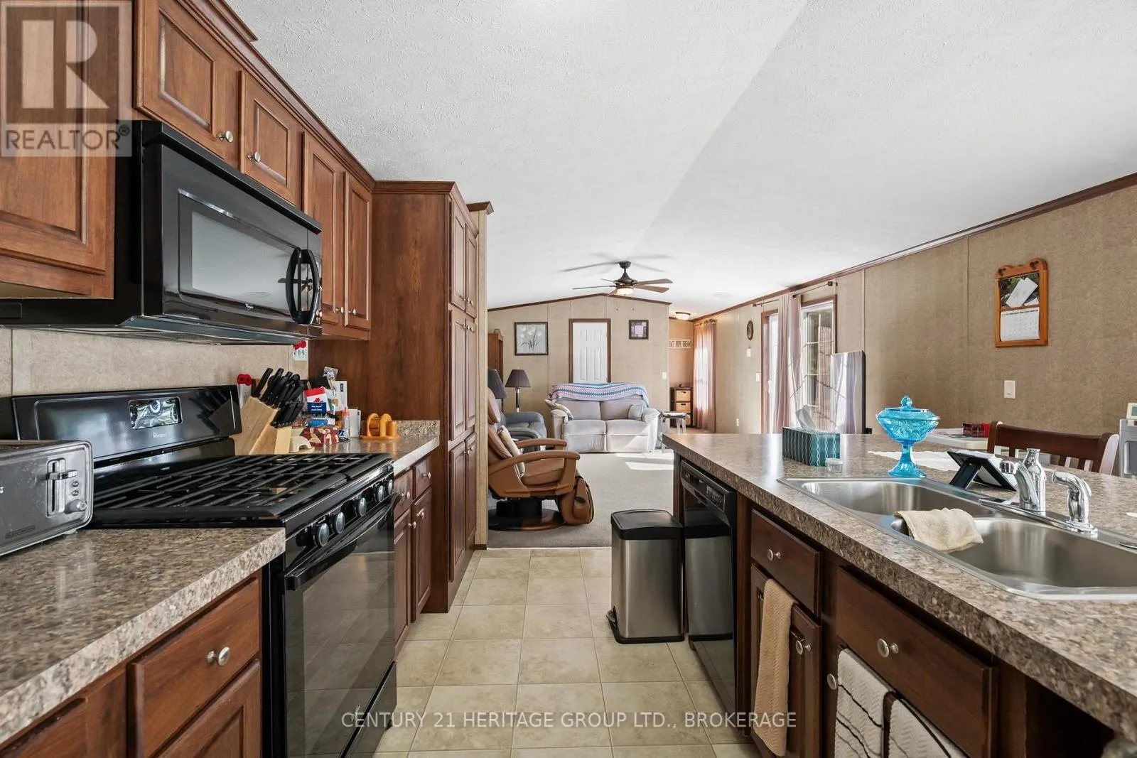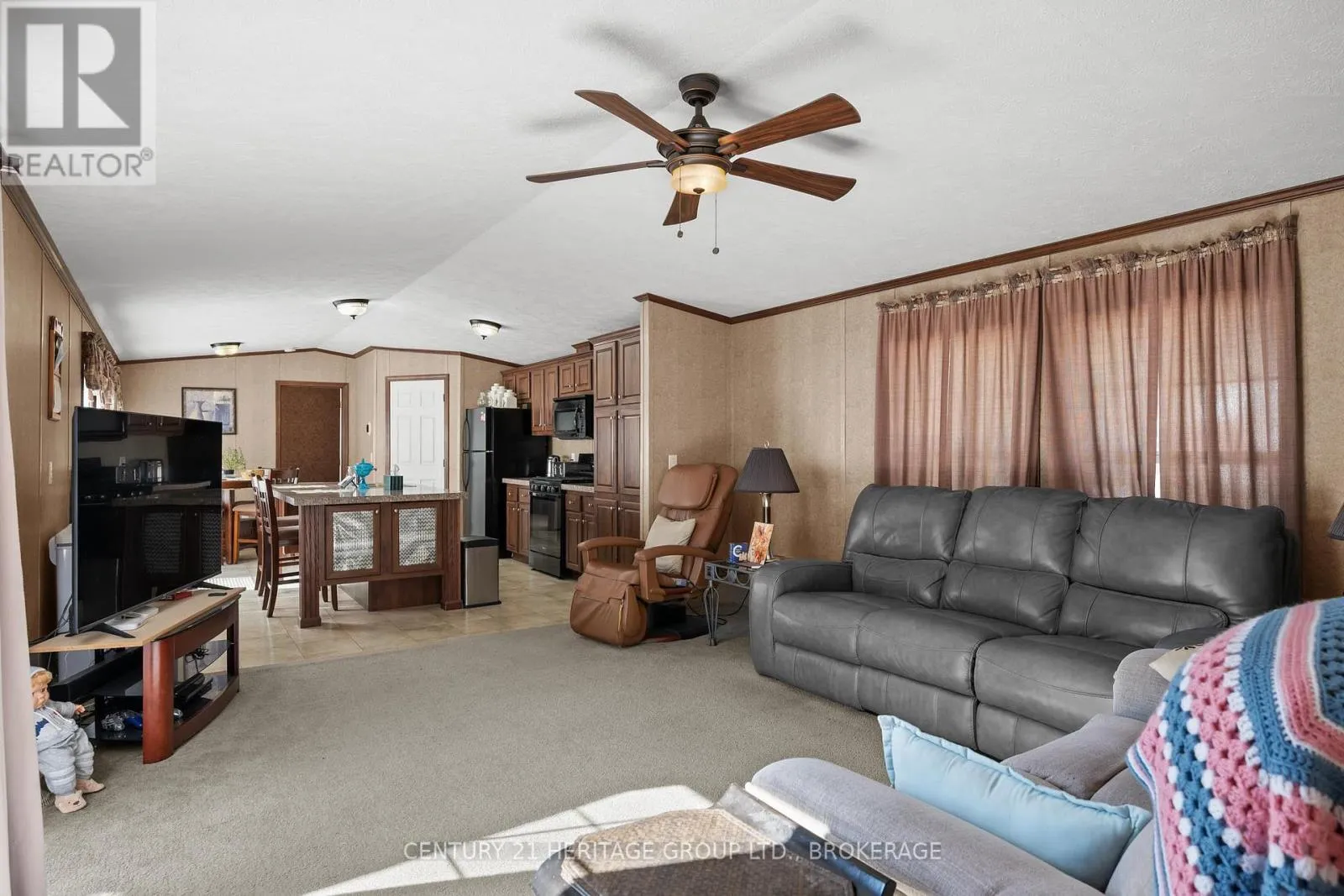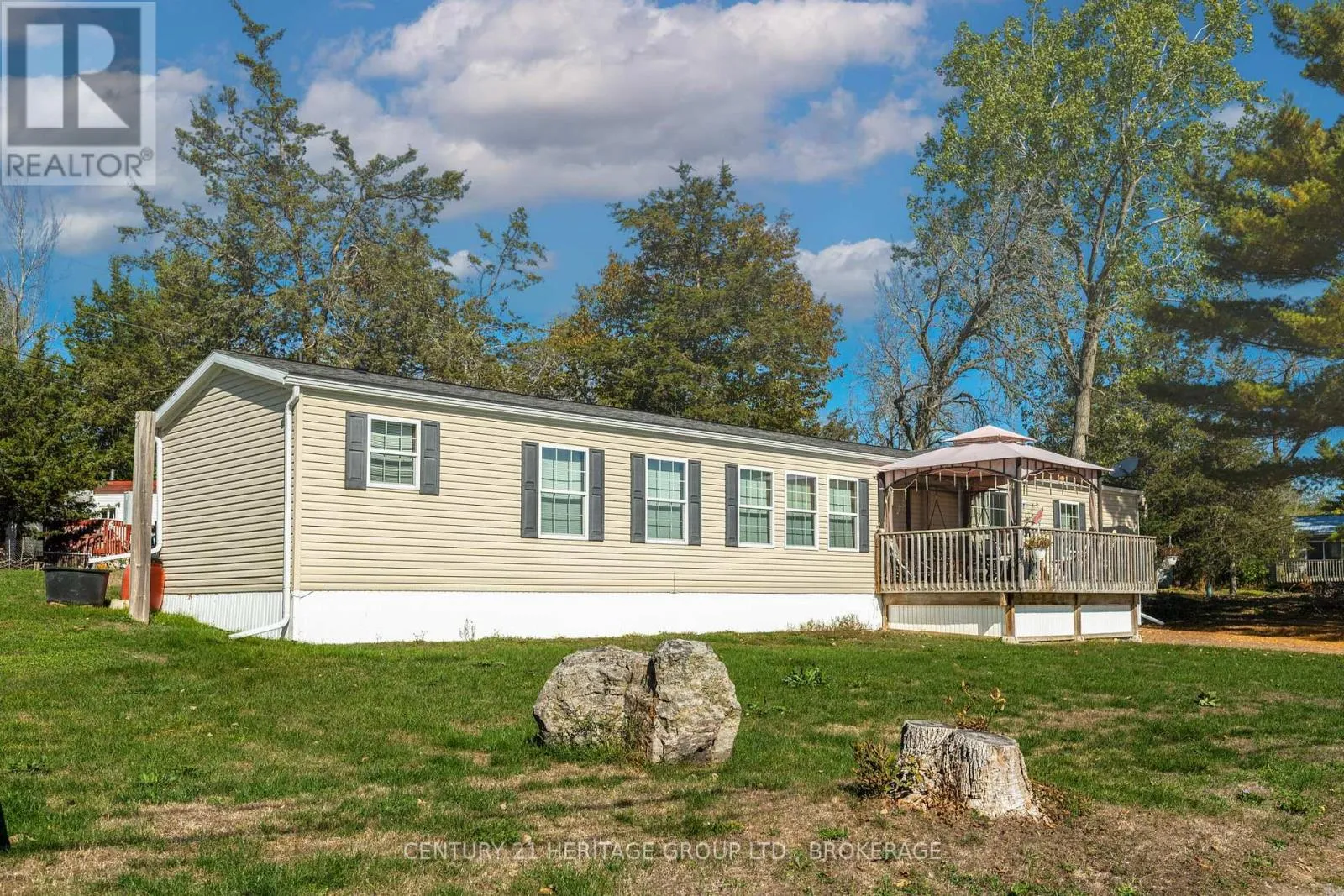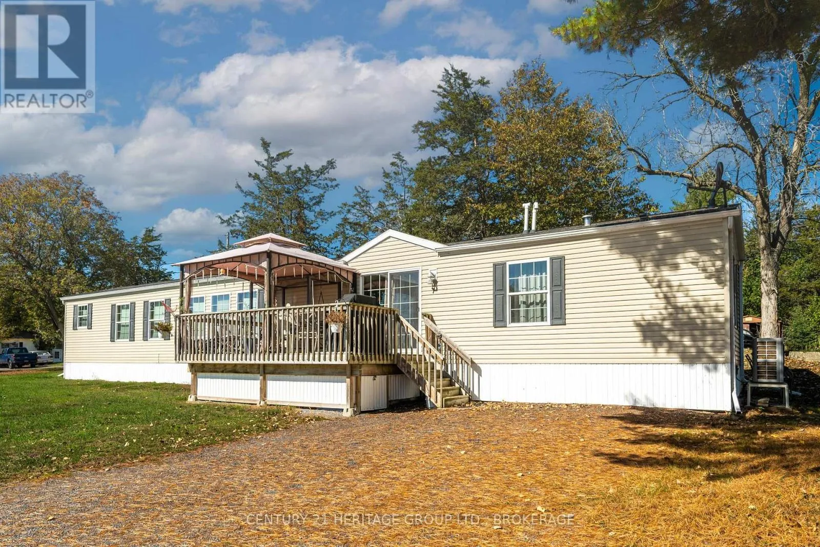 Bath Rd (Hwy 33) to 5633 Bath Rd. Set in a quiet, elevated location within a well-kept land-leased community, this modern 80 x 16 mobile home offers comfortable, low-maintenance living surrounded by nature. Designed for ease and functionality, the open-concept layout seamlessly blends the living room, kitchen, and dining area, perfect for both daily living and entertaining. The kitchen features rich cabinetry, a large center island, and ample storage space, creating a warm and inviting hub of the home. With two generously sized bedrooms thoughtfully placed at opposite ends, you'll enjoy maximum privacy. The spacious primary suite includes a luxurious ensuite with a deep soaker tub, while a second full bath conveniently serves guests and the second bedroom. Step outside to a large private deck, ideal for outdoor dining or simply unwinding in a serene setting. Recent upgrades include a new furnace and heat pump (June 2024), providing efficient, year-round comfort. Located just 15 minutes from Kingston, this home offers a perfect blend of quiet countryside living and convenient access to city amenities. Park fees include property taxes for added peace of mind. (id:27476)