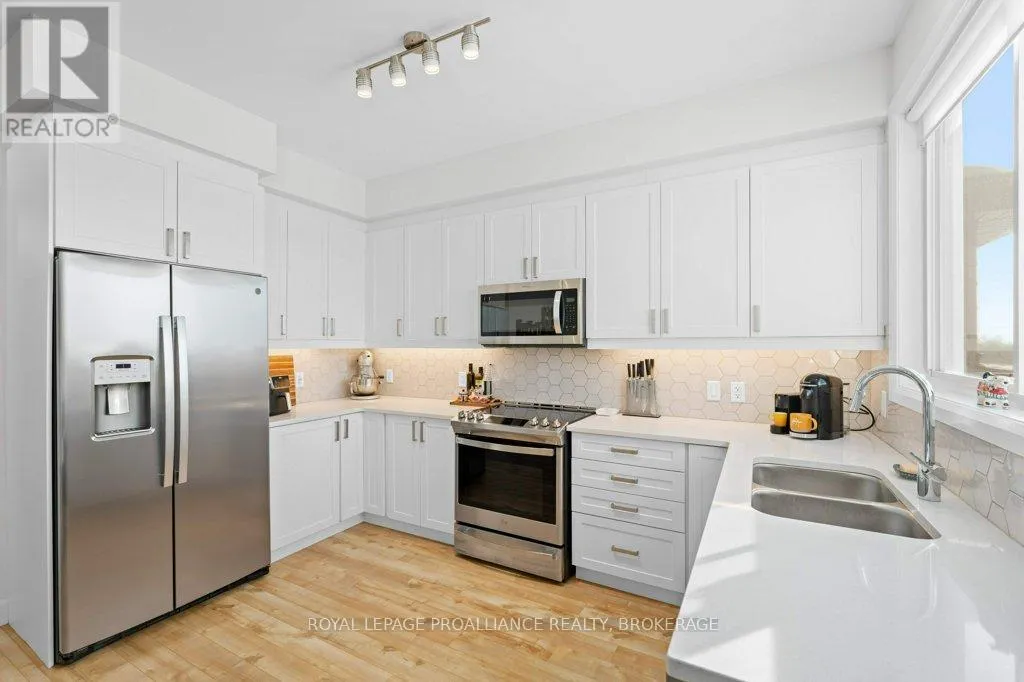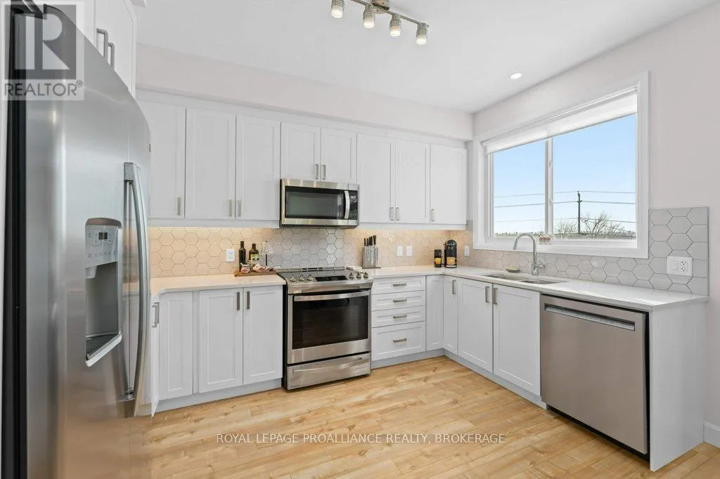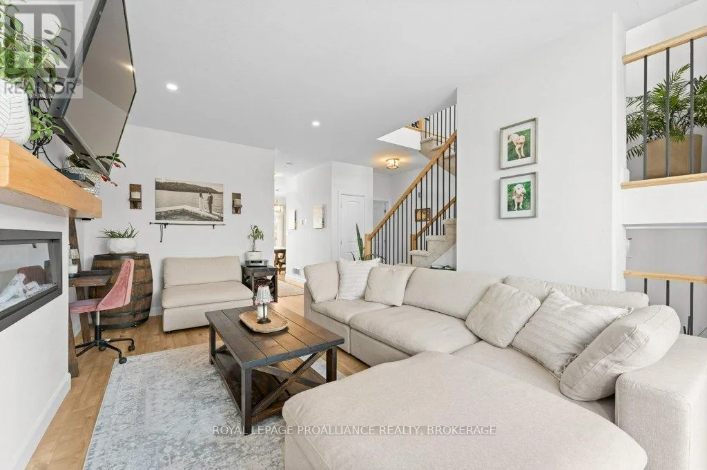 Cross Streets: Walden Pond. ** Directions: County Road 6 to Walden Pond to Superior. Welcome to 139 Superior Drive, a spacious townhome in Amherstview's Lakeside Ponds neighbourhood. Built about 5 years ago and sitting on a deep fenced lot with no rear neighbours, you will delight in the various upgrades. The driveway has been widened to accommodate 2 cars and the garage has inside entry to the ground level where you will find a large living space currently used as a gym. This could easily be converted to a recreation room and offers access to the yard and patio. Quality laminate floors are found on both the main and bedroom level. The sunny living room features an electric fireplace and access to a large deck. The kitchen is complete with quartz countertops and four stainless steel appliances. Patio doors from the eating area open onto a small deck. Upstairs are 3 good size bedrooms and 2 bathrooms. The primary bedroom has a 3 pc ensuite and lots of closet space. This home is move-in ready and is a short drive to amenities. (id:27476)
