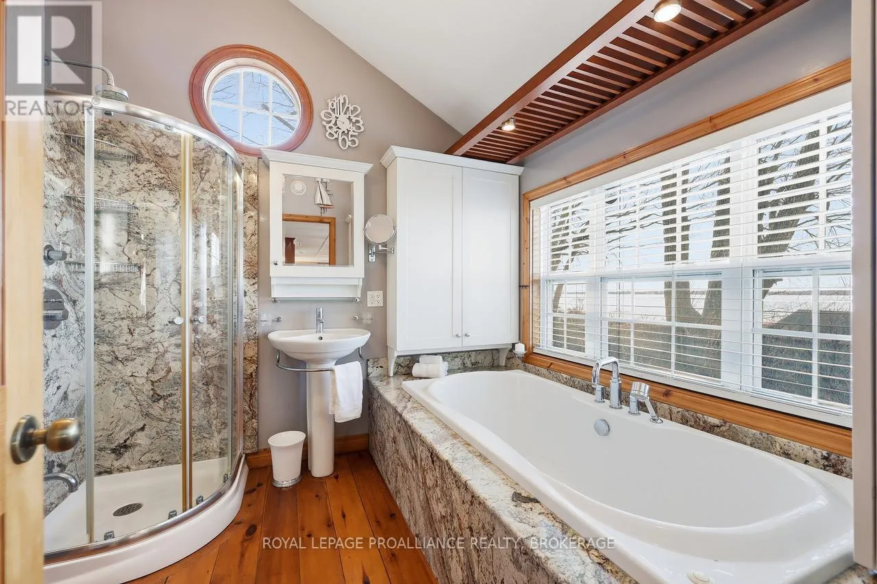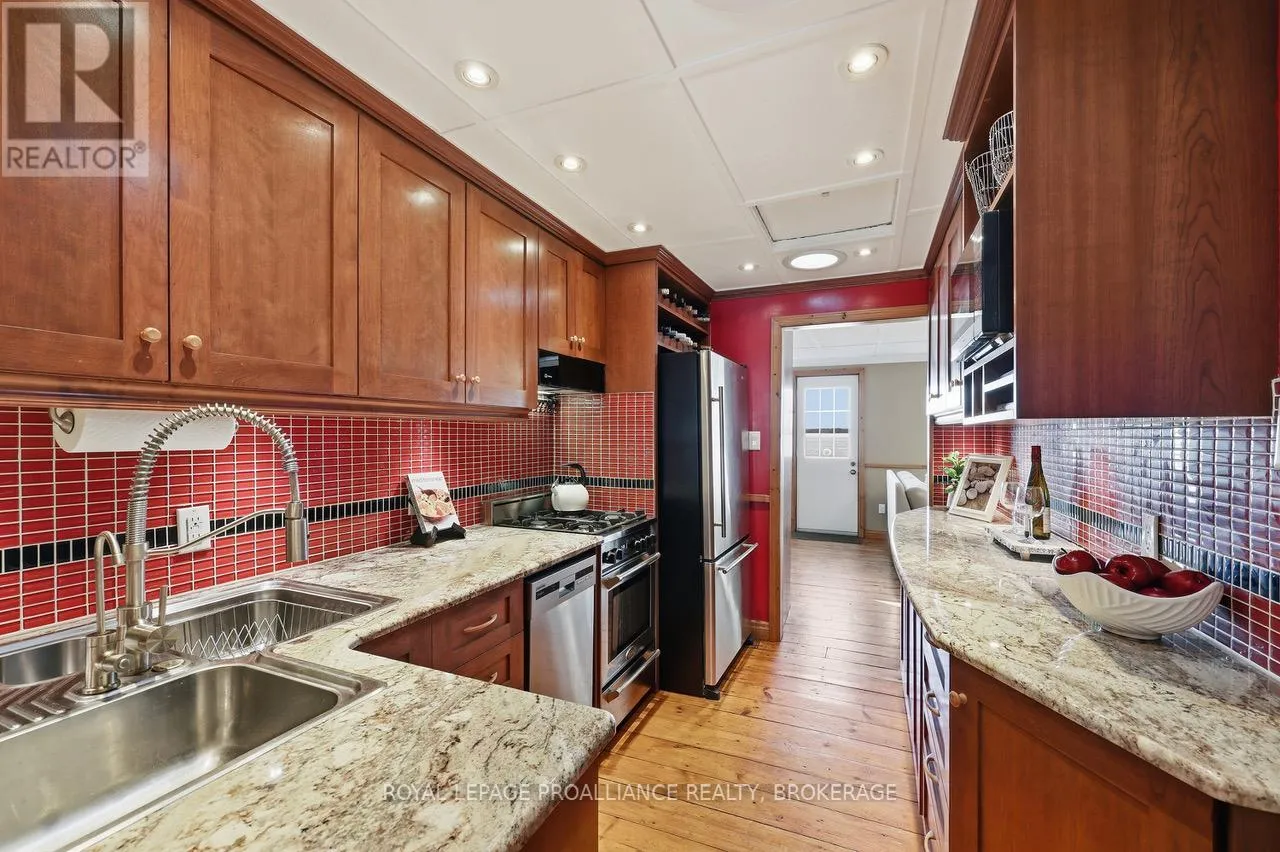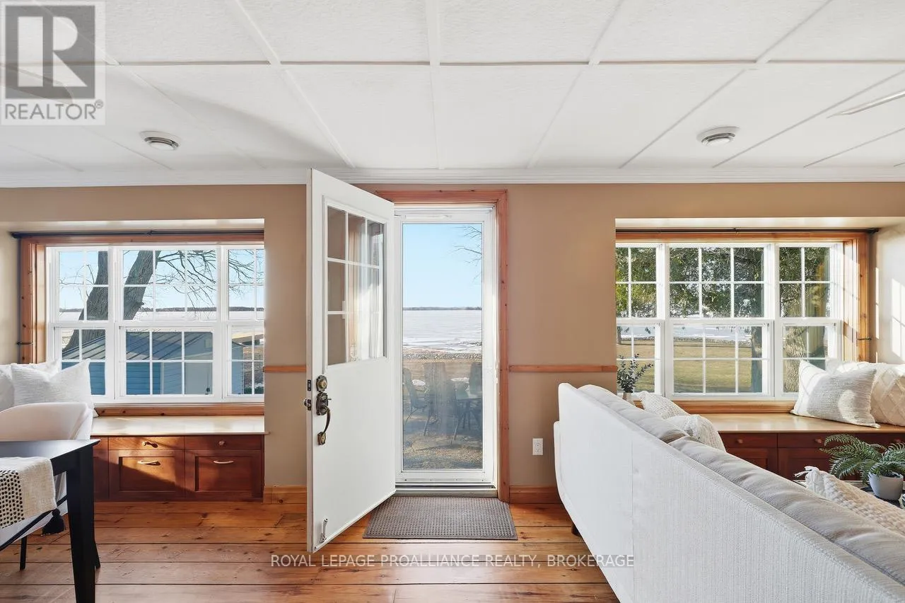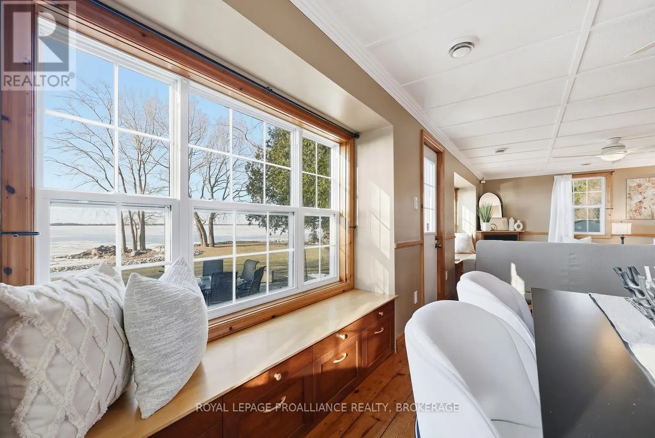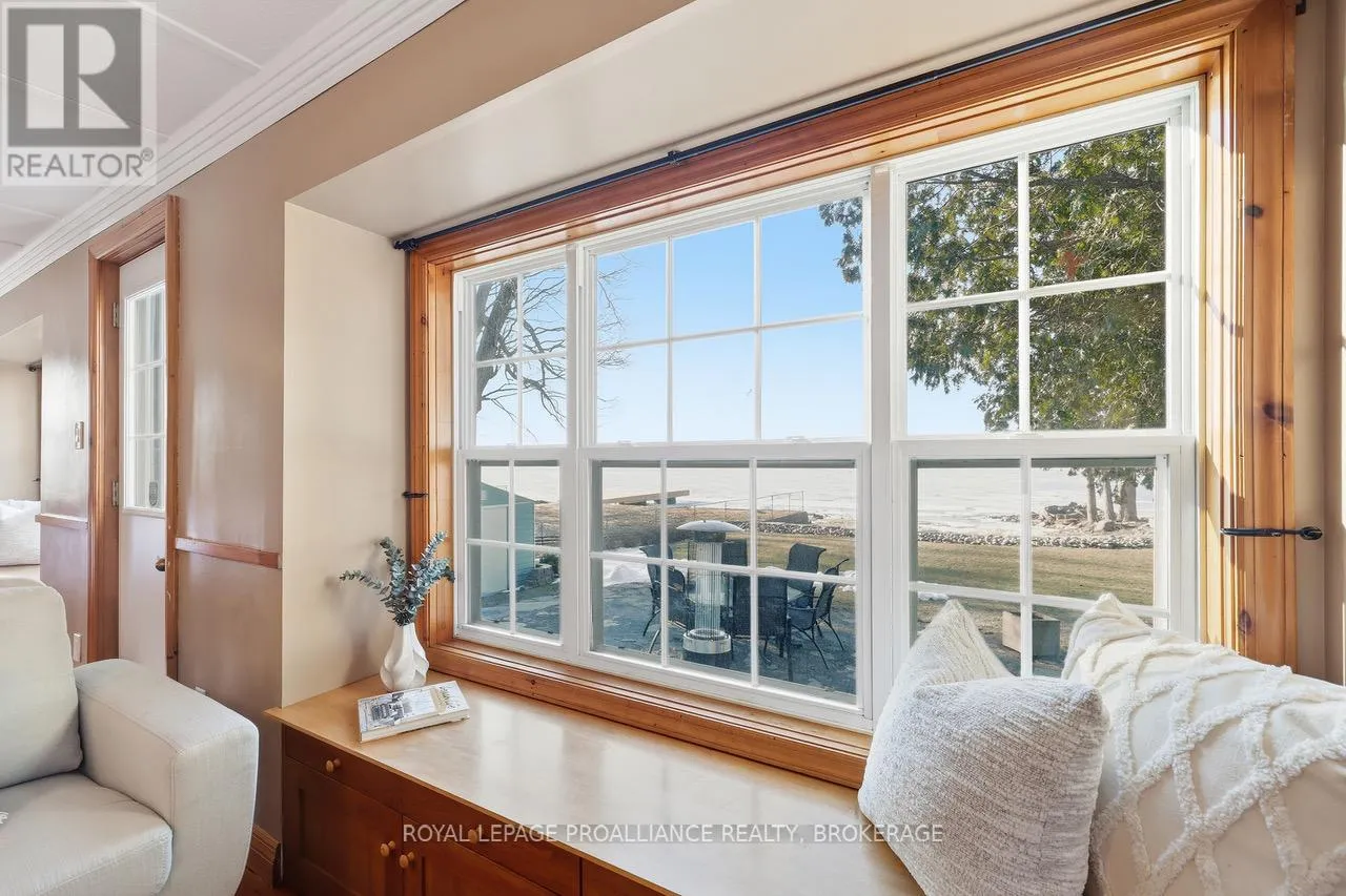 Cross Streets: Edgewood Rd & Bath Rd. ** Directions: Bath Rd to Edgewood Rd to Nicholson Point Rd. Lake Ontario waterfront, on a quiet street just minutes from the city, surrounded by protected forest and move-in ready. At $825,000, it's the kind of property that makes you stop and wonder how it's even possible. This absolutely charming 2-bedroom, 1-bath home has been meticulously maintained and thoughtfully updated over decades of proud ownership. All of the important work is done: metal roof, updated Ecoflow septic system (sized for a much larger home). energy improvements including windows and significant insulation upgrades. Move-in ready doesn't quite do it justice. Beyond care and maintenance, what sets this home apart is the intention behind it. Inspired by Christopher Alexander's A Pattern Language, the design focuses on natural light, comfort and everyday livability - with windows on multiple sides of each room, cozy window seats and clever storage throughout. Originally built in 1948, the home retains character where it matters. The red pine floors in particular are a standout - warm, natural and timeless. Outside, the setting is just as compelling. Expansive views across Lake Ontario toward Amherst Island, mature trees, perennial gardens and a peaceful, welcoming atmosphere. Directly across the road, protected woodland offers trails, wildflowers and a natural landscape that will remain untouched forever. It's a place to slow down, unwind and feel connected - to the water, nature and to home. Ideal for down-sizers, couples or anyone seeking a waterfront getaway. With the oversized septic system there's also flexibility for significant expansion or to reimagine the home over time. It's a rare opportunity to step into lake Ontario waterfront living at a price you can afford. (id:27476)
