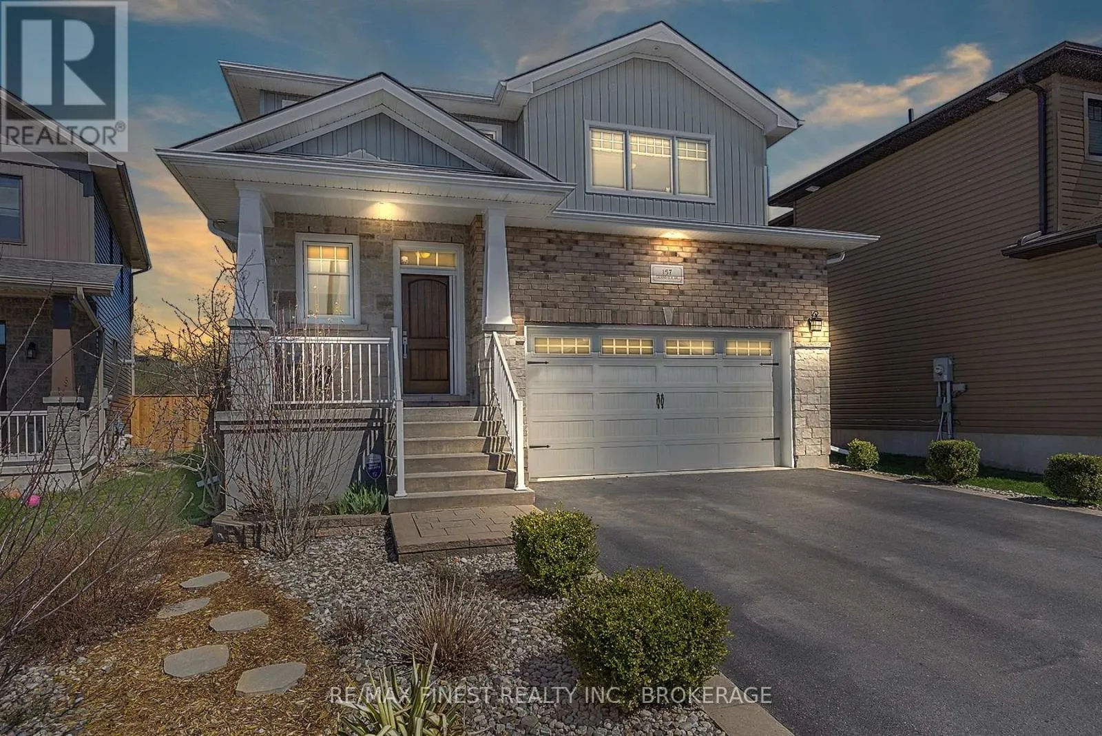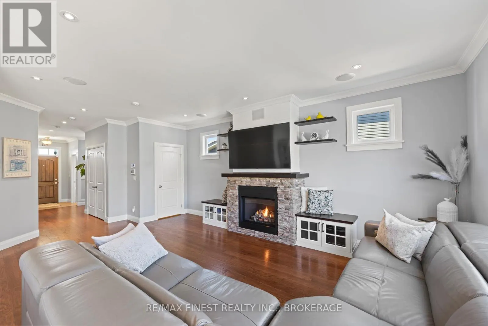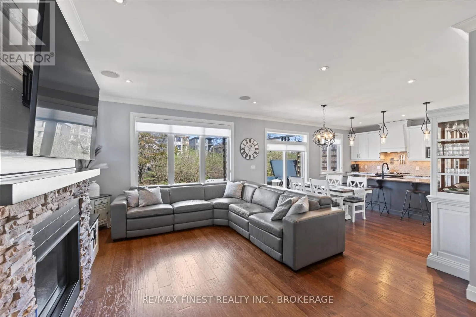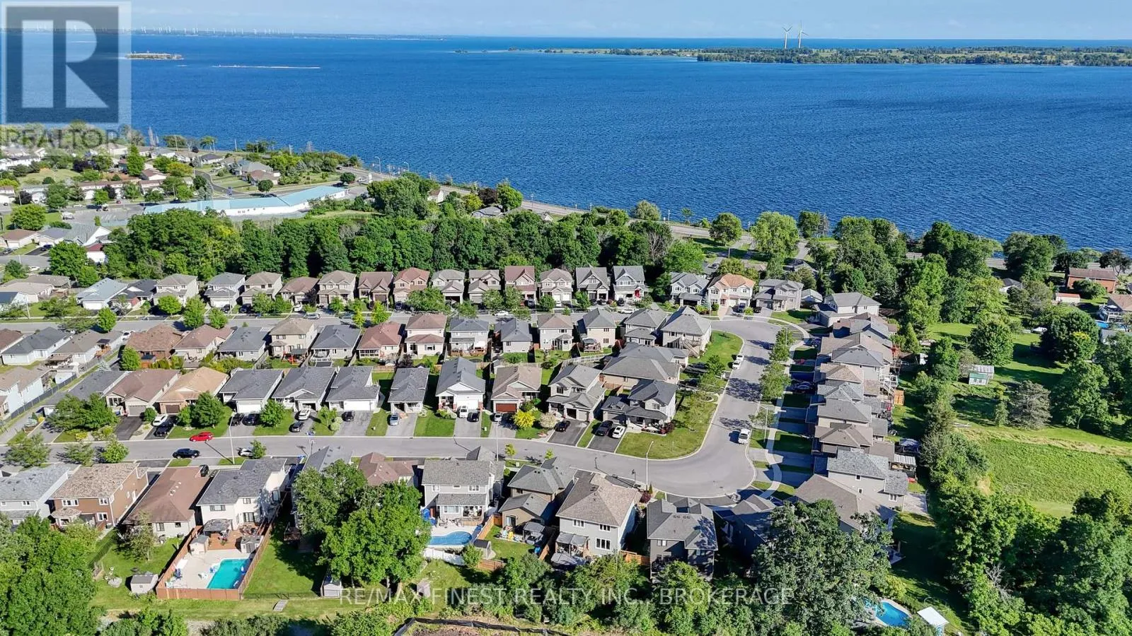 Islandview Drive & Speers Blvd Custom-built 2-storey family home by Bellefield, showcasing exceptional craftsmanship and standout curb appeal. This home offers 4bedrooms, 3.5 baths, and nearly 3,000 sq ft of beautifully finished living space. The unique architectural design features 9-foot ceilings, an expansive entryway, hardwood flooring, and upgraded trim throughout. The gourmet chef's kitchen is equipped with granite countertops, custom cabinetry, and a spacious island, flowing seamlessly into the open-concept main floor that is perfect for entertaining. This inviting space is filled with natural light and features custom-built shelving around the gas fireplace, along with patio doors that lead to a private deck and swim spa overlooking the fully landscaped property. Just off the kitchen, a generous mudroom provides convenient access to the laundry area and attached double garage. Upstairs, the primary suite impresses with elegant double doors, a custom accent wall, and a walk-in closet with exceptional built-in organization. The private ensuite includes double sinks, a walk-in shower, and a luxurious soaker tub. 3 additional generously sized bedrooms, each with large, bright windows, complete the upper level, two of which share a Jack-and-Jill bathroom. The finished lower level adds even more living space, offering a spacious recreation room, a stylish 3-piece bathroom, and ample storage in the utility room. Ideally located in a highly sought-after neighbourhood, this home is close to schools, recreational amenities, and Lake Ontario. (id:27476)