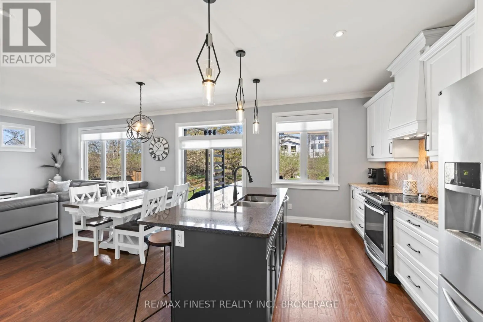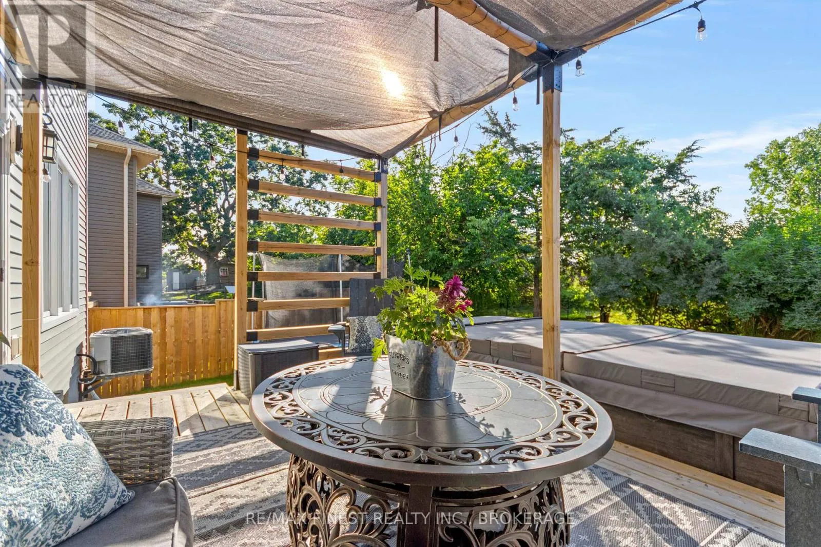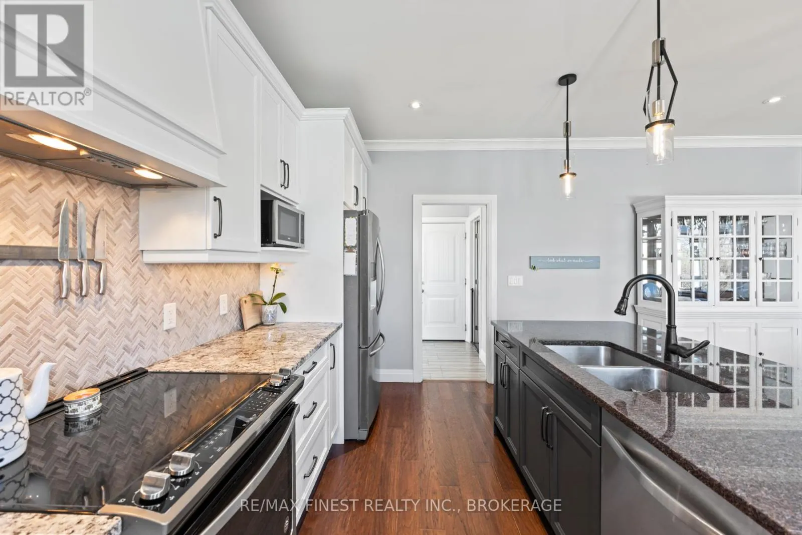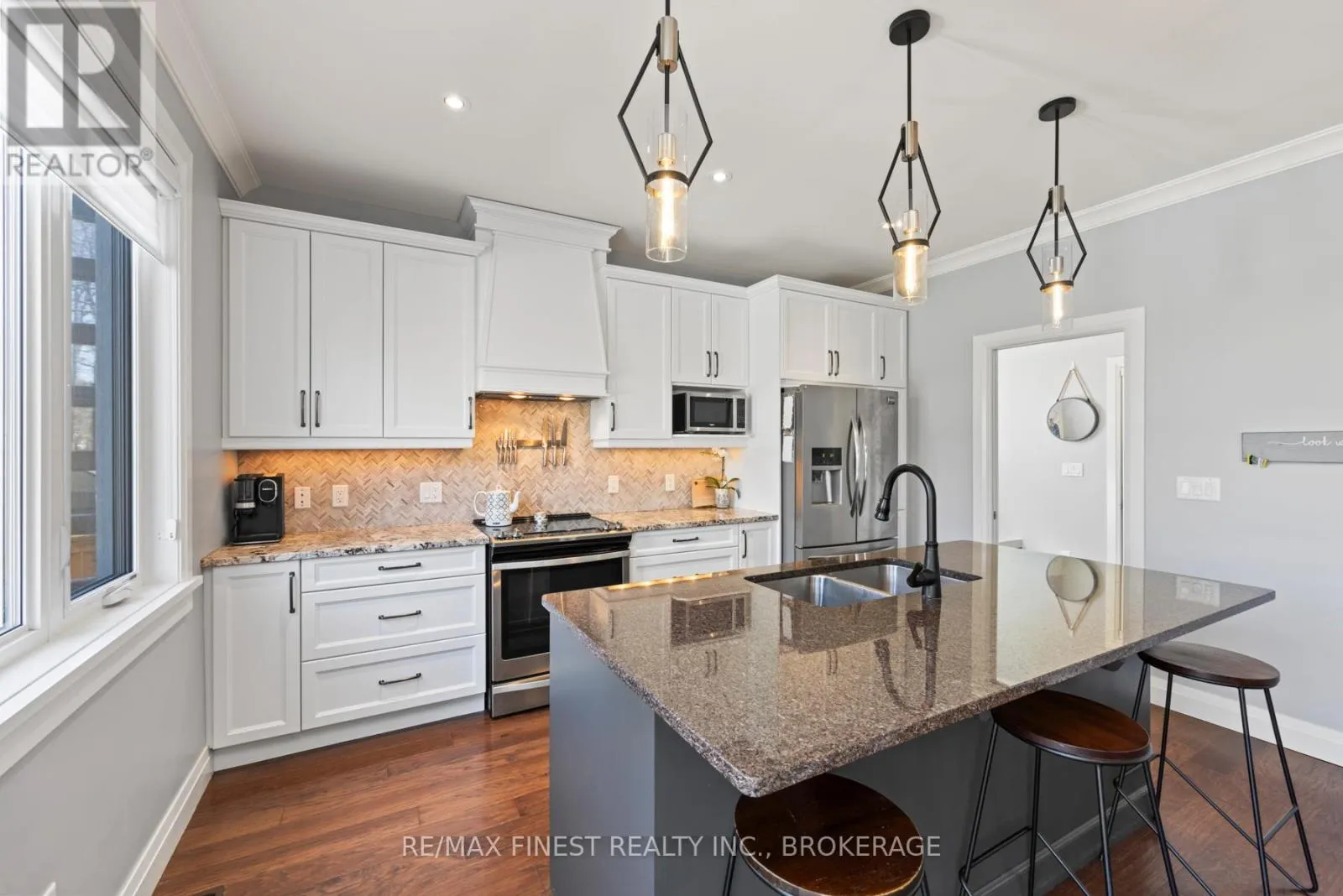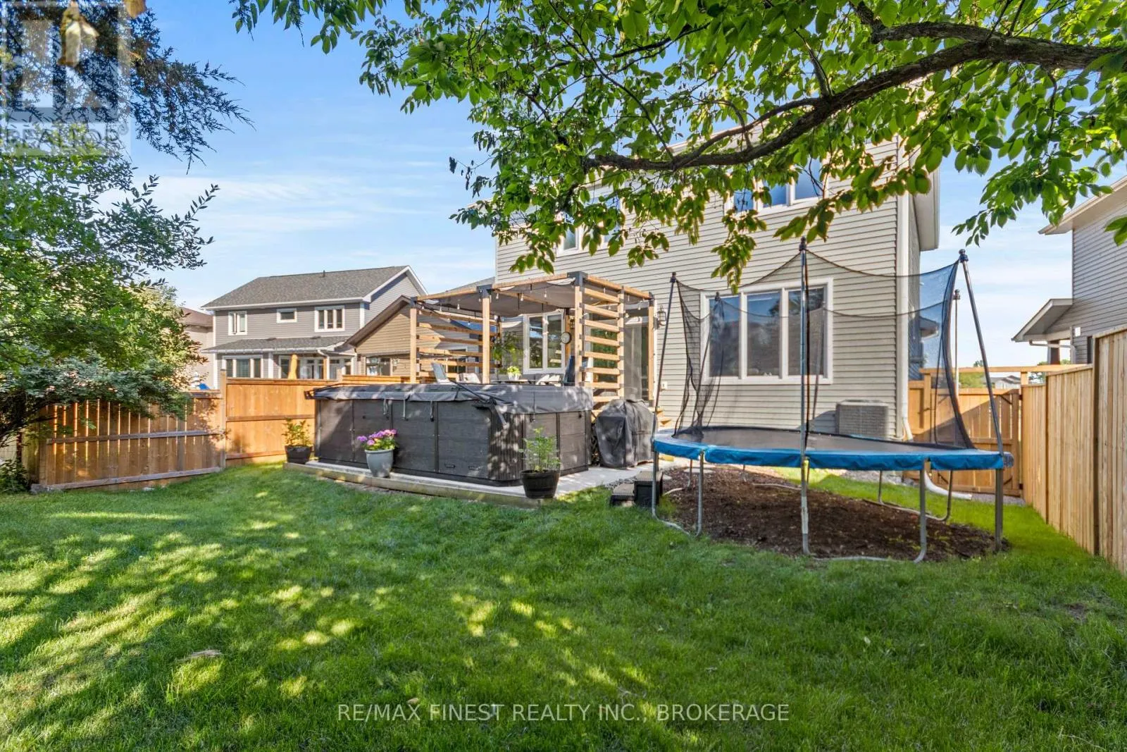 Islandview Drive & Speers Blvd Custom-built 2-storey family home by Bellefield, showcasing exceptional craftsmanship and standout curb appeal. This home offers 4bedrooms, 3.5 baths, and nearly 3,000 sq ft of beautifully finished living space. The unique architectural design features 9-foot ceilings, an expansive entryway, hardwood flooring, and upgraded trim throughout. The gourmet chef's kitchen is equipped with granite countertops, custom cabinetry, and a spacious island, flowing seamlessly into the open-concept main floor that is perfect for entertaining. This inviting space is filled with natural light and features custom-built shelving around the gas fireplace, along with patio doors that lead to a private deck and swim spa overlooking the fully landscaped property. Just off the kitchen, a generous mudroom provides convenient access to the laundry area and attached double garage. Upstairs, the primary suite impresses with elegant double doors, a custom accent wall, and a walk-in closet with exceptional built-in organization. The private ensuite includes double sinks, a walk-in shower, and a luxurious soaker tub. 3 additional generously sized bedrooms, each with large, bright windows, complete the upper level, two of which share a Jack-and-Jill bathroom. The finished lower level adds even more living space, offering a spacious recreation room, a stylish 3-piece bathroom, and ample storage in the utility room. Ideally located in a highly sought-after neighbourhood, this home is close to schools, recreational amenities, and Lake Ontario. (id:27476)