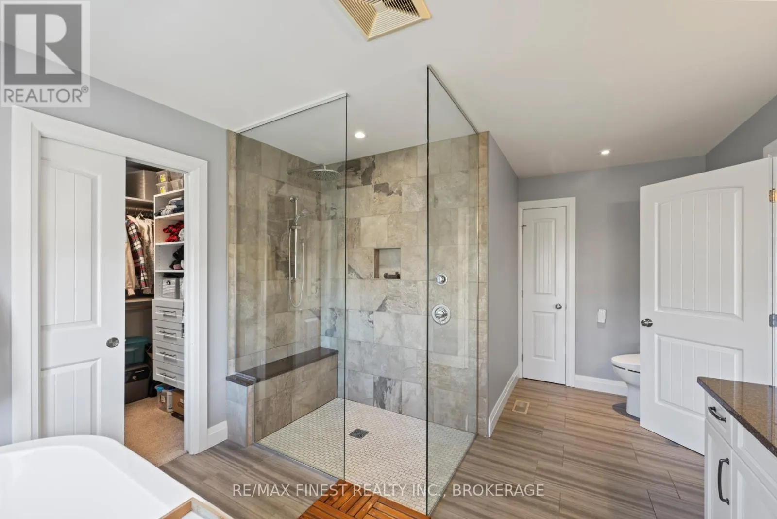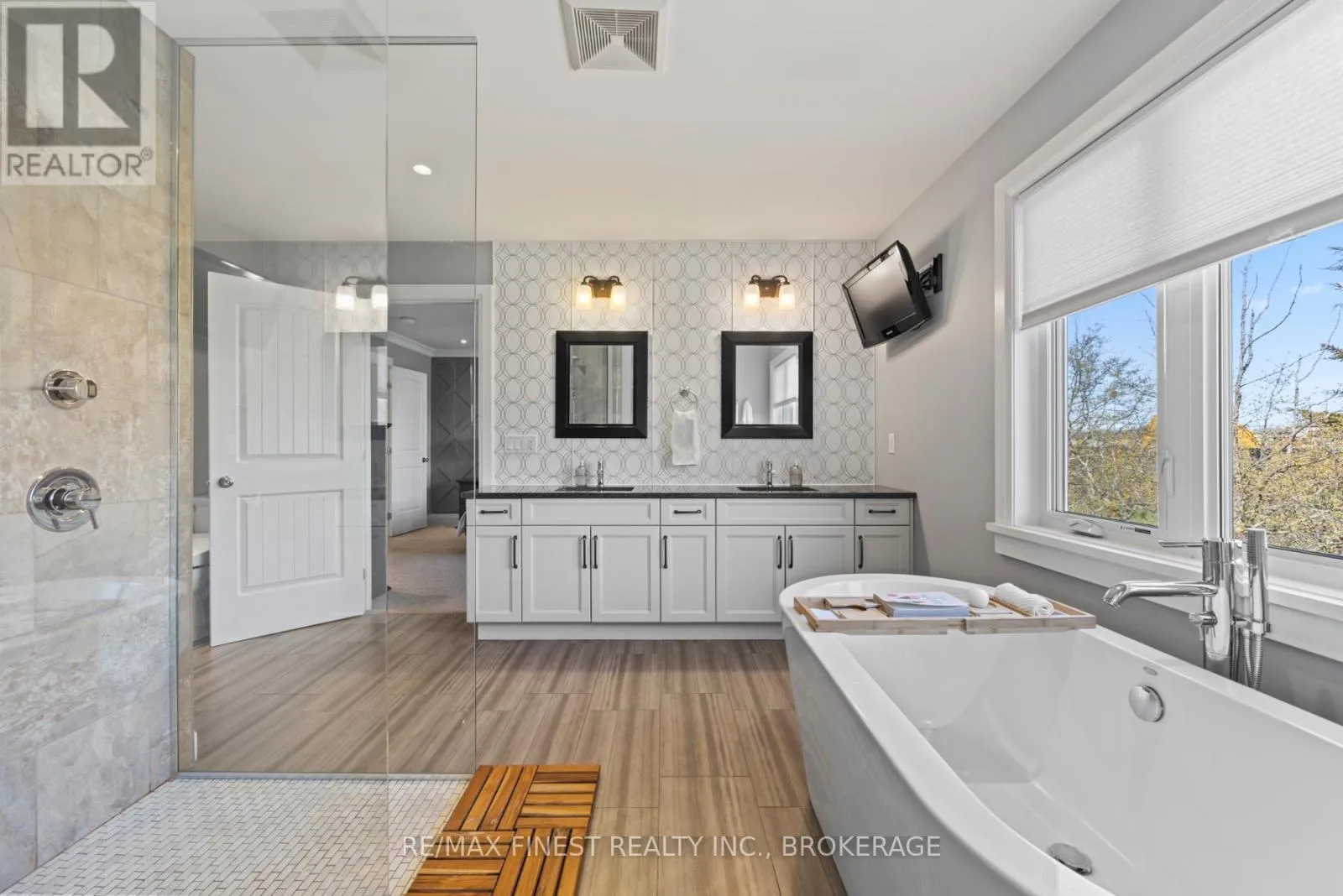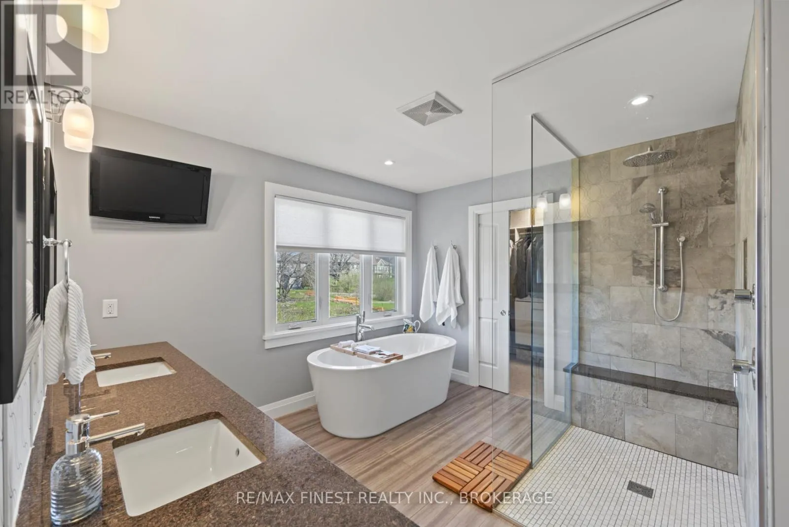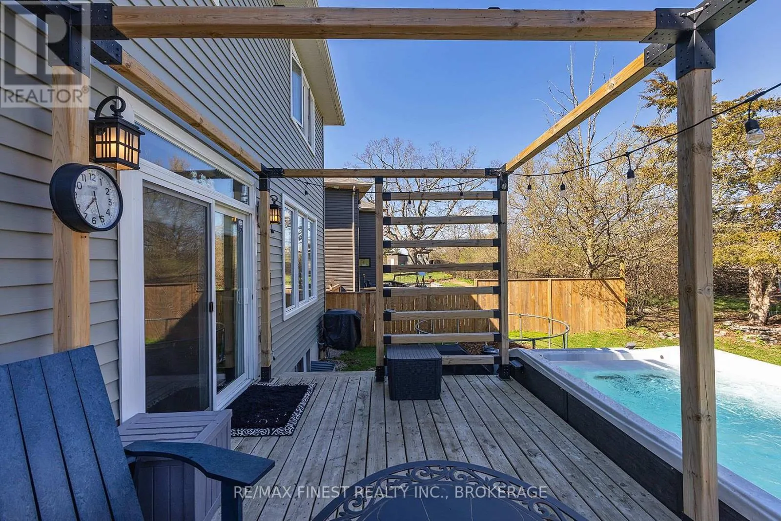 Islandview Drive & Speers Blvd Custom-built 2-storey family home by Bellefield, showcasing exceptional craftsmanship and standout curb appeal. This home offers 4bedrooms, 3.5 baths, and nearly 3,000 sq ft of beautifully finished living space. The unique architectural design features 9-foot ceilings, an expansive entryway, hardwood flooring, and upgraded trim throughout. The gourmet chef's kitchen is equipped with granite countertops, custom cabinetry, and a spacious island, flowing seamlessly into the open-concept main floor that is perfect for entertaining. This inviting space is filled with natural light and features custom-built shelving around the gas fireplace, along with patio doors that lead to a private deck and swim spa overlooking the fully landscaped property. Just off the kitchen, a generous mudroom provides convenient access to the laundry area and attached double garage. Upstairs, the primary suite impresses with elegant double doors, a custom accent wall, and a walk-in closet with exceptional built-in organization. The private ensuite includes double sinks, a walk-in shower, and a luxurious soaker tub. 3 additional generously sized bedrooms, each with large, bright windows, complete the upper level, two of which share a Jack-and-Jill bathroom. The finished lower level adds even more living space, offering a spacious recreation room, a stylish 3-piece bathroom, and ample storage in the utility room. Ideally located in a highly sought-after neighbourhood, this home is close to schools, recreational amenities, and Lake Ontario. (id:27476)