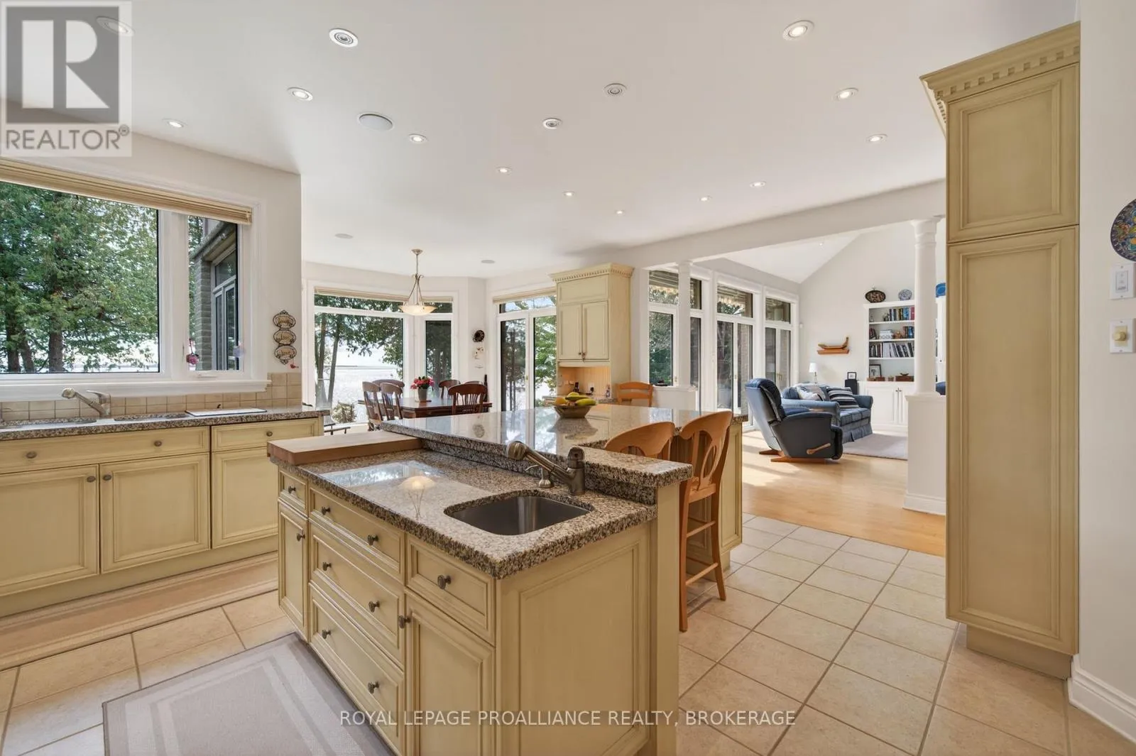 Cross Streets: Bath Road (HWY #33) to Edgewood Road - turns into Nicholson Point Road (#178) - just after Lighthouse Park. ** Directions: Bath Road (HWY#33) to Edgewood Road - turns into Nicholson Point Road (#178). Welcome to 178 Nicholson Point Road, an extraordinary Lake Ontario estate with commanding west exposure views, 90 feet of deep, rocky shoreline, and nearly 5,000 sq. ft. of custom built luxury. Crafted by the Garofalo Brothers in 2002, this home combines timeless construction, thoughtful design, and an exceptional waterfront setting on a quiet, prestigious street. Inside, the home offers 5 bedrooms and 3.5 baths, including a main floor primary suite featuring a two sided fireplace, marble floors, marble countertops, and in floor heating in the spa inspired ensuite. The granite kitchen flows into a warm and inviting family room with a gas fireplace, while skylights on the upper level fill the home with natural light. The upper loft area also benefits from in floor heating, adding year round comfort to this versatile space. The walkout basement expands the living area and includes water treatment room, and ample potential for further storage. Additional highlights include an attached 2 car garage, limestone and stucco exterior, and a natural gas backup generator for peace of mind. Recent updates ensure comfort and efficiency, Furnace (2022), Two water heaters (2024), A/C (2020). Outdoors, enjoy the best of waterfront living with a 40 ft dock, perfect for swimming, boating, and taking in Kingston's iconic sunsets over Lake Ontario. A rare opportunity to own a beautifully built, meticulously maintained waterfront home in one of the region's most desirable enclaves. (id:27476)