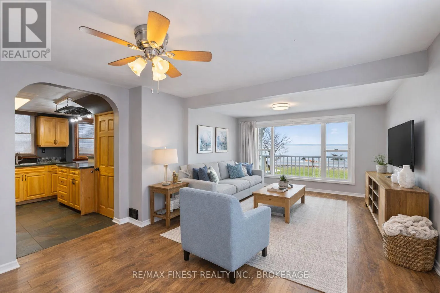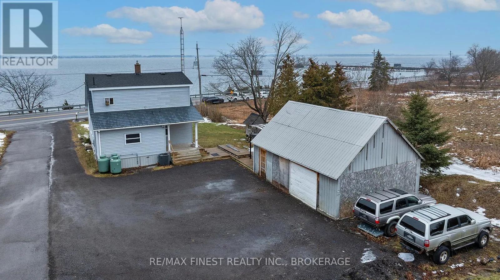 Cross Streets: Bath Road and Jim Snow Parkway. ** Directions: County Road 6 or County Road 4 to Bath Road. Prepare to be impressed with this charming two-storey home offers unobstructed, postcard-perfect views of Lake Ontario right from your front window. Whether you're enjoying a quiet morning coffee or winding down at the end of the day, the ever-changing lake scenery provides the ideal backdrop for waterfront-inspired living without the waterfront taxes. Inside, the home features 2+1 bedrooms and 2 bathrooms, thoughtfully laid out for comfort and practicality. The interior has been tastefully updated and includes a warm oak kitchen, a bright and inviting separate dining room, and a spacious living room that captures natural light beautifully. Extensive updates ensure peace of mind for years to come, including updated windows, roof, propane furnace, central air, flooring, paint, and a newly added main-level2-piece bathroom. The lower level offers flexible space for an extra bedroom or office, or hobby area. Additional highlights include municipal water and high-speed internet, offering modern convenience while maintaining a peaceful setting. Outside, the property continues to impress with a large detached garage/workshop, perfect for storage, projects, or toys. A generous deck and covered pergola create a fantastic outdoor living area for entertaining or simply relaxing while taking in the surrounding landscape. And for those seeking a touch of rural charm, the bonus chicken coop provides a fun opportunity for hobby farming. Conveniently located along the scenic and historic Loyalist Parkway, this property offers an easy commute to Kingston while providing the tranquility of country living and the beauty of lakeside views. A rare offering that blends comfort, character, and lifestyle. This is one you won't want to miss! (id:27476)