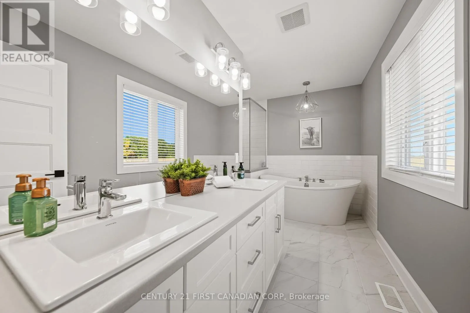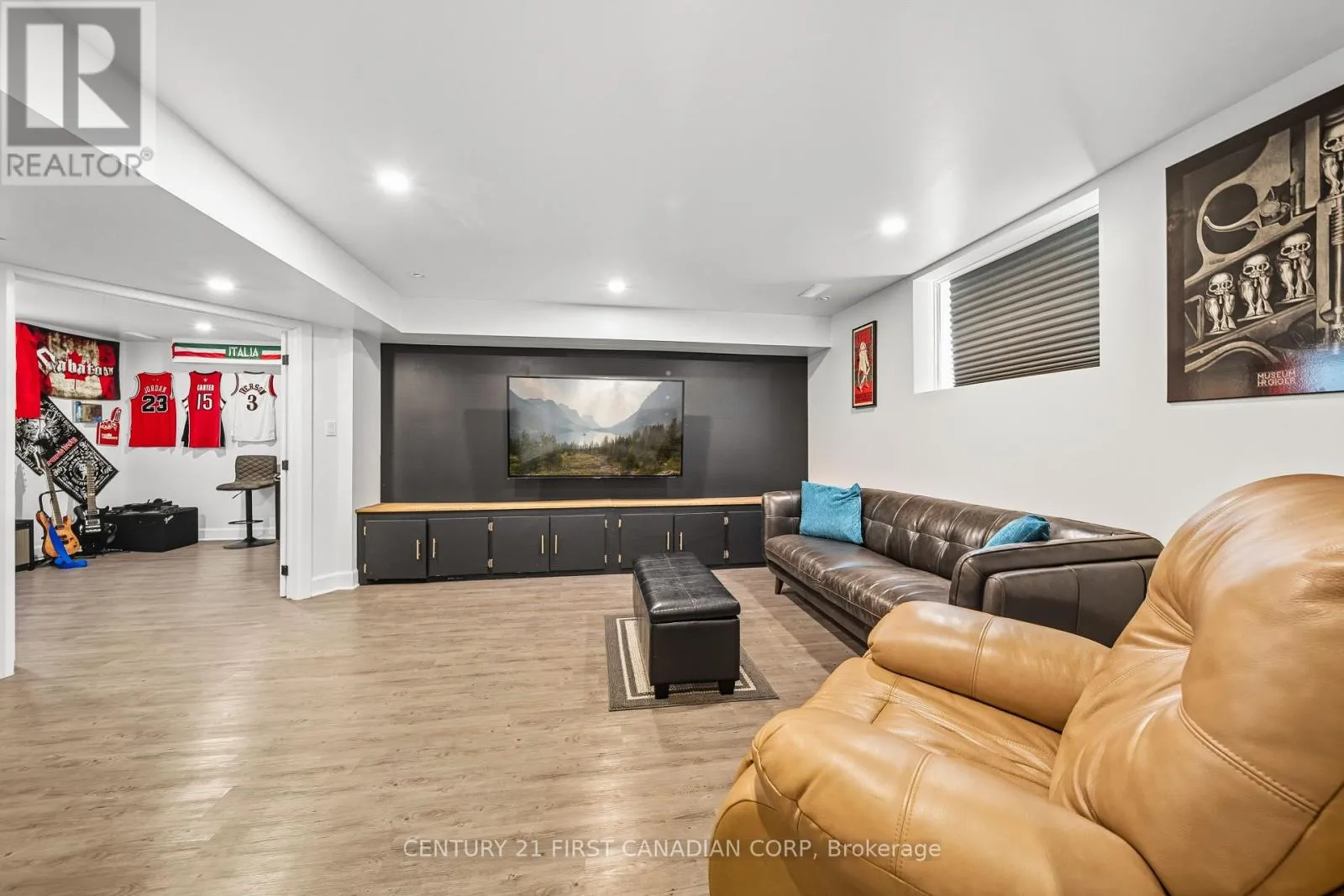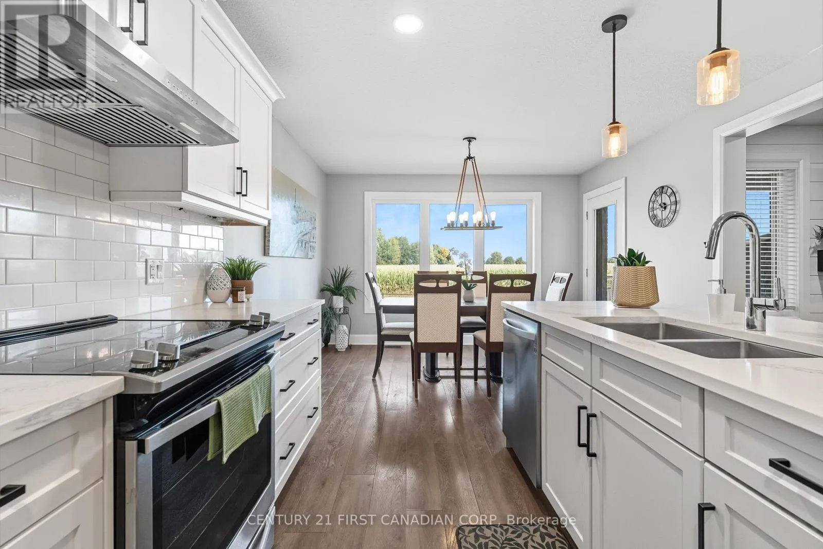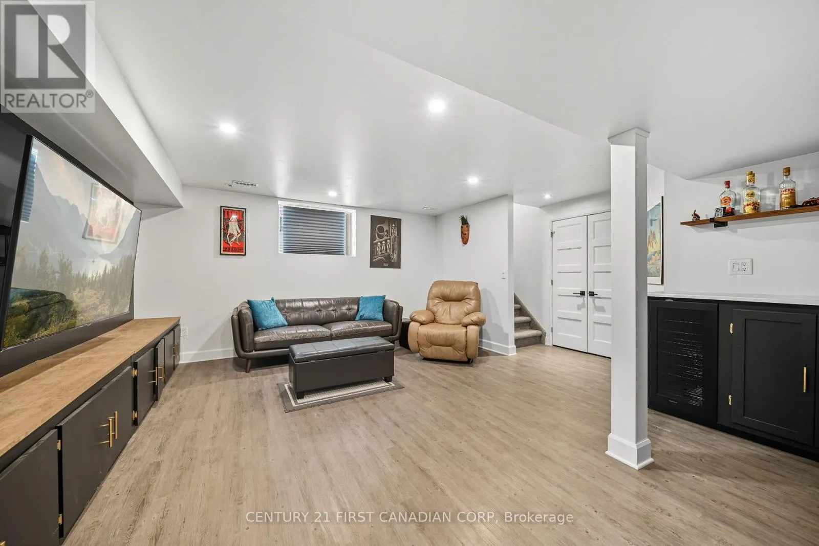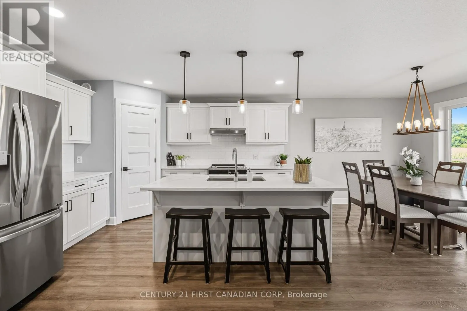 Cross Streets: Nicholson. ** Directions: Turn onto Gilmour from Saintsbury, Beech, Hardy or Campanale. Welcome to 146 Gilmour Drive, a beautifully finished two story home in the family-friendly Ridge Crossing subdivision in Lucan. Just 15 minutes from North London and 30 minutes from Grand Bend and the shores of Lake Huron, this community continues to attract families who want small-town charm with easy access to city conveniences.This stunning Healy model by Colden Homes offers 3+1 bedrooms, 3.5 bathrooms, and a fully finished basement complete with a wet bar, providing plenty of space for a growing family or entertaining guests. This home is filled with high-end finishes and thoughtful design details, including a spa-like five-piece ensuite in the primary bedroom, quartz counters and a walk-in pantry in the open-concept kitchen, and a shiplap feature wall with a gas fireplace and wood mantle in the living area. The finished lower level adds even more living space with an additional bedroom, full bathroom, and stylish bar area. (id:27476)