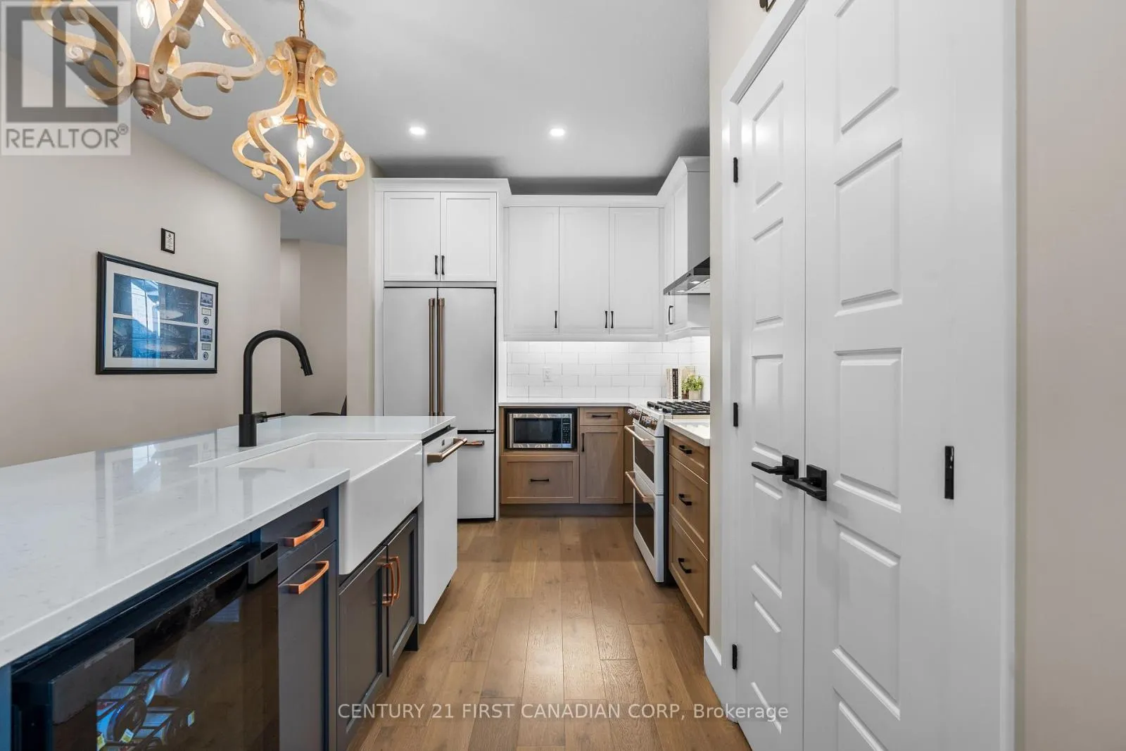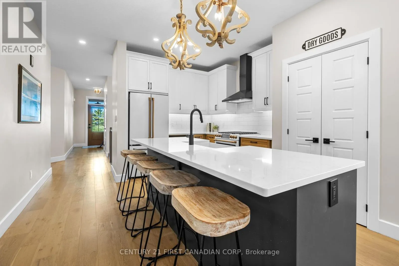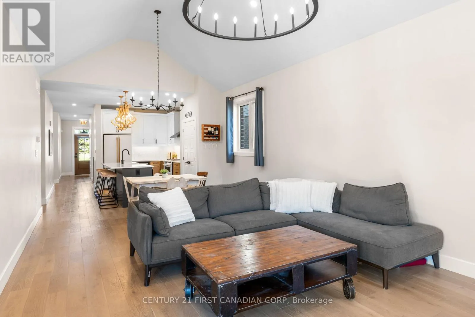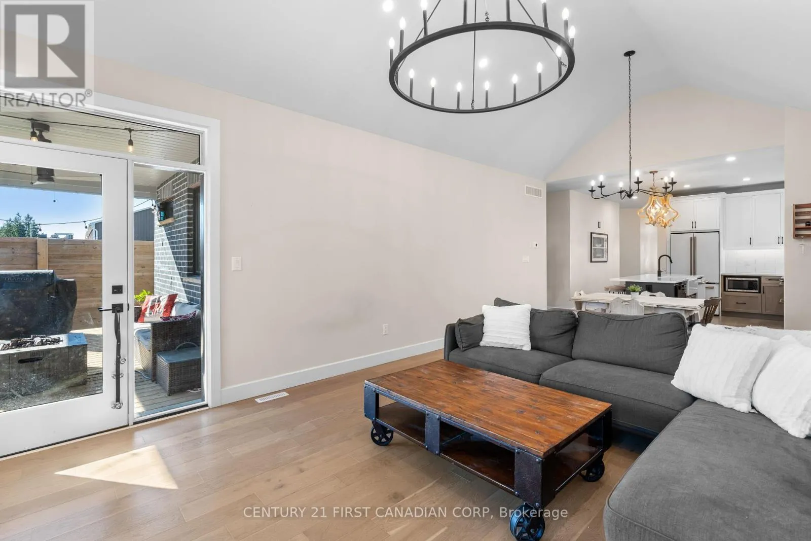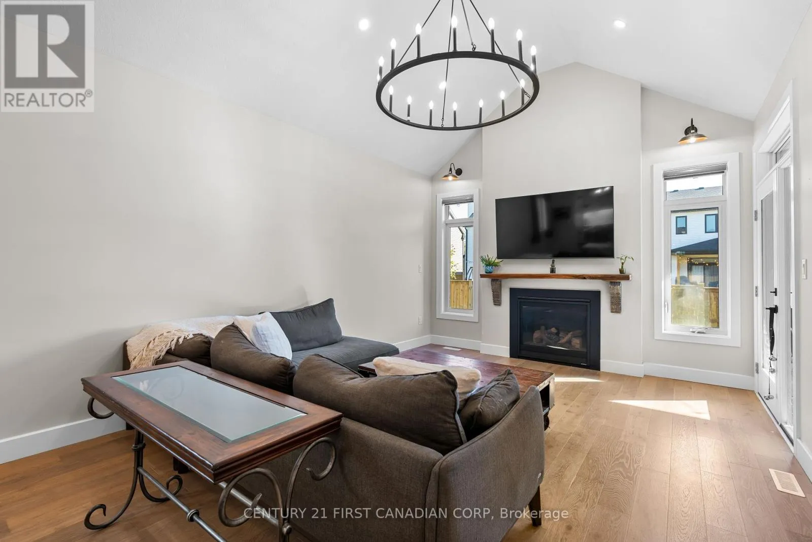 Cross Streets: WILLIAM ST. ** Directions: Turn onto Scotts Drive from William or Elizabeth. Welcome to 128 Scotts Drive, nestled in Lucan's newest neighbourhood, Ausable Fields. This stunning "Cole" plan bungalow, constructed in 2023 by the Van Geel Building Co, features 1,471 sq ft of finished space on the main floor, along with an additional 1,166 sq ft in the basement.This bungalow showcases impressive curb appeal with a charming blend of stone and black Hardie board, complemented by a concrete driveway that accommodates four vehicles.Step through the front door to discover elegant engineered hardwood floors that flow throughout the main level, highlighted by 9' ceilings. To the right of the main hallway, you'll find a laundry room equipped with a custom dog wash. The open-concept kitchen boasts beautiful oak and white cabinetry along the walls, a striking black island, and gorgeous white quartz countertops. The kitchen is complete with high-end Cafe brand appliances and a spacious pantry. Adjacent to the kitchen, the eat-in dinette and living room feature a dramatic 12.8' vaulted ceiling and a gas fireplace with a live edge mantel. From the living room, step out onto the large 18.5 x 12' covered back porch.The main floor also includes a spacious primary bedroom with an ensuite that has been enlarged from the original design to incorporate a large tiled walk-in shower. The second bedroom features a cheater door leading to the main 4-piece bathroom. The finished basement boasts a massive family room with 8.8' ceilings and large windows that create a sense of spaciousness uncommon in standard basements. There are two sizable bedrooms and a 3-piece main bathroom, with the family room also having rough-ins for a future wet bar. Ausable Fields is conveniently accessible from both William St and Elizabeth St, situated just steps away from the Lucan Community Centre, which features soccer fields, two baseball diamonds, a 800m track, an off-leash dog park, a playground, the community gardens, as well as the Lucan Arena, Community Centre Gym and the Public Poo (id:27476)
