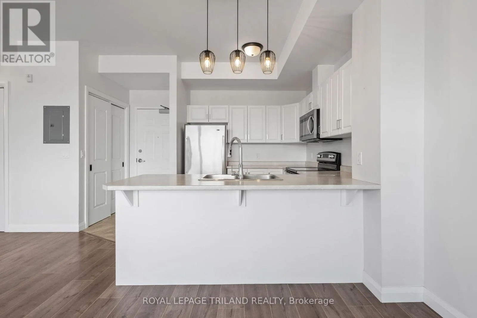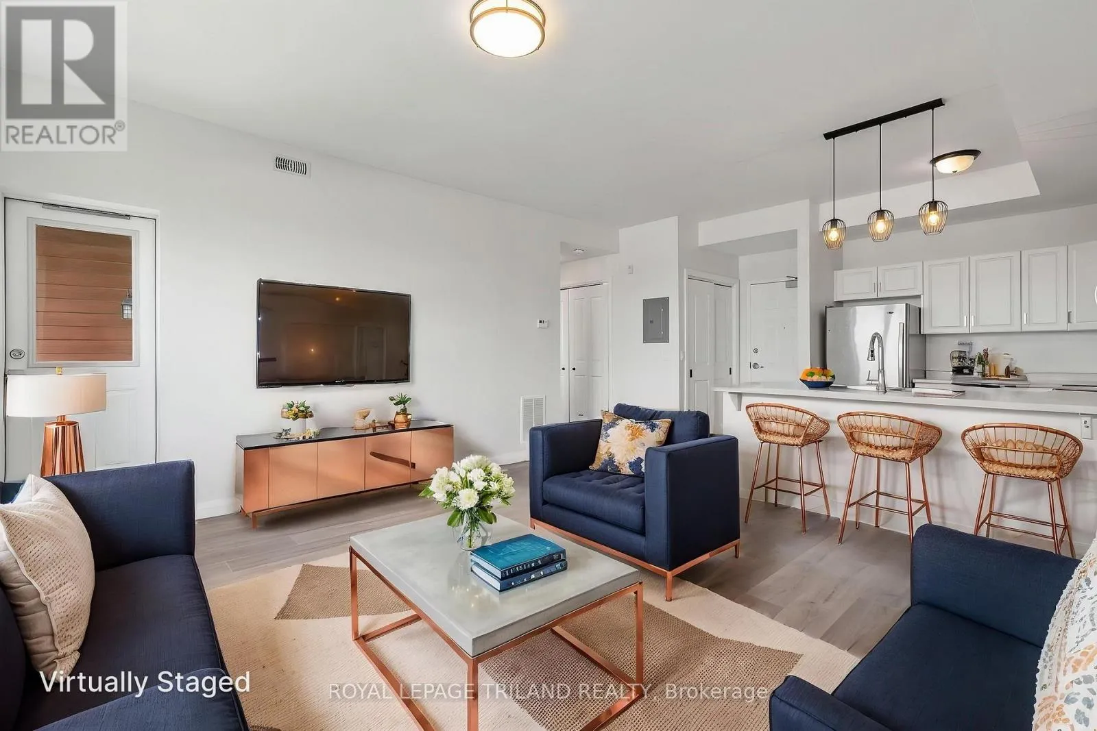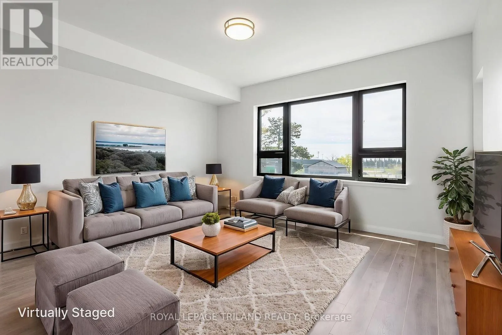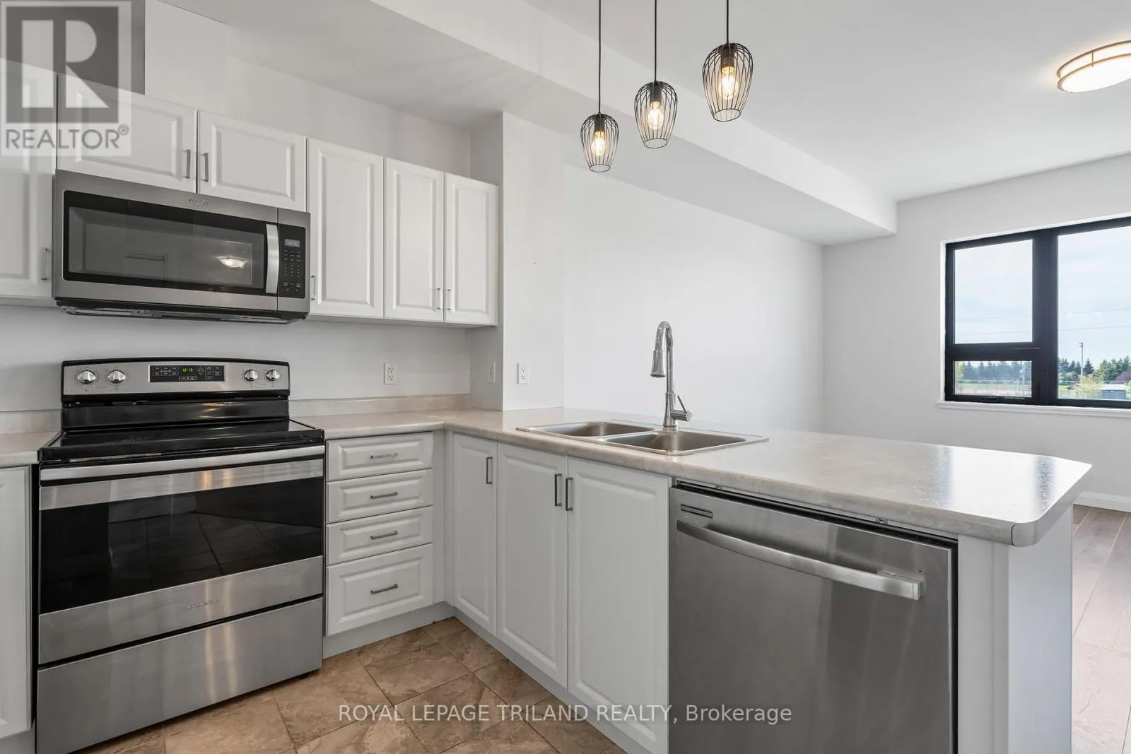 Cross Streets: Chestnut Street. ** Directions: Head north on Richmond Street, then turn east to Chestnut St. Turn West to Butler St. Welcome to 305 - 263 Butler St! A perfect opportunity for first time buyers, downsizers and investors alike! If you are looking for a maintenance free new build condo this could be perfect for you. This charming one bedroom condo has an open concept kitchen and living room with an oversized balcony that is perfect for your morning coffee or for watching the sunset while having a glass of wine. Huge windows bathe the unit in natural light and make it feel warm and homey. Off of the main area is the bedroom and a full bathroom, as well as an insuite laundry that has plenty of storage space as well. Well maintained and ready for its next owner this could be the opportunity you've been waiting for! (id:27476)