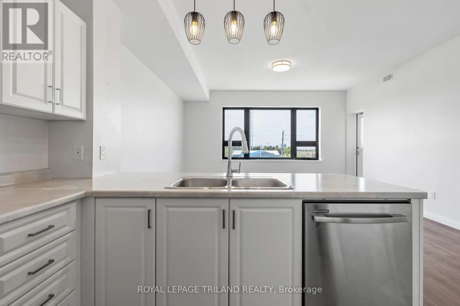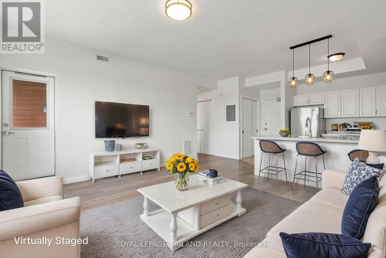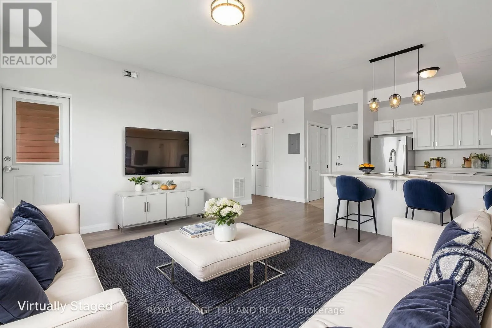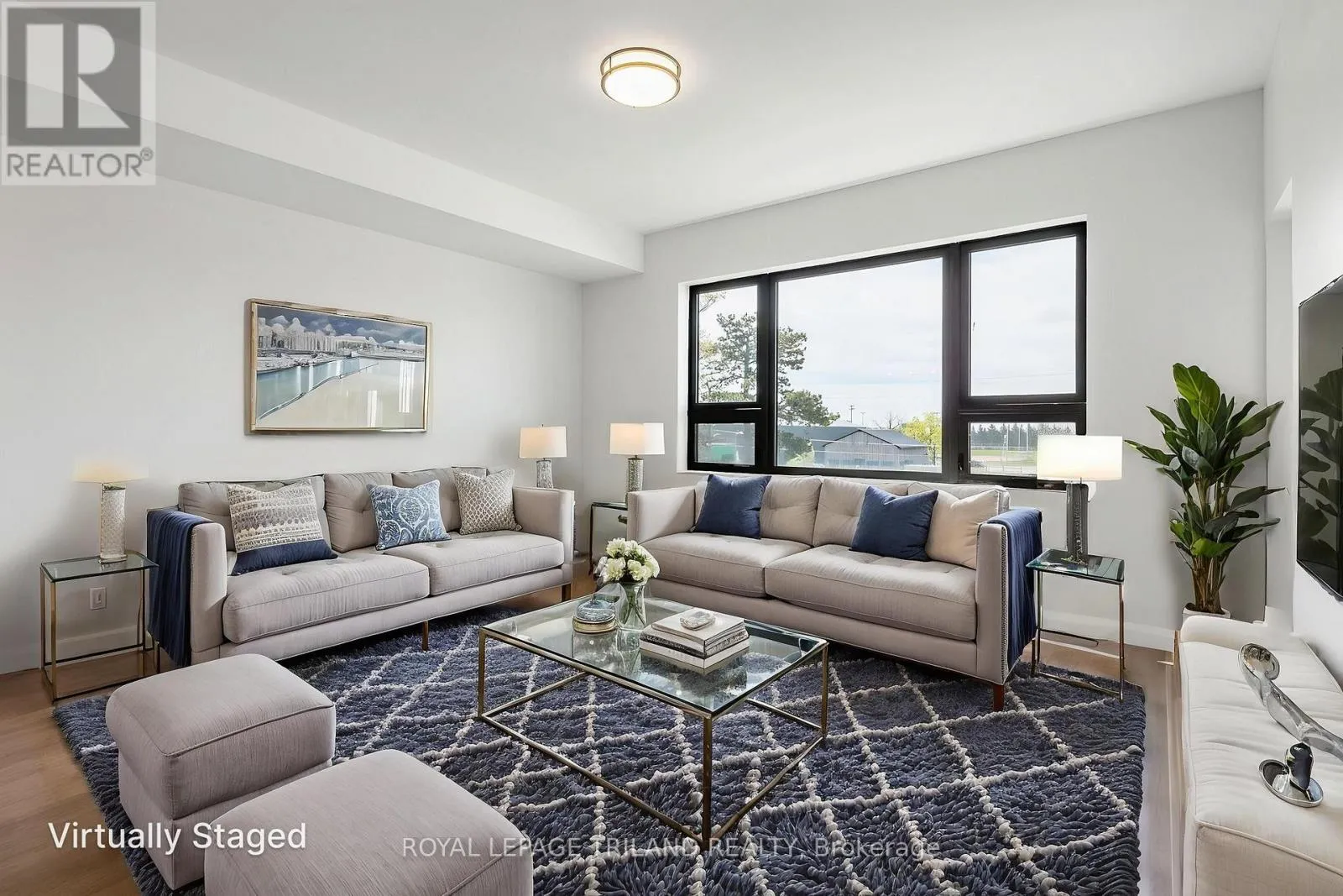 Cross Streets: Chestnut Street. ** Directions: Head north on Richmond Street, then turn east to Chestnut St. Turn West to Butler St. Welcome to 305 - 263 Butler St! A perfect opportunity for first time buyers, downsizers and investors alike! If you are looking for a maintenance free new build condo this could be perfect for you. This charming one bedroom condo has an open concept kitchen and living room with an oversized balcony that is perfect for your morning coffee or for watching the sunset while having a glass of wine. Huge windows bathe the unit in natural light and make it feel warm and homey. Off of the main area is the bedroom and a full bathroom, as well as an insuite laundry that has plenty of storage space as well. Well maintained and ready for its next owner this could be the opportunity you've been waiting for! (id:27476)