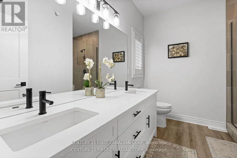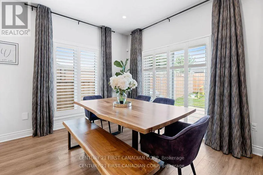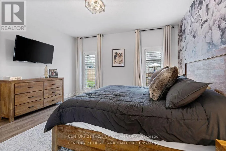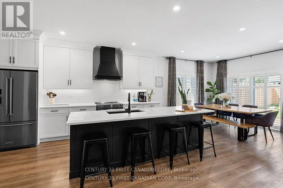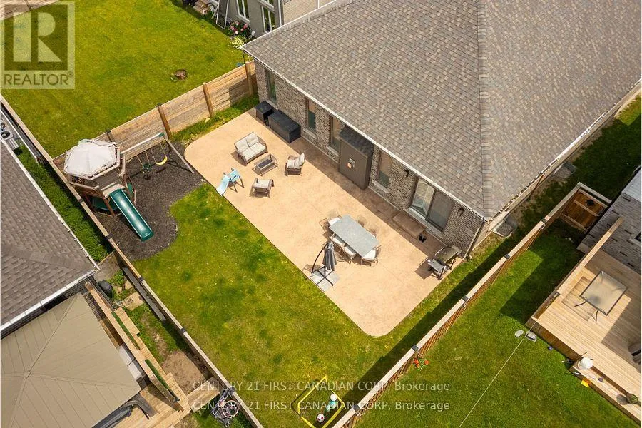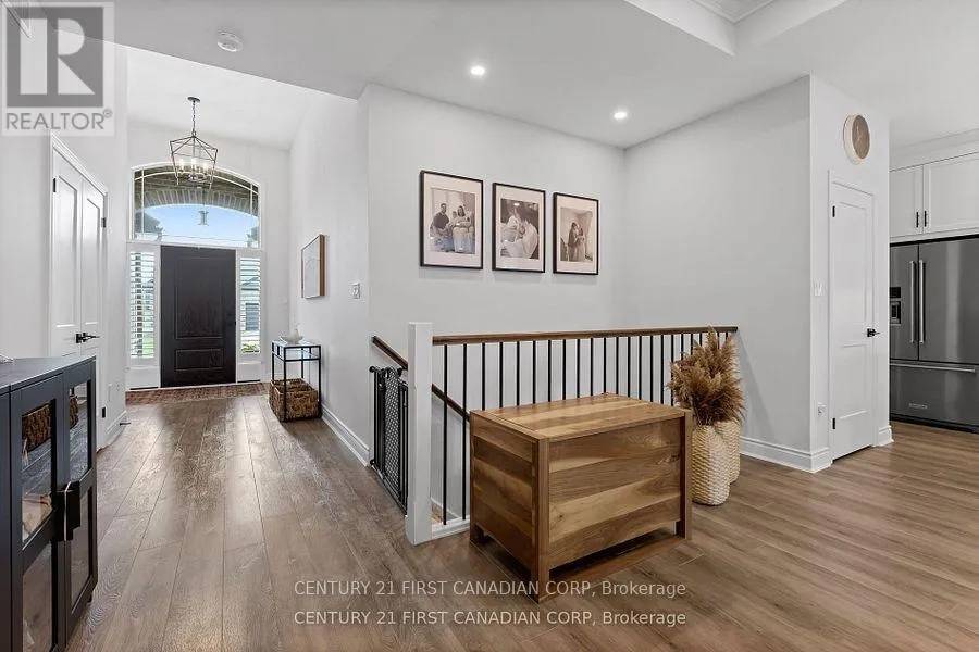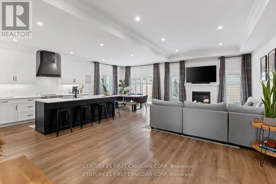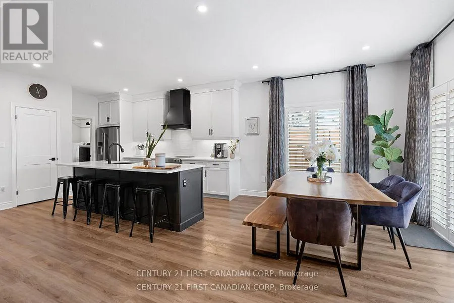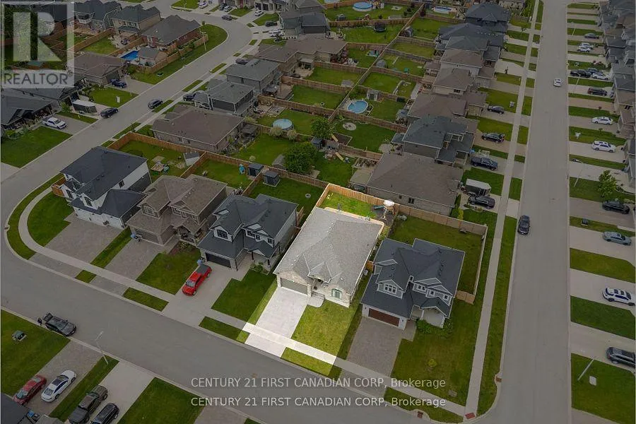 Cross Streets: From London take Richmond St North to Lucan. Turn Right on Saintsbury Line. Turn Left on Gilmour Drive. Turn Left on Hardy Court. ** Directions: Turn onto Hardy from Gilmour or Hearn. Welcome to 3 Hardy Court, a former model home located on a premier street in Lucan's sought-after Ridge Crossing neighbourhood. This stunning 1,732 sq ft full-brick bungalow looks straight out of a designer magazine and is sure to impress! Built in 2019 and in impeccable condition, this home is better than new no construction zones, just turn-key perfection. The rare and spacious 3-bedroom main floor layout offers the convenience of one-level living without sacrificing square footage or style.From the moment you arrive, the curb appeal is evident with a stamped concrete driveway and a 16-foot stamped concrete patio that spans the width of the home in the fully fenced backyard perfect for entertaining or quiet evenings. Inside, the home welcomes you with an extra-wide foyer and a dramatic 12-foot vaulted ceiling, leading to a grand great room highlighted by a cozy gas fireplace and tray ceiling with crown molding. The kitchen is sleek and modern with ceiling-height cabinetry, quartz countertops, beautiful white subway tile backsplash, a massive island with seating for four, a stylish range hood, KitchenAid appliances, and a large walk-in pantry. The open-concept dining area with California shutters flows seamlessly to the outdoor living space.The primary suite is tucked away in its own private wing, offering a peaceful retreat with a walk-in closet, and a spa-inspired ensuite with double vanity, quartz countertops, and a glass walk-in shower. Two additional generously sized bedrooms are located at the front of the home, sharing a stylish 4-piece bath. A well-located main floor laundry room with custom built in cubbies, connects conveniently to the double-car garage.Situated just steps from schools, walking trails, the community centre, and a short drive to North London, this is Lucan living at its finest. Whether you're upsizing, downsizing, or right-sizing this pristine, feature-rich home is a must-see. (id:27476)