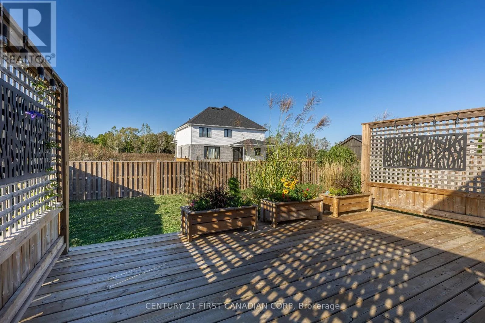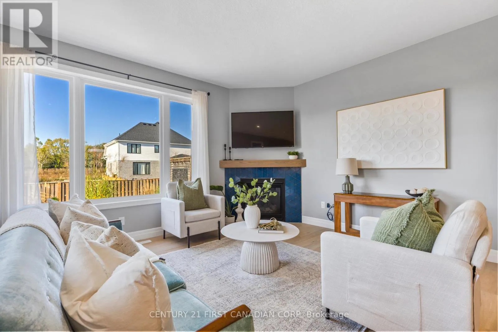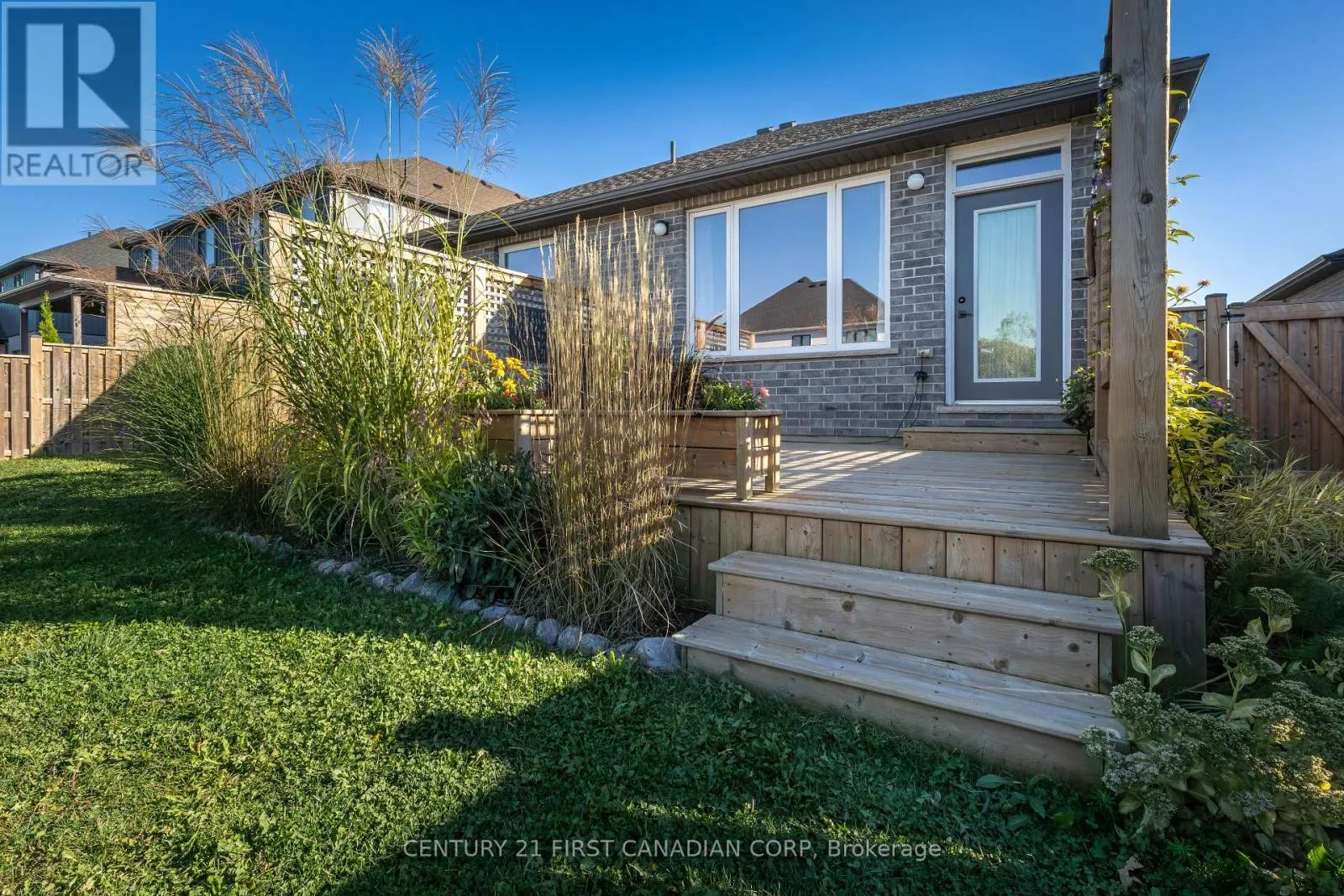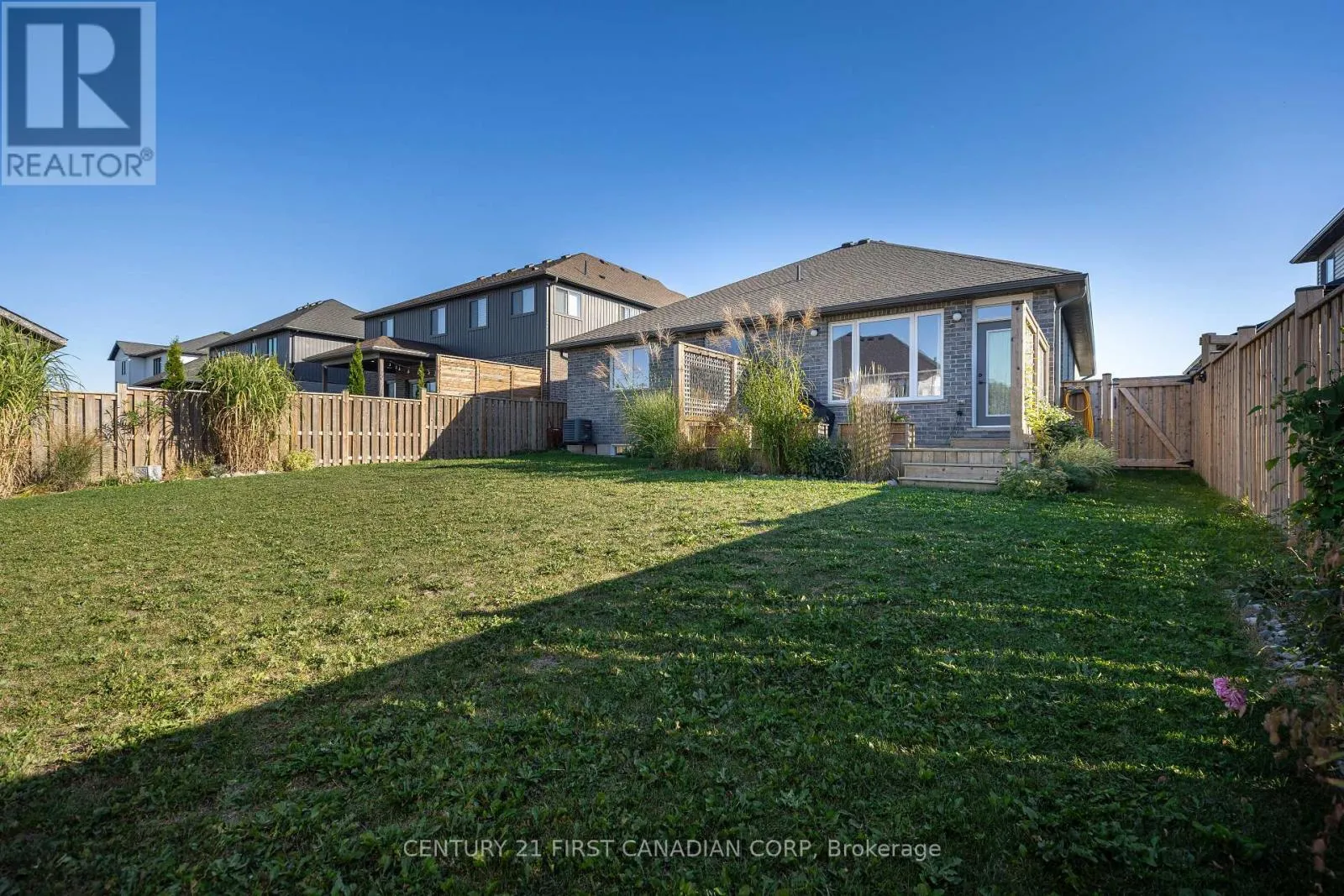 Cross Streets: Spencer Ave. ** Directions: Saintsbury Line to Spencer Ave and left onto Stuart Avenue. Welcome to this stunning bungalow tucked away on a quiet, family-friendly street in the sought-after Olde Clover Subdivision in Lucan, directly across from the park, offering beautiful views and an unbeatable location. Step inside and immediately feel the warmth of natural light pouring in from all directions, highlighting the inviting open-concept layout. The heart of the home is the stylish kitchen, complete with stainless steel appliances, ample cabinetry, and a perfect flow into the bright dining and living space, ideal for entertaining or cozy nights in front of the gas fireplace. A patio door off the living area leads to a private backyard oasis featuring a spacious deck, perfect for morning coffees, weekend BBQs, or simply relaxing in peace. The luxury primary bedroom is a true retreat, featuring a 4-piece ensuite and a generous walk-in closet. Two additional well-sized bedrooms and a convenient main floor laundry room complete the main level. The 21ft x 20ft two-car garage provides ample space for vehicles and storage. Downstairs, the unfinished basement offers endless possibilities with a rough-in for a bathroom already in place and ready for your personal touch to transform it into the space of your dreams. This exceptional home combines comfort, function, and style in one of Lucan's most desirable neighbourhood's. Don't miss your chance to make it yours! (id:27476)