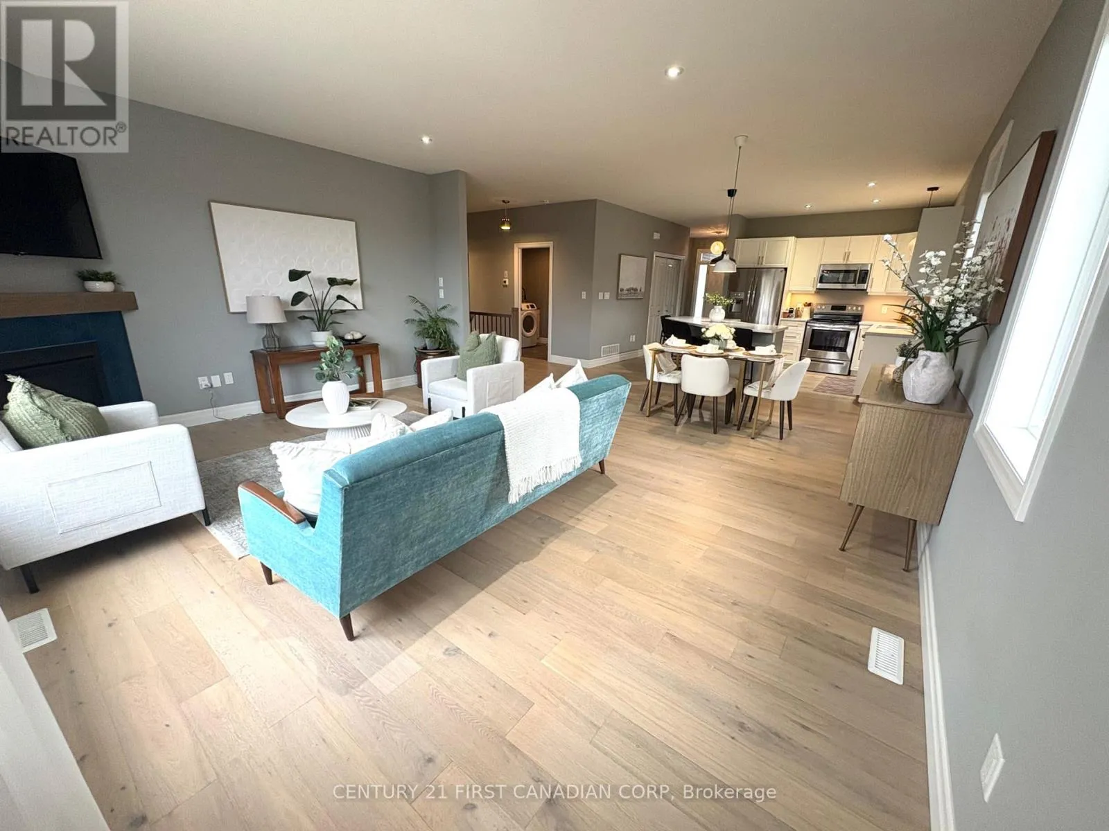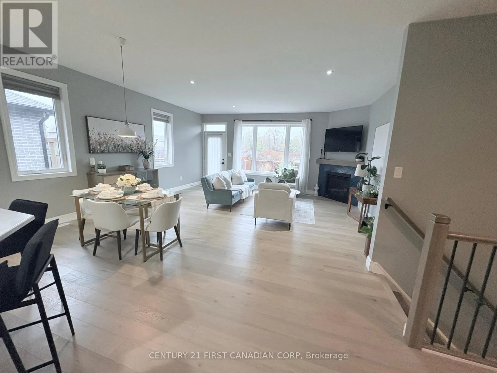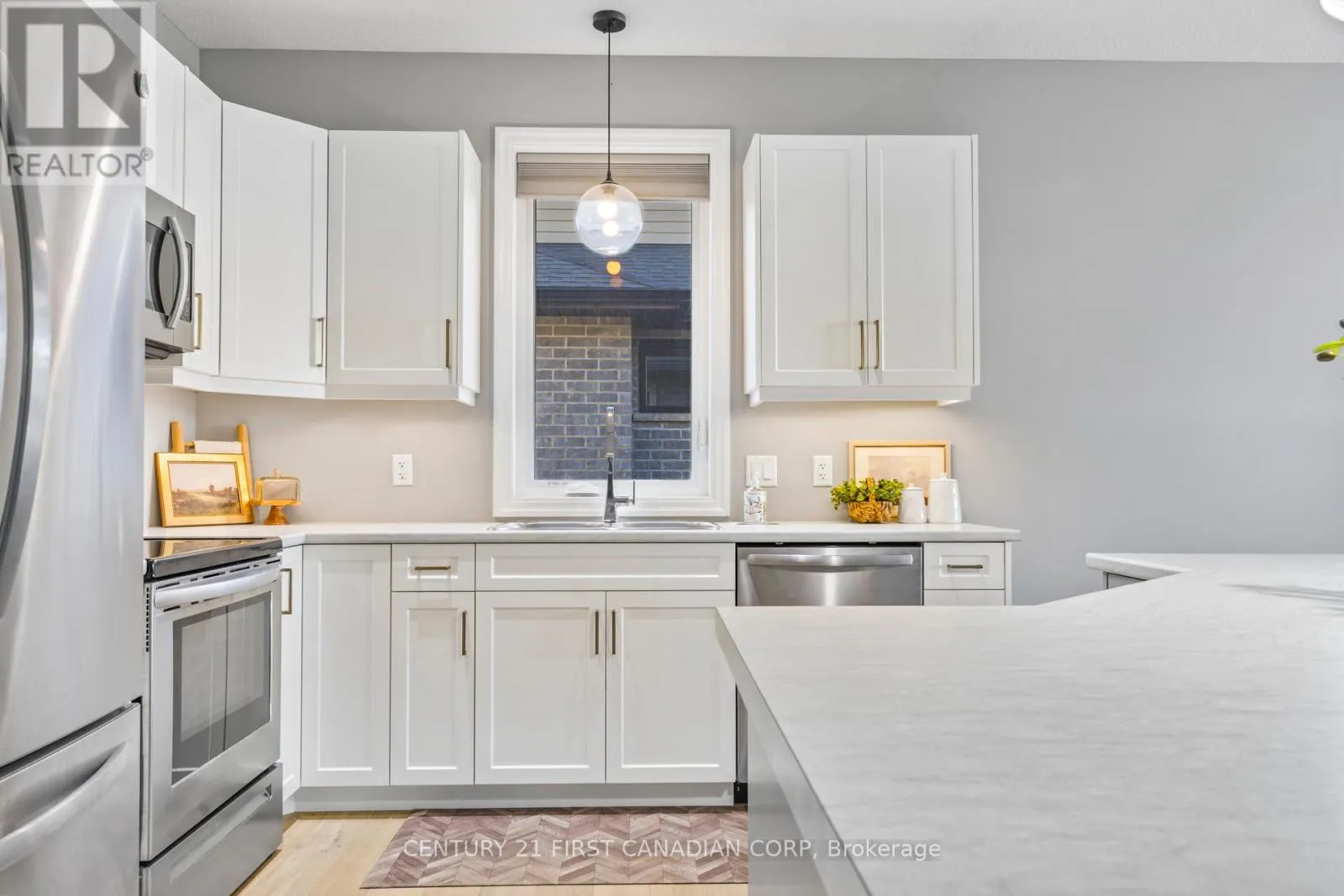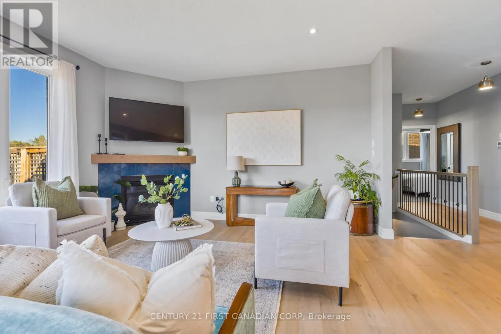Cross Streets: Spencer Ave. ** Directions: Saintsbury Line to Spencer Ave and left onto Stuart Avenue. Welcome to this stunning bungalow tucked away on a quiet, family-friendly street in the sought-after Olde Clover Subdivision in Lucan, directly across from the park, offering beautiful views and an unbeatable location. Step inside and immediately feel the warmth of natural light pouring in from all directions, highlighting the inviting open-concept layout. The heart of the home is the stylish kitchen, complete with stainless steel appliances, ample cabinetry, and a perfect flow into the bright dining and living space, ideal for entertaining or cozy nights in front of the gas fireplace. A patio door off the living area leads to a private backyard oasis featuring a spacious deck, perfect for morning coffees, weekend BBQs, or simply relaxing in peace. The luxury primary bedroom is a true retreat, featuring a 4-piece ensuite and a generous walk-in closet. Two additional well-sized bedrooms and a convenient main floor laundry room complete the main level. The 21ft x 20ft two-car garage provides ample space for vehicles and storage. Downstairs, the unfinished basement offers endless possibilities with a rough-in for a bathroom already in place and ready for your personal touch to transform it into the space of your dreams. This exceptional home combines comfort, function, and style in one of Lucan's most desirable neighbourhood's. Don't miss your chance to make it yours! (id:27476)