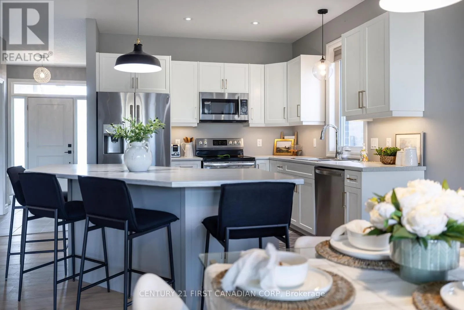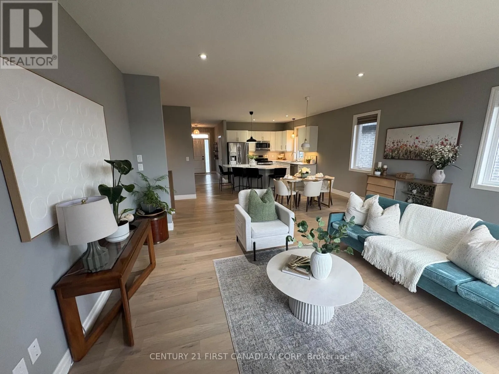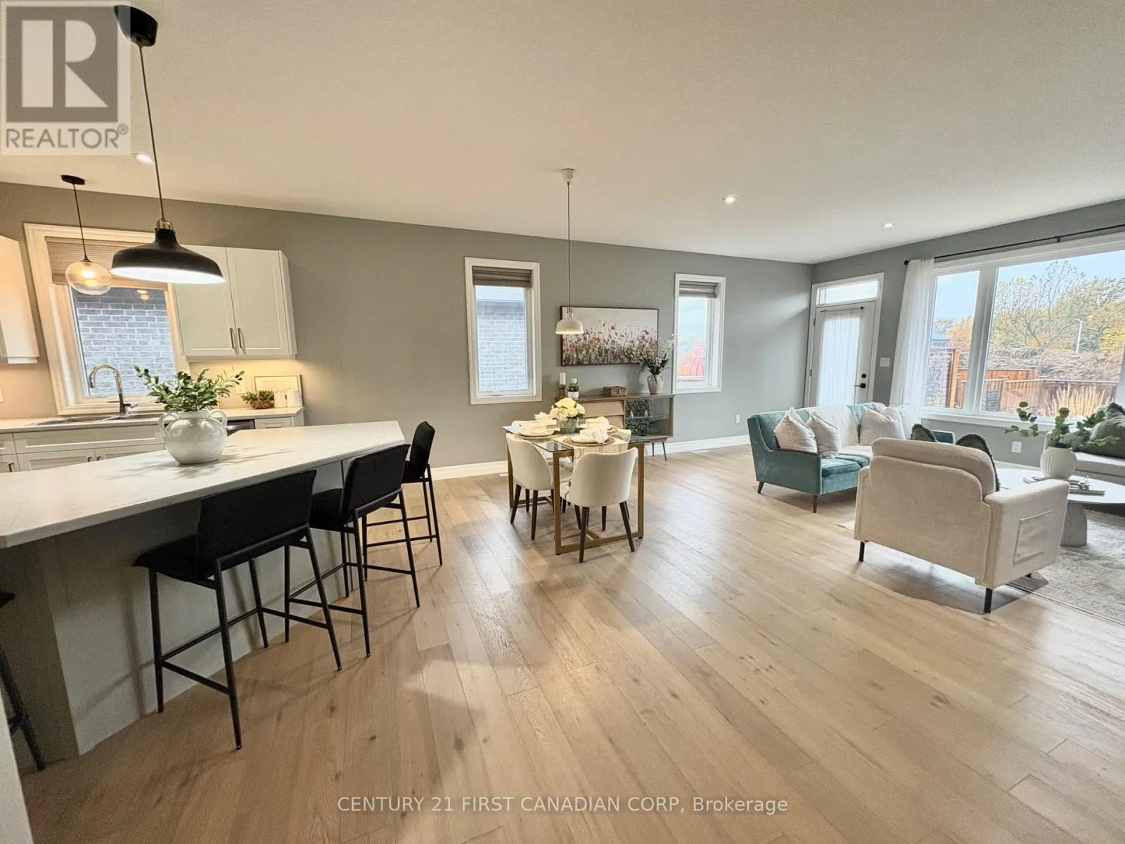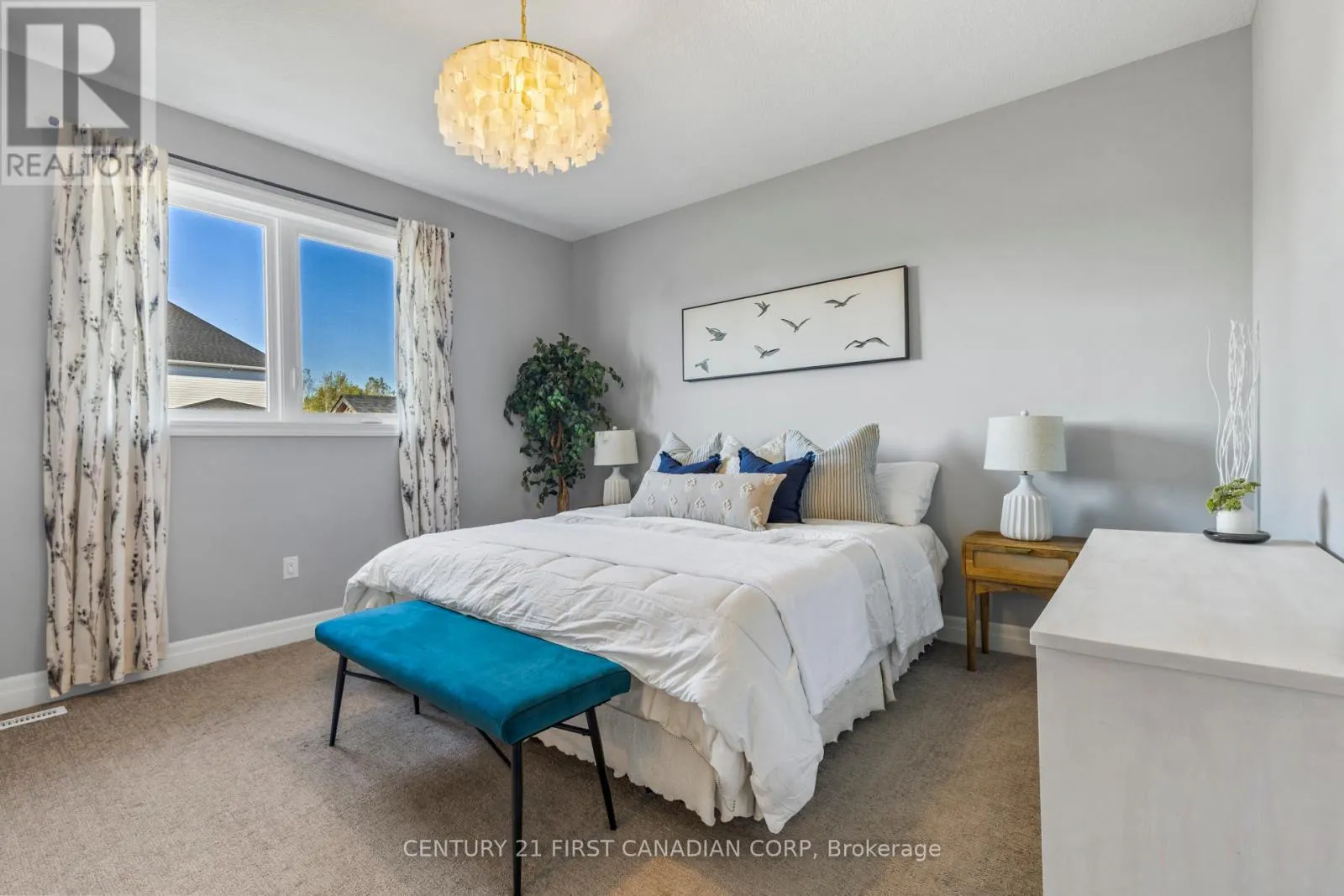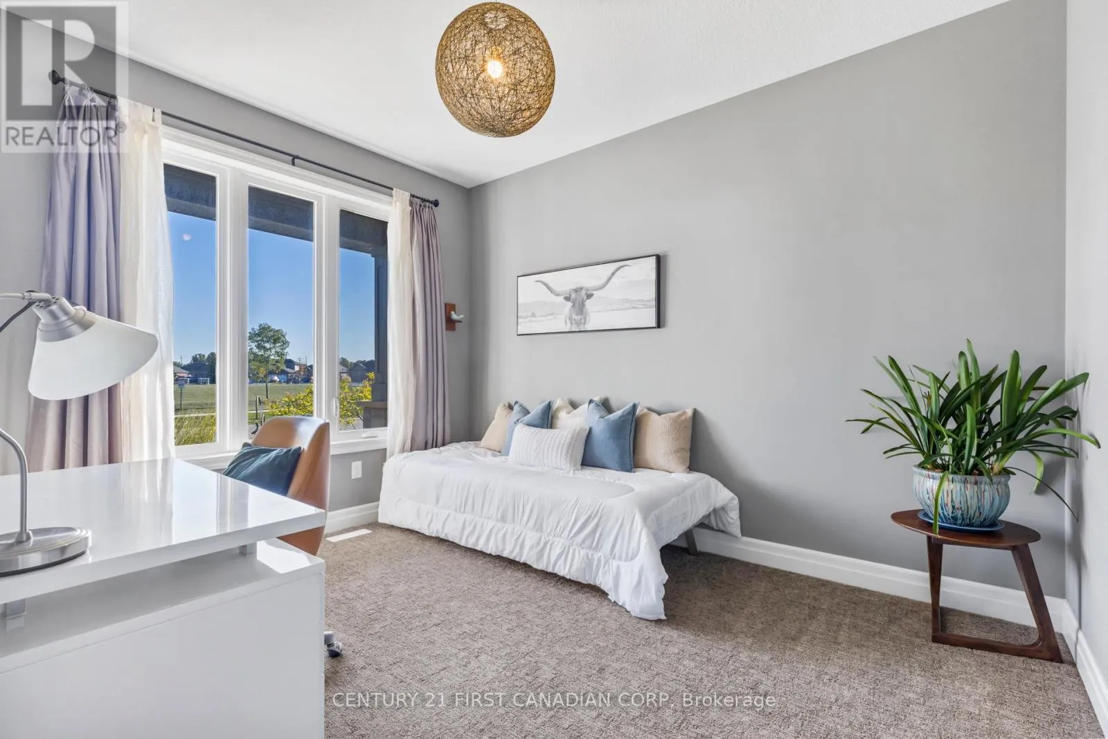 Cross Streets: Spencer Ave. ** Directions: Saintsbury Line to Spencer Ave and left onto Stuart Avenue. Welcome to this stunning bungalow tucked away on a quiet, family-friendly street in the sought-after Olde Clover Subdivision in Lucan, directly across from the park, offering beautiful views and an unbeatable location. Step inside and immediately feel the warmth of natural light pouring in from all directions, highlighting the inviting open-concept layout. The heart of the home is the stylish kitchen, complete with stainless steel appliances, ample cabinetry, and a perfect flow into the bright dining and living space, ideal for entertaining or cozy nights in front of the gas fireplace. A patio door off the living area leads to a private backyard oasis featuring a spacious deck, perfect for morning coffees, weekend BBQs, or simply relaxing in peace. The luxury primary bedroom is a true retreat, featuring a 4-piece ensuite and a generous walk-in closet. Two additional well-sized bedrooms and a convenient main floor laundry room complete the main level. The 21ft x 20ft two-car garage provides ample space for vehicles and storage. Downstairs, the unfinished basement offers endless possibilities with a rough-in for a bathroom already in place and ready for your personal touch to transform it into the space of your dreams. This exceptional home combines comfort, function, and style in one of Lucan's most desirable neighbourhood's. Don't miss your chance to make it yours! (id:27476)