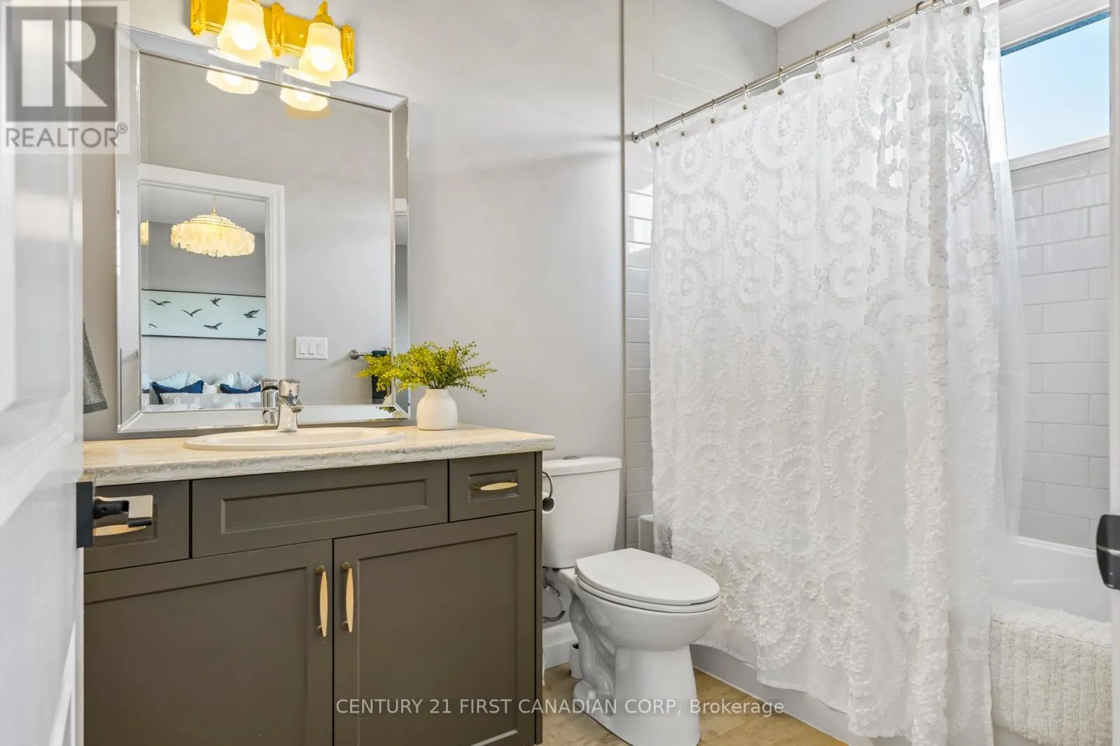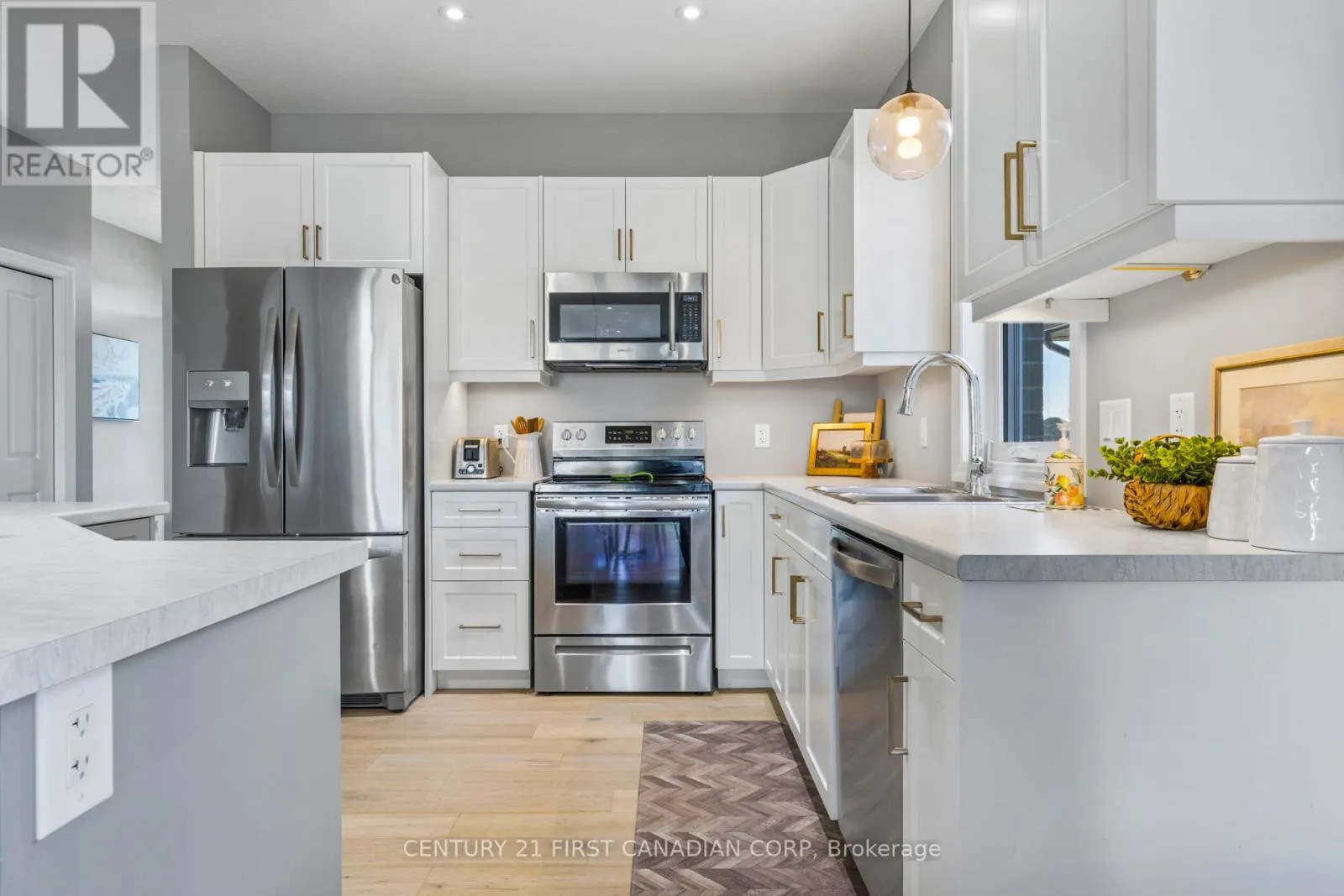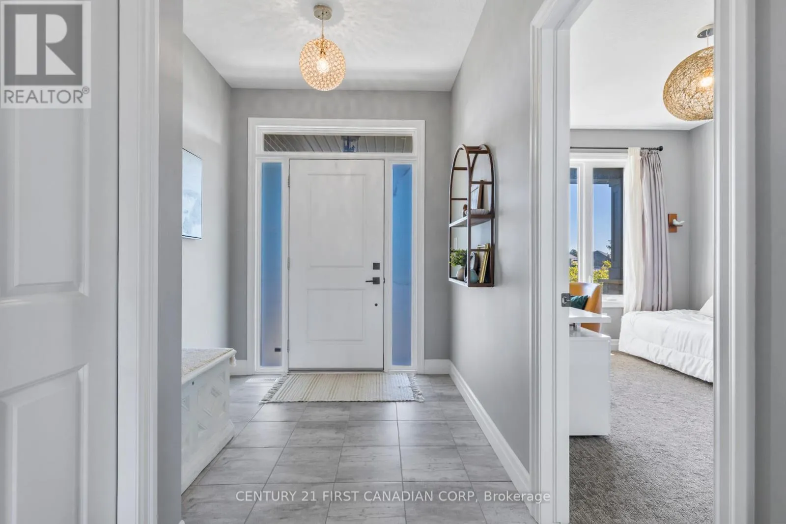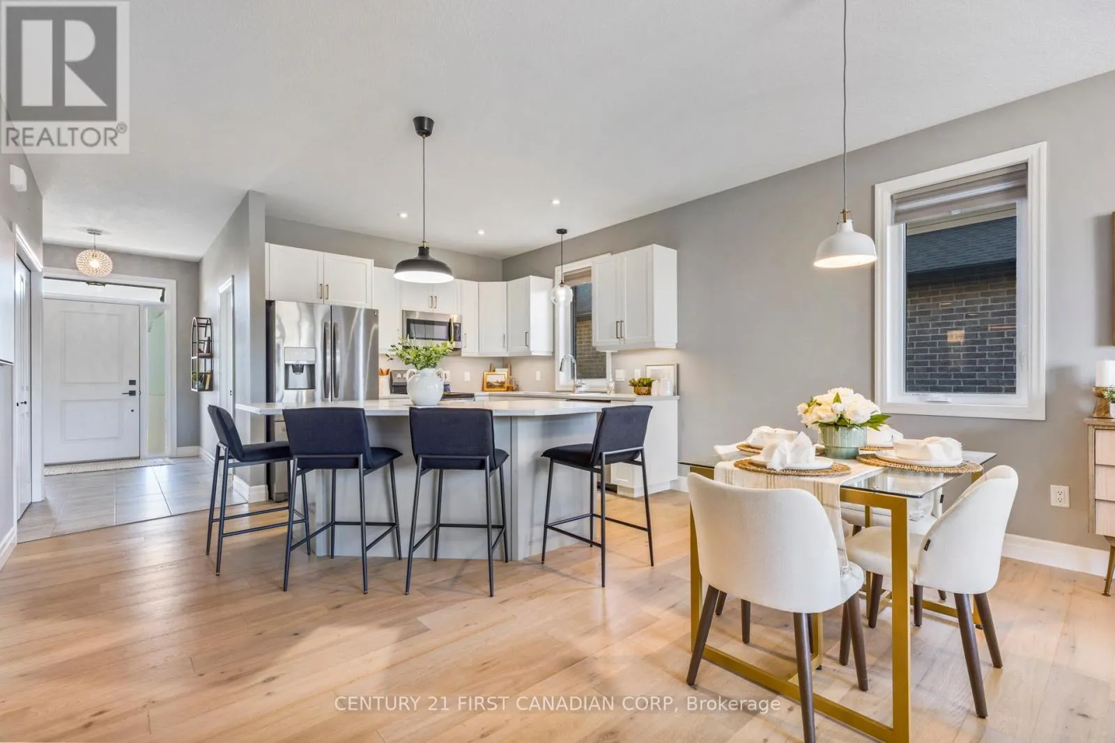 Cross Streets: Spencer Ave. ** Directions: Saintsbury Line to Spencer Ave and left onto Stuart Avenue. Welcome to this stunning bungalow tucked away on a quiet, family-friendly street in the sought-after Olde Clover Subdivision in Lucan, directly across from the park, offering beautiful views and an unbeatable location. Step inside and immediately feel the warmth of natural light pouring in from all directions, highlighting the inviting open-concept layout. The heart of the home is the stylish kitchen, complete with stainless steel appliances, ample cabinetry, and a perfect flow into the bright dining and living space, ideal for entertaining or cozy nights in front of the gas fireplace. A patio door off the living area leads to a private backyard oasis featuring a spacious deck, perfect for morning coffees, weekend BBQs, or simply relaxing in peace. The luxury primary bedroom is a true retreat, featuring a 4-piece ensuite and a generous walk-in closet. Two additional well-sized bedrooms and a convenient main floor laundry room complete the main level. The 21ft x 20ft two-car garage provides ample space for vehicles and storage. Downstairs, the unfinished basement offers endless possibilities with a rough-in for a bathroom already in place and ready for your personal touch to transform it into the space of your dreams. This exceptional home combines comfort, function, and style in one of Lucan's most desirable neighbourhood's. Don't miss your chance to make it yours! (id:27476)