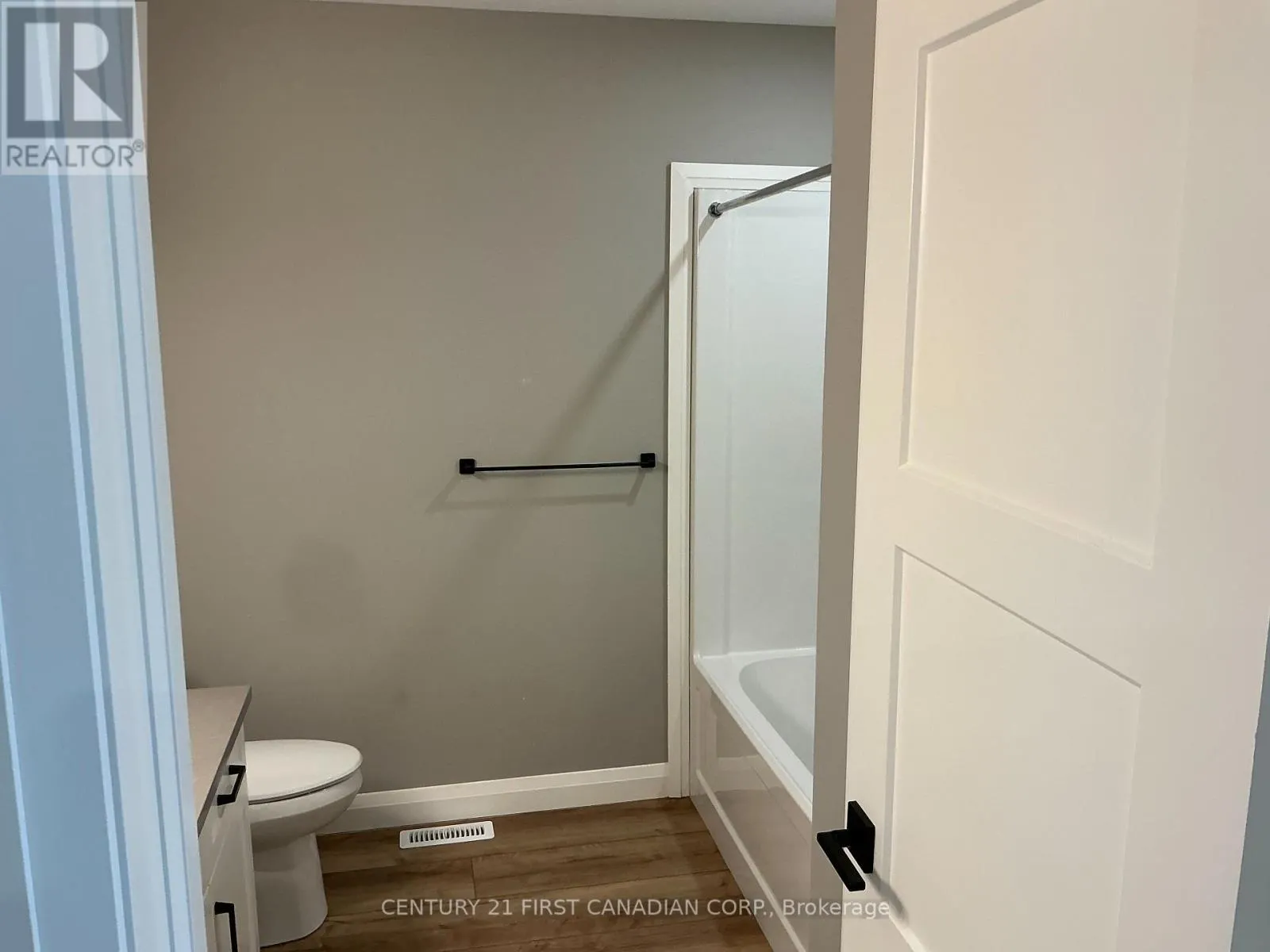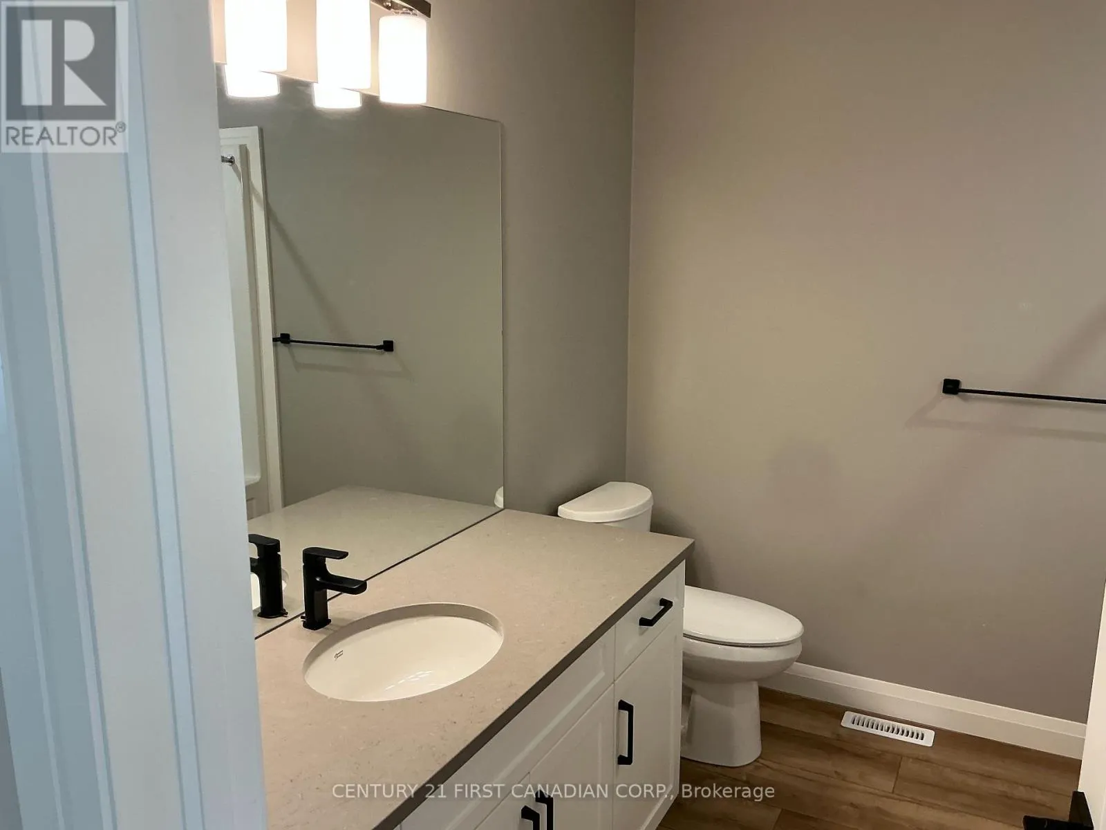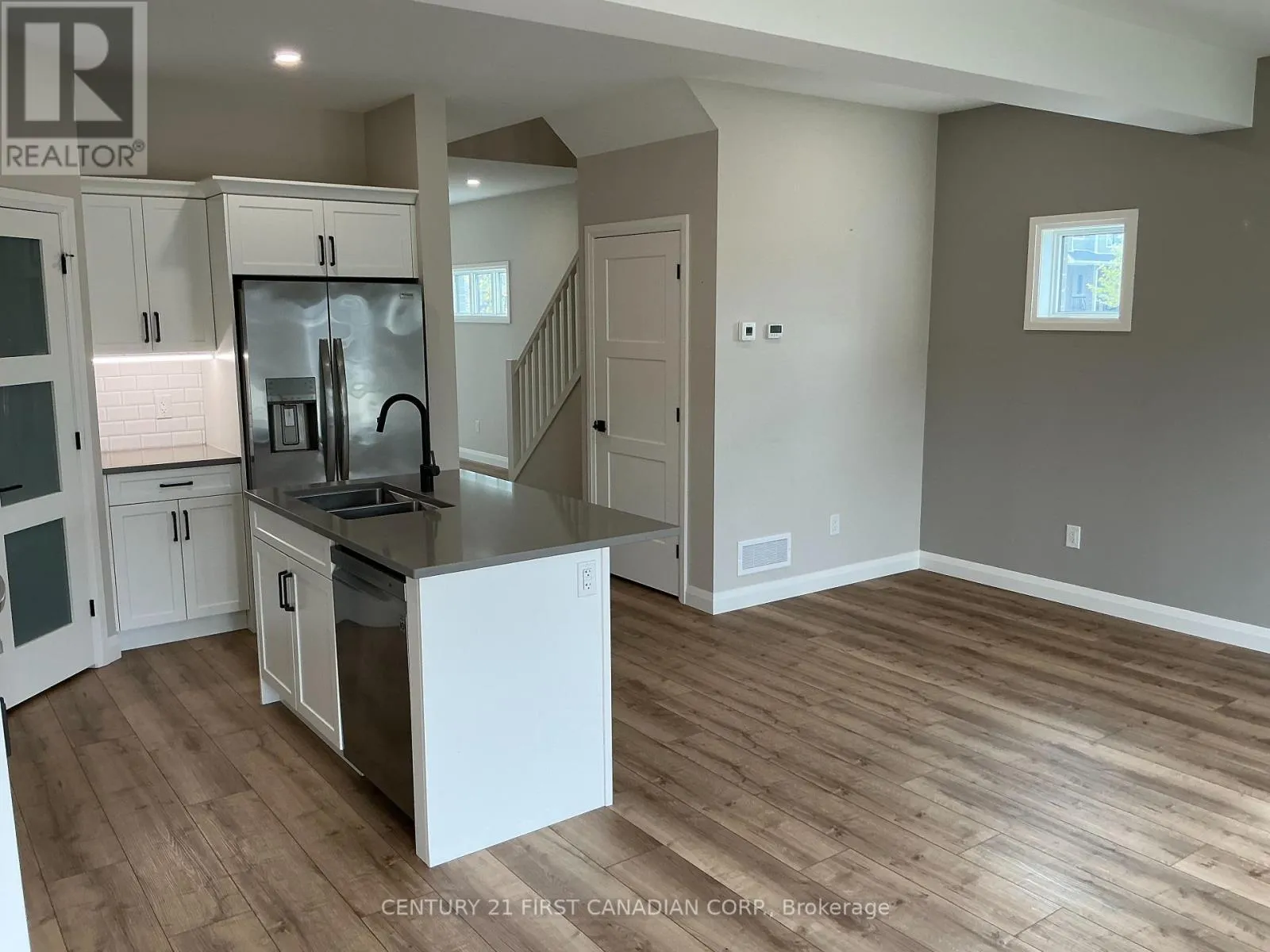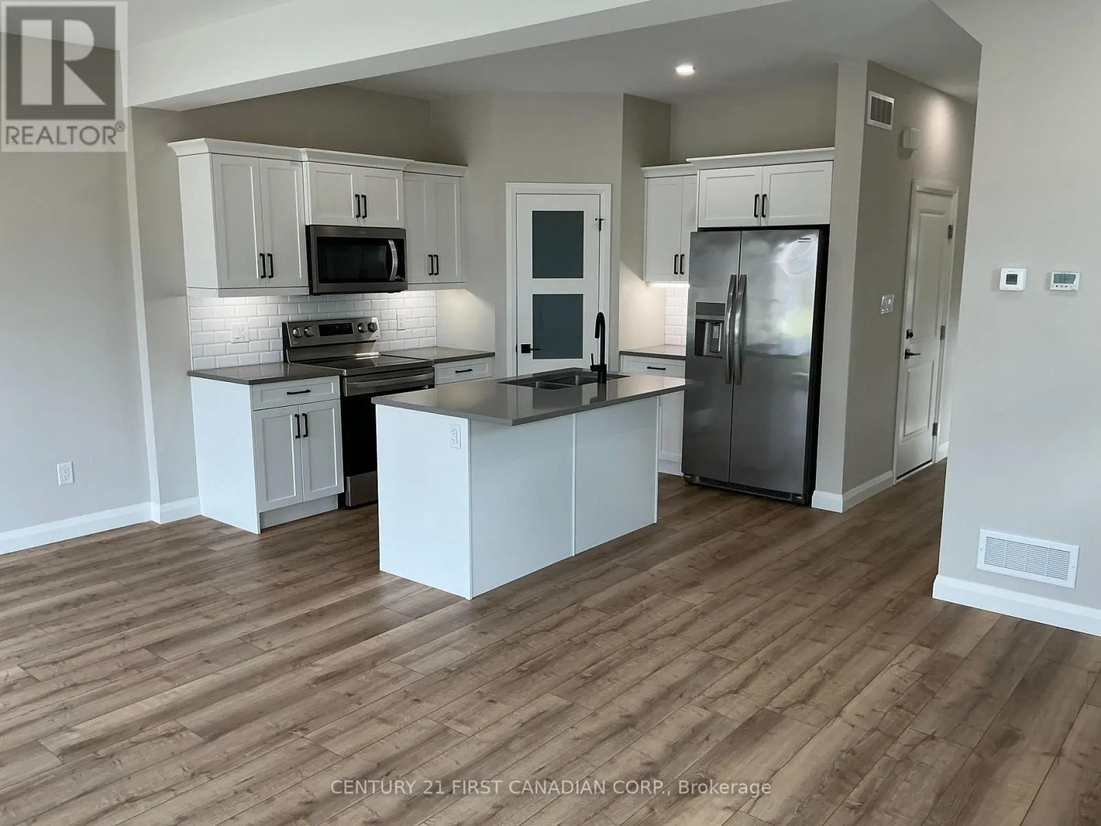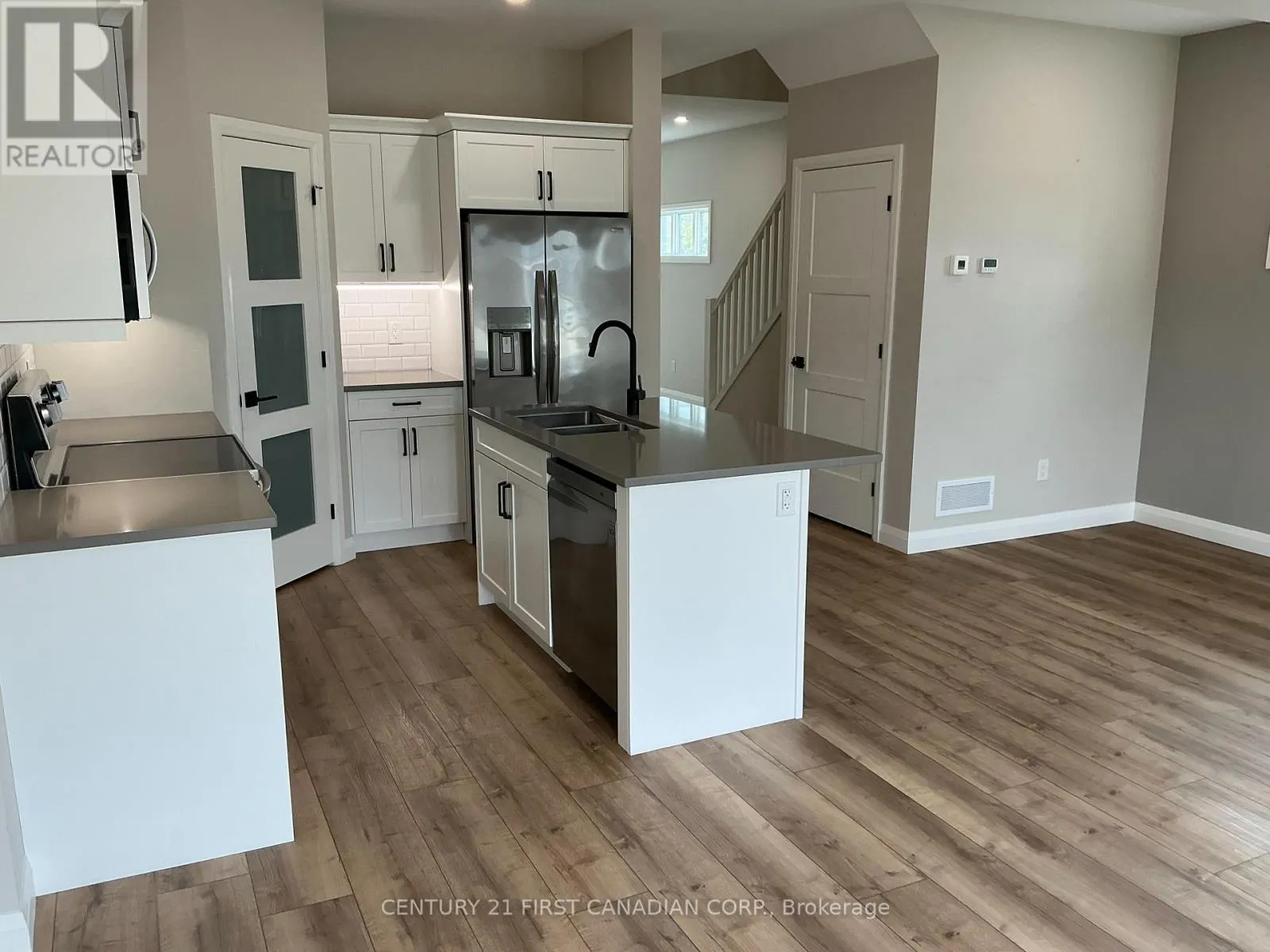 Cross Streets: Miller Drive. ** Directions: From London take highway 4 north, turn right onto Saintsbury Line, turn left onto Gilmour drive, turn left onto Miller Drive, turn right onto Nicholson St. 17 Nicholson is on the left. Welcome to 26-17 Nicholson Street, located in the sought-after Ridge Landing Subdivision in Lucan, Ontario. This home offers 1,560 sq. ft. of thoughtfully designed living space situated in a prime location that boasts a wealth of features that make it the perfect place to call yours. This 3 bedroom, 3 bathroom freehold condo offers plenty of space for a growing family, and features luxury vinyl plank flooring throughout. The open concept main floor includes a living room, dining area, powder room and kitchen, complete with quartz countertops, subway tile backsplash, under cabinet lighting and stainless steel appliances. Downstairs you will find a finished basement that has plenty of space for a play room, extra recreation room or storage. The second level features the primary suite that is complete with a walk-in closet and 3-piece ensuite bathroom, along with two additional spacious bedrooms and another 4-piece bathroom. With a sought after location that is close to schools, parks and only a 15 minute drive from north London, don't miss out on your chance to make this units yours! Enjoy low-maintenance living with a monthly condo fee that covers common area management, insurance, snow removal, lawn care, and street lighting. (id:27476)