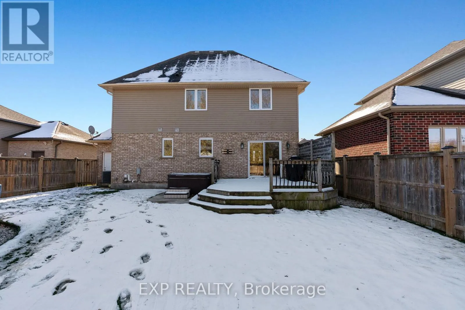 Cross Streets: JOHN STREET. ** Directions: FROM ELGINFIELD TURN LEFT ON SAINTSBURY (TIM HORTONS) RIGHT ON WATSON, RIGHT ON JOHN, LEFT ON JOSEPH, AND ITS THE SECOND PLACE ON THE RIGHT. Welcome to this beautiful Timothy custom-built home located in the highly sought-after Saintsbury Estates in Lucan. Built when lots were larger, this property sits on an oversized lot crafted by a high-end builder and designed with young families in mind. Inside, the spacious open-concept main floor features tile flooring that flows through the foyer, dining area, and kitchen. The kitchen offers exceptional functionality with generous counter space, a pantry, and plenty of extra cabinetry. Bright natural light fills the dining room, complete with patio doors leading to the backyard deck. The main floor continues with a warm and inviting living room showcasing a large front window, a nicely sized laundry room with recent shelving upgrades, a convenient 2-piece bathroom, and access to the attached two-car garage. Upstairs, you'll find two comfortable bedrooms and a large cheater bathroom leading to the impressive primary bedroom, which includes a walk-in closet. The basement is mostly finished, offering a cozy recreation room with brand-new carpet and a utility/storage area with ample space. Outside, the fully fenced, oversized backyard is perfect for family fun and entertaining. Enjoy the deck, relax in the hot tub, or cool off in the 13x25 oval above-ground pool featuring a stylish wood exterior. A mounted TV near the deck lets you catch the game from the pool or hot tub-your own personal outdoor oasis. This home has wonderful curb appeal with a double-wide concrete driveway and a beautifully landscaped front yard. You'll love living in Lucan, just 20 minutes from London and home to a new grocery store, restaurants, shopping, and outstanding community amenities, including soccer fields, baseball diamonds, a community centre, and a hockey arena. Book your showing today before this exceptional home in Lucan's most desirable subdivision is gone! (id:27476)