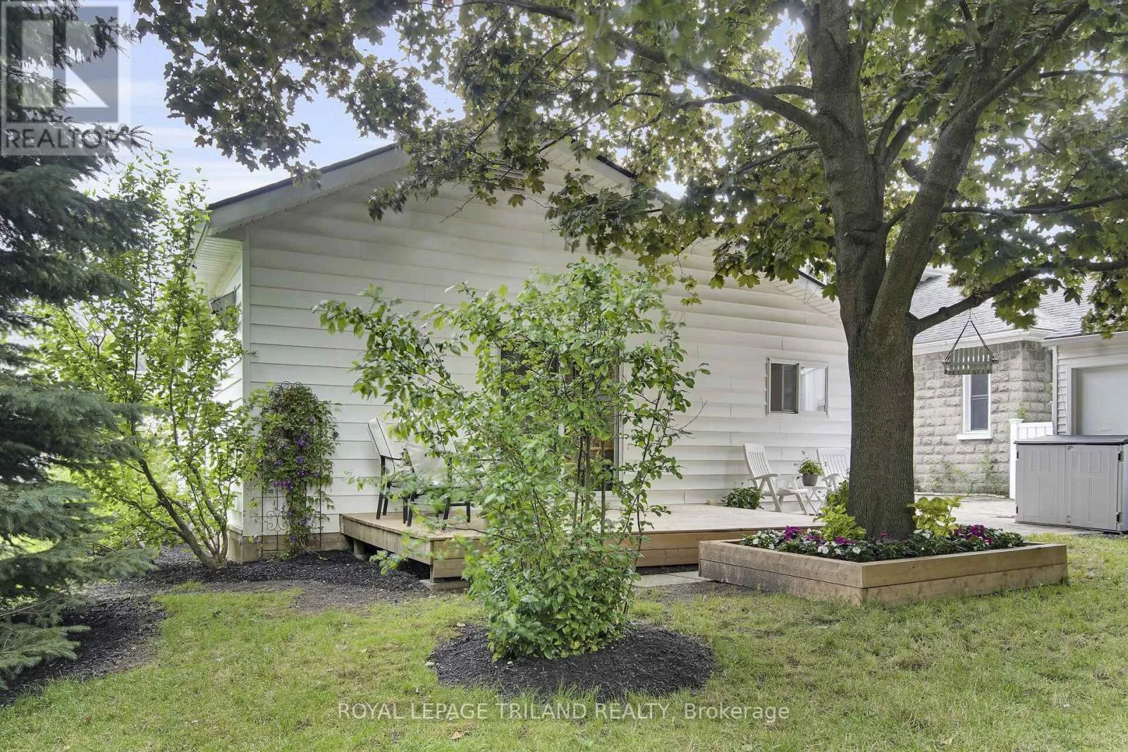 Cross Streets: Main St & Water St. ** Directions: west on Main St, South on Water St, second house from corner on right side. Perfect Starter Home in the Heart of Lucan! This charming, updated century bungalow is an ideal opportunity for first-time buyers looking to break into the market with style and comfort. This one-storey home is nestled beside a peaceful creek and surrounded by a beautifully landscaped yard, mature trees, and a private setting that is perfect for relaxing or entertaining. The eye-catching white exterior, vibrant gardens, and spacious driveway lead to a detached garage, and yard complete with a new deck, patio, and storage shed. Inside, you'll find all the modern upgrades you've been looking for: new flooring, kitchen & bathroom countertops, toilet, rain shower head, refreshed kitchen cabinets, updated lighting and fixtures, basement floor, and a bright, neutral paint palette that's ready for your personal touch. Enjoy a functional layout that includes a mudroom, main floor laundry, 2 bedrooms, a spacious eat-in kitchen, and both a living room and a cozy family room with a natural gas fireplace. Formerly a 3 bedroom home, the space offers flexibility to create your ideal floor plan. The open-concept design makes the space feel large and inviting, and one-floor living makes this home desirable for young families and retirees alike. With a maintenance-free metal roof, composite deck, and countless updates, this home is truly move-in ready. Located just off Main Street in the growing town of Lucan, you'll have easy access to new amenities, schools, and shops, all while enjoying the charm of small-town living. Don't miss this opportunity to start your homeownership journey in a welcoming community! (id:27476)