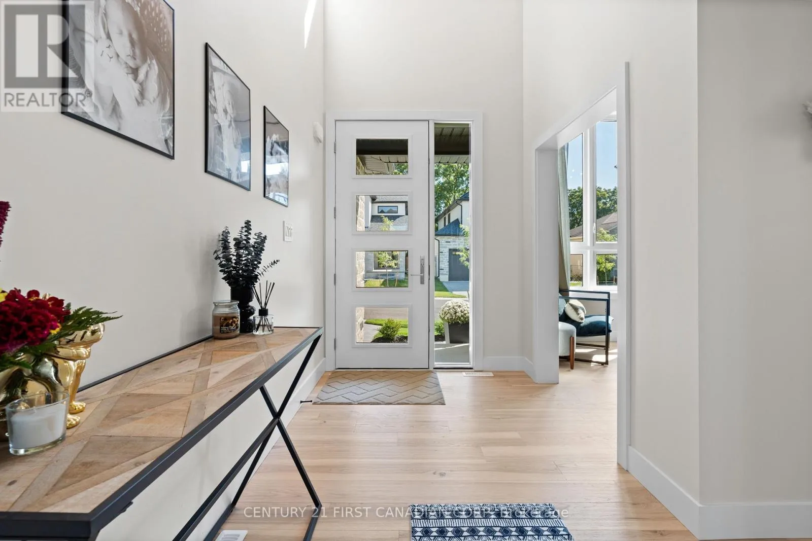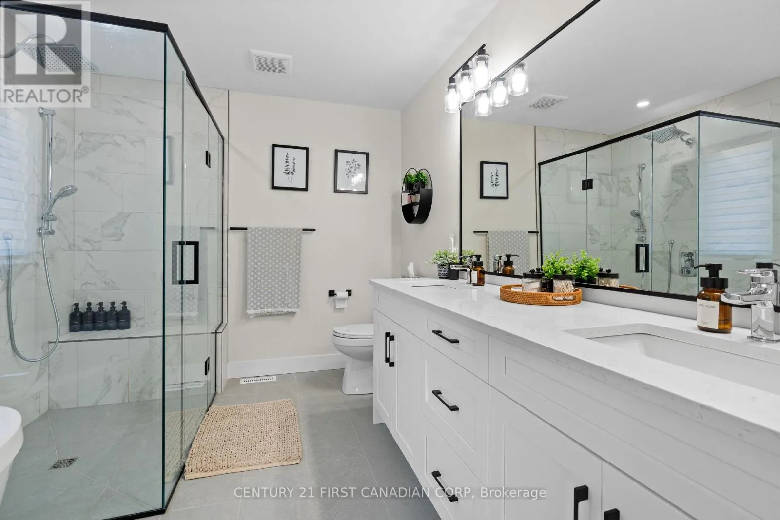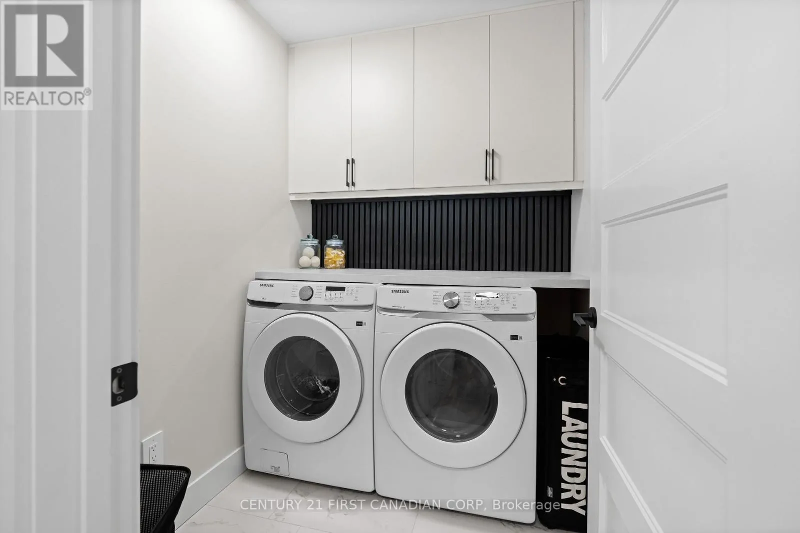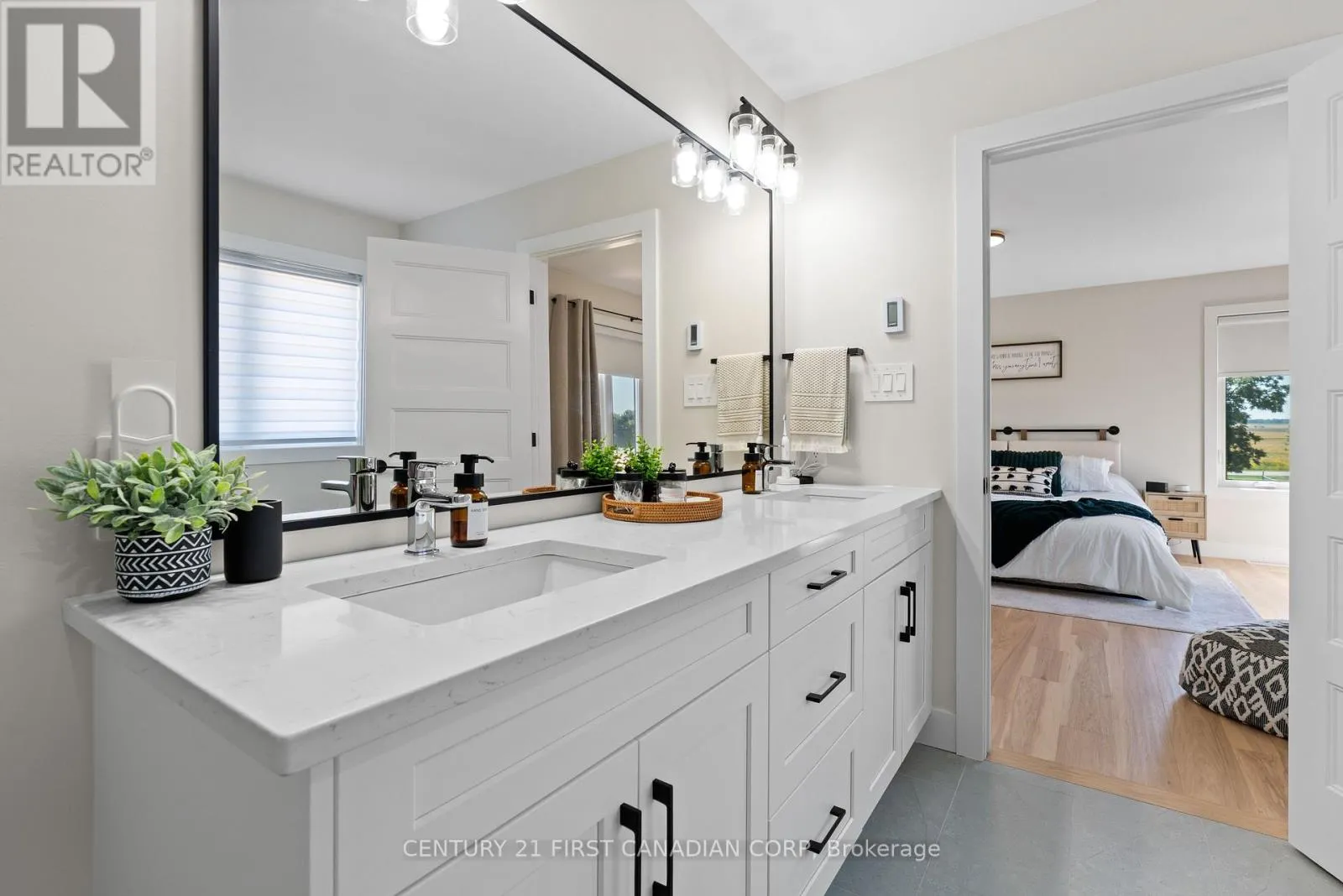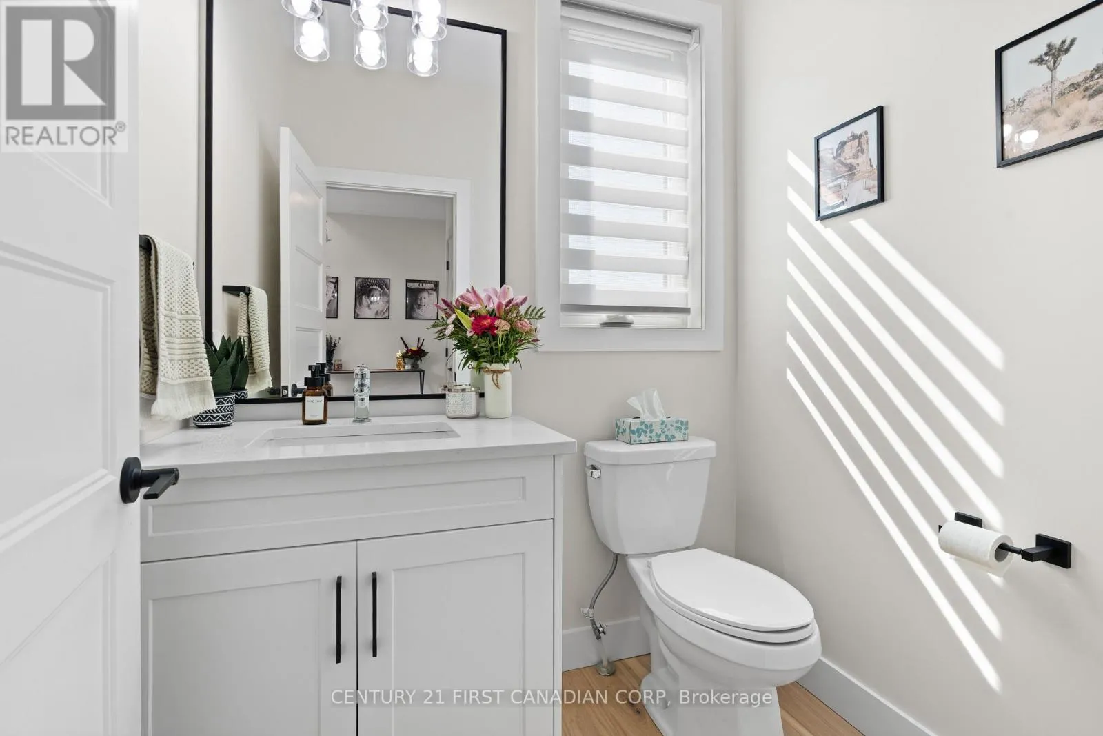 Cross Streets: Granton Line. ** Directions: From Granton Line turn West on Fallon Drive, then turn North into the Condo Complex. Modern living with small-town charm in this detached two-storey home in Granton! Built in 2024, this vacant land condo is perfectly set on a corner lot backing onto open farm fields. With 4 bedrooms and 2.5 bathrooms, this home features a two-car garage and a bright, open-concept design. The main floor is highlighted by a dedicated office, a great room with fireplace, and a dining area that flows into the sleek kitchen with large centre island and walk-in pantry. A two-piece powder room and a mudroom with garage access add convenience. Upstairs, are find four spacious bedrooms, including a primary retreat with walk-in closet and spa-like five-piece en-suite, plus a four-piece bath and a dedicated laundry room. Outside, a deck runs nearly the full width of the home, overlooking a private yard and wide-open views of the fields behind. Granton is a welcoming community just minutes from London and St. Marys, where you can enjoy peaceful living, friendly neighbours, and the charm of small-town life with easy access to city amenities. (id:27476)