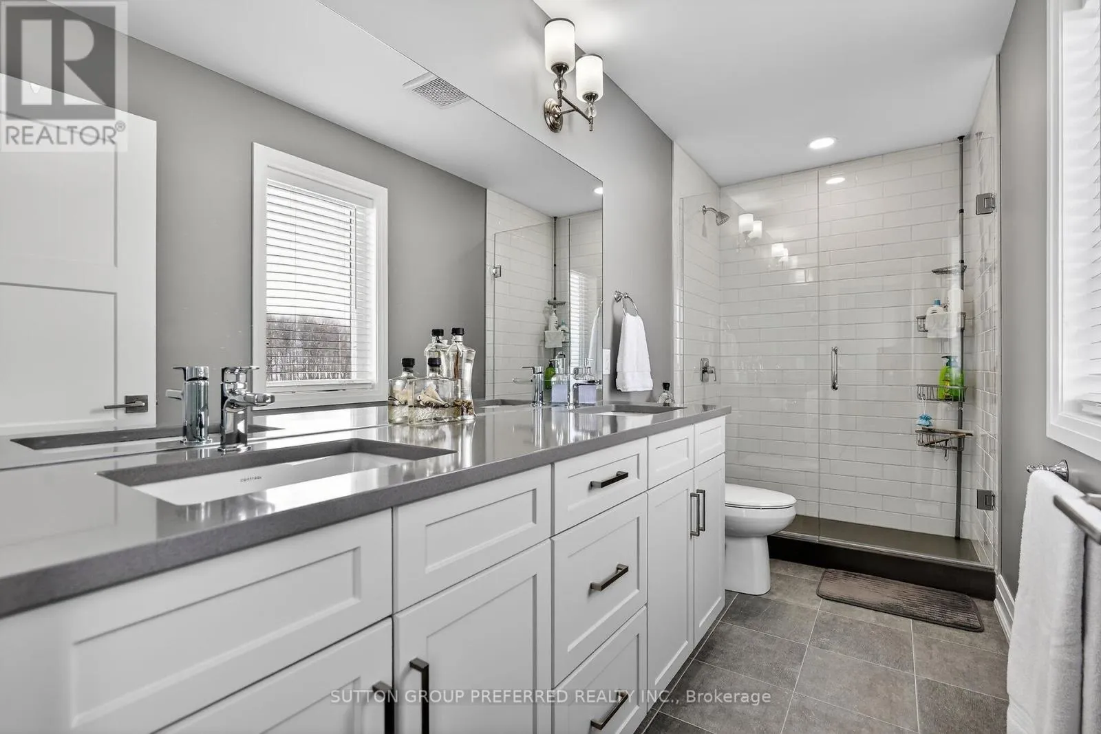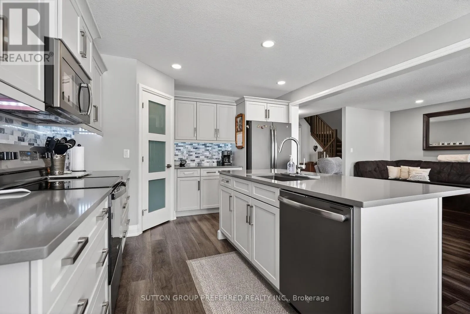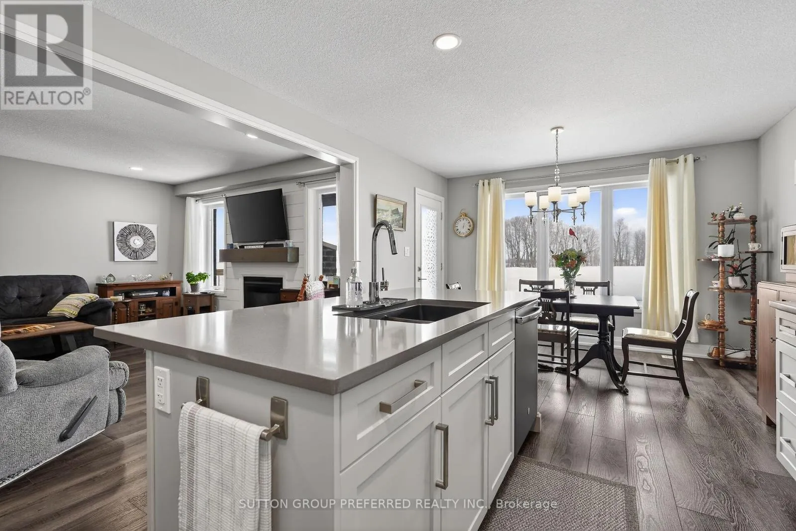 Cross Streets: Gilmour Drive & Beech St. ** Directions: Off Hwy 4, turn North onto Saintsbury Line, then West onto Gilmour Drive. Fall in love with this stunning 3 bedroom, 2.5 bath two storey gem in the sought-after Ridge Crossing subdivision! This beautifully appointed Healey Model sits on a premium lot with peaceful rural views - your own slice of countryside tranquility! Step into the inviting open-concept floor plan where the bright great room welcomes you with a cozy gas fireplace. The gorgeous kitchen features sleek quartz counters, stainless steel appliances, a handy island, corner pantry, and ample cupboards. This home has been lightly lived in and is perfect for family gatherings. Enjoy main floor laundry convenience and a 2 piece powder room. The covered outdoor area is great for year-round BBQs with rural views! Upstairs 3 generously sized bedrooms await! The spacious primary suite is your private sanctuary with a huge walk-in closet and spa-inspired ensuite featuring dual sinks and an upgraded shower. The two additional bedrooms share a full 4 piece bathroom. The unfinished basement has tons of potential. Park in your double car garage with inside entry, then explore Ridge Crossing's walking trails around the pond and soccer fields. Wilberforce Public School is a short walk away. Embrace small-town charm with Lucan's community centre, arena, pool, splash pad park, LCBO, grocery store and more. You're only 20 minutes from North London and just 30 minutes from Lake Huron's beautiful beaches and Pinery Provincial Park! This is more than a house - it's your family's next chapter! Don't miss out! (There's a backup pressure pump on sump pump - Matterport Floor Plan sqft = 1,736) (id:27476)