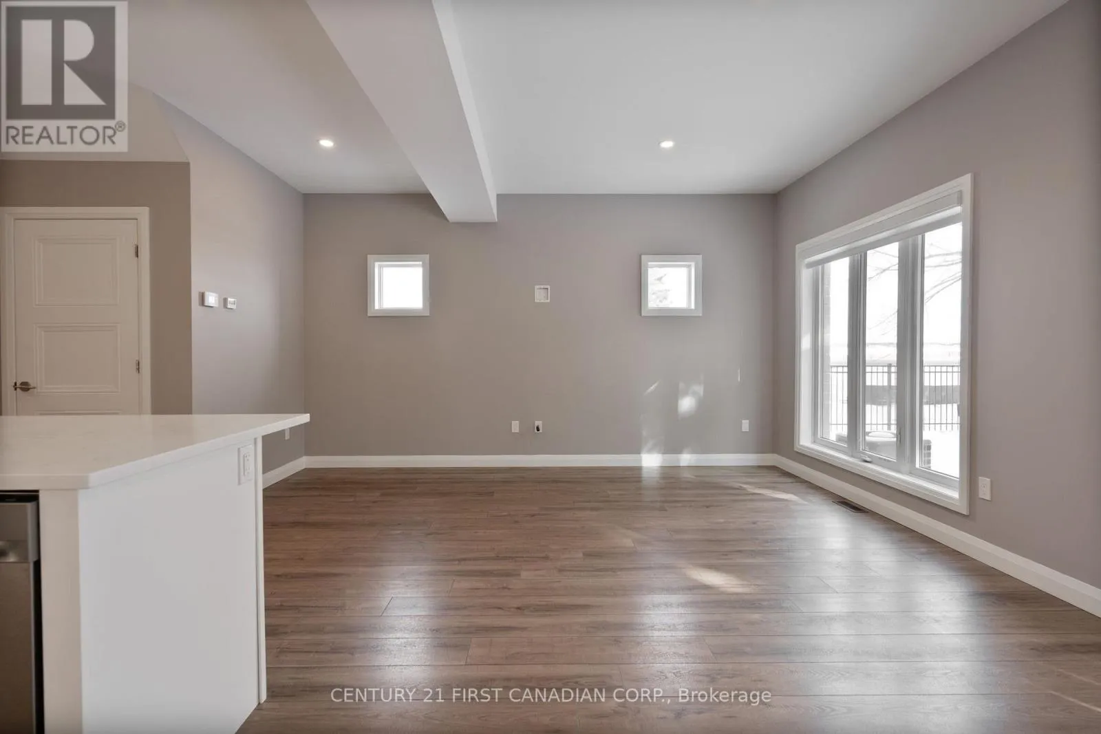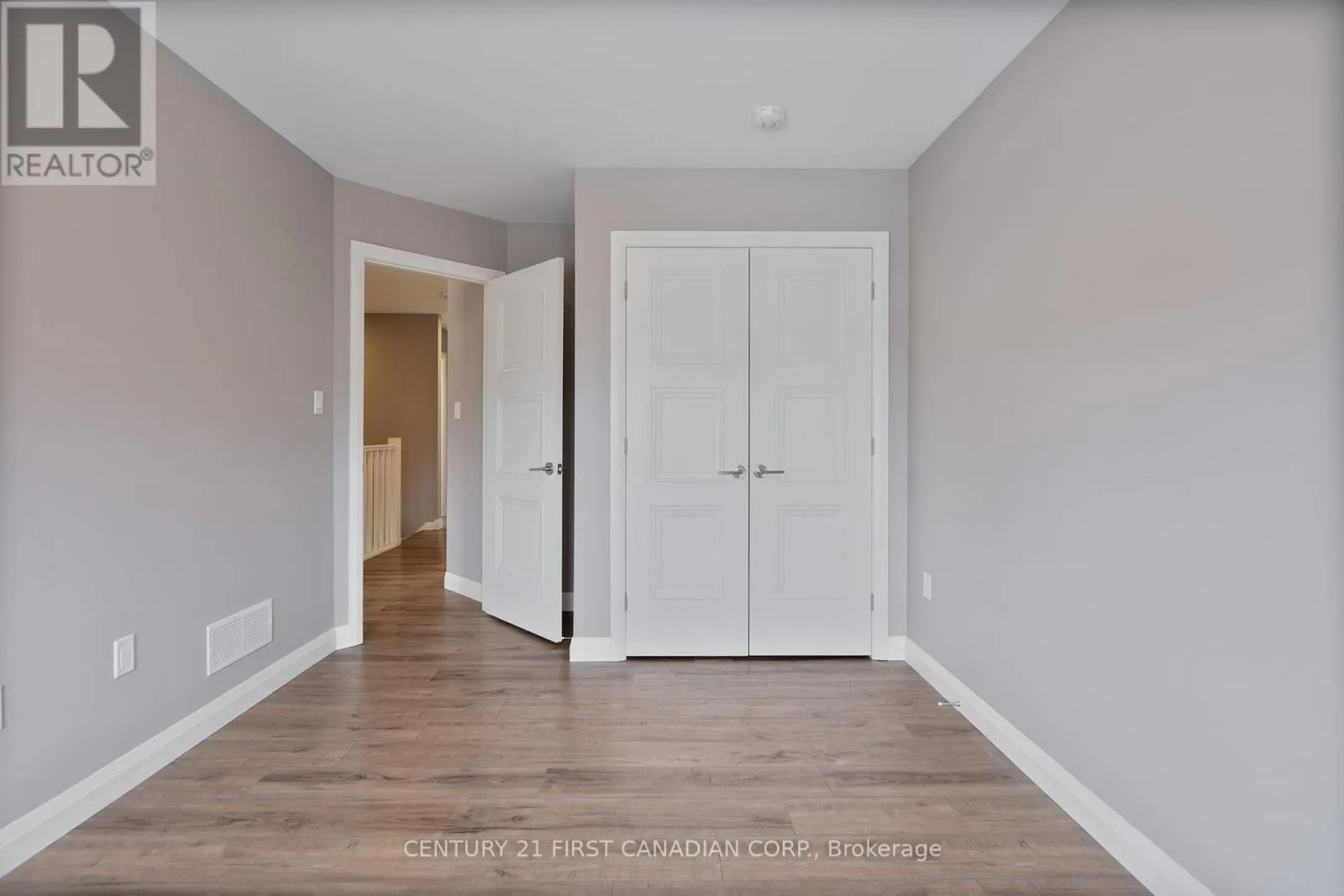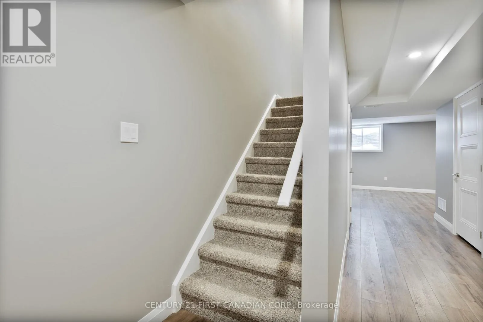 Cross Streets: Gilmour Dr. ** Directions: Travelling north on Saintsbury Line, turn left onto Gilmour Dr. Turn left onto Miller Dr. Take the second entrance on the left. Property is at the end of the street, on the right. Welcome to the Camden model, offering 1,570 sq. ft. of above-grade living space plus a fully finished basement, located in the growing and family-friendly community of Lucan. This freehold townhome features a bright, practical layout with three bedrooms, three bathrooms, and the added convenience of second-floor laundry. Freshly painted and completely carpet-free, the home showcases modern finishes and durable vinyl flooring throughout. The primary bedroom is thoughtfully designed with a walk-in closet and private ensuite, creating a comfortable retreat. Downstairs, the finished basement adds valuable living space-ideal for a rec room, home office, gym, or play area-something rarely found in comparable townhomes. Outside, enjoy a private backyard backing onto mature trees, offering both privacy and a peaceful setting. An extra-long driveway accommodates two vehicles, in addition to the attached garage. The location is a standout and within walking distance for families to Wilberforce Public School , while still close to parks, amenities, and everyday conveniences. With low maintenance fees of just $110.00, a functional layout, and a desirable setting, this home delivers exceptional value, comfort, and flexibility, an opportunity that doesn't come along often. (id:27476)