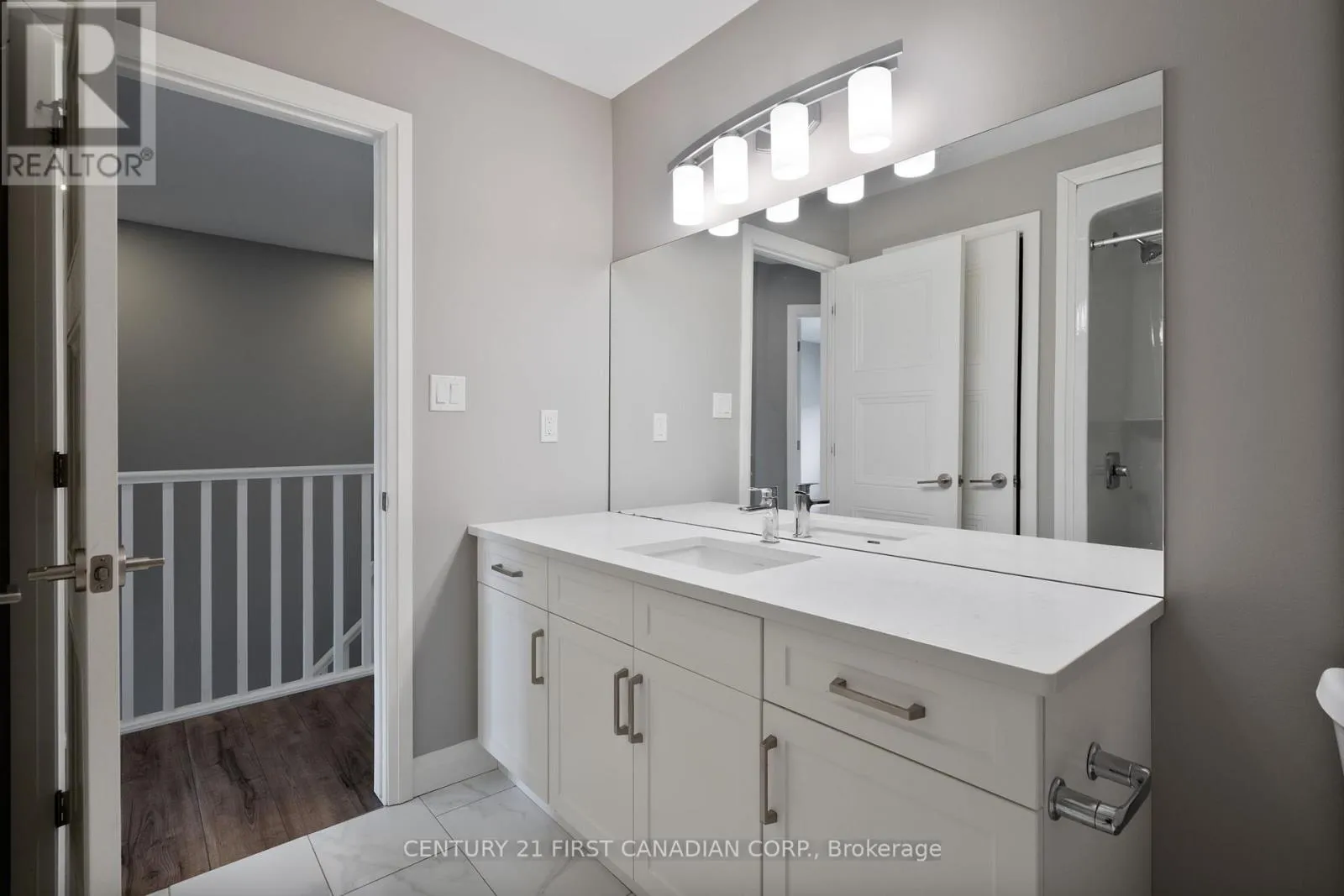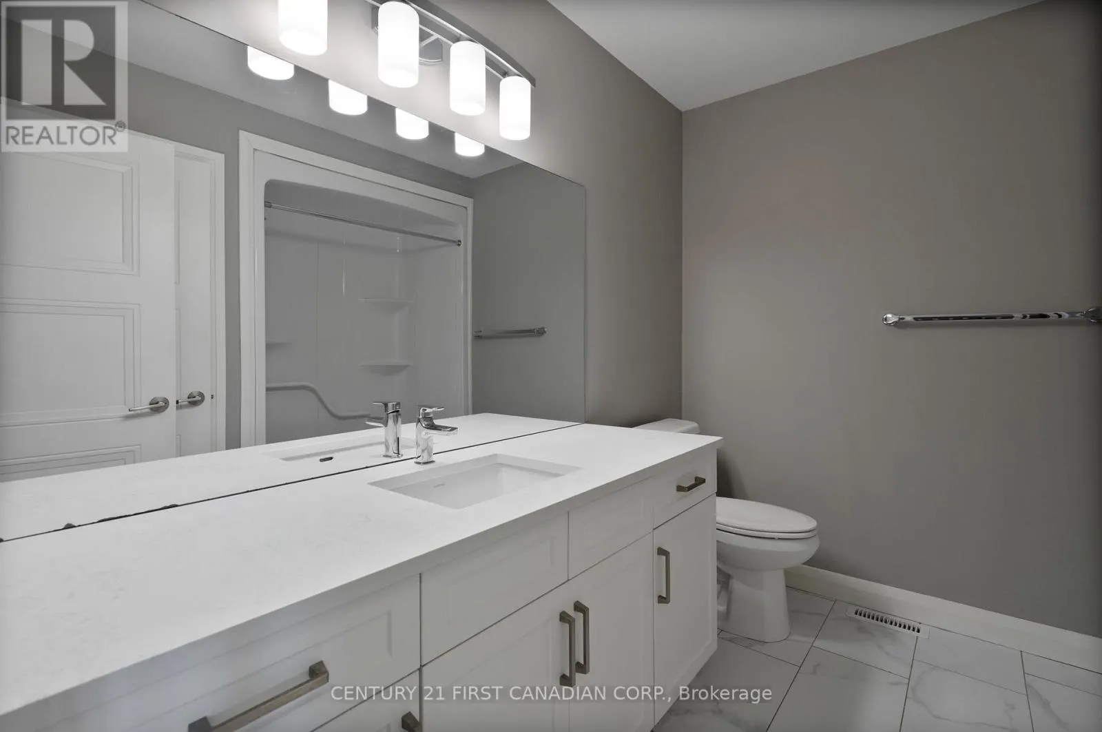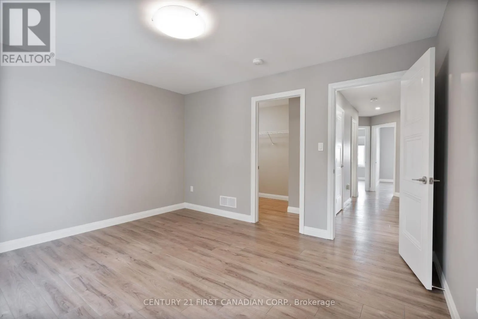 Cross Streets: Gilmour Dr. ** Directions: Travelling north on Saintsbury Line, turn left onto Gilmour Dr. Turn left onto Miller Dr. Take the second entrance on the left. Property is at the end of the street, on the right. Welcome to the Camden model, offering 1,570 sq. ft. of above-grade living space plus a fully finished basement, located in the growing and family-friendly community of Lucan. This freehold townhome features a bright, practical layout with three bedrooms, three bathrooms, and the added convenience of second-floor laundry. Freshly painted and completely carpet-free, the home showcases modern finishes and durable vinyl flooring throughout. The primary bedroom is thoughtfully designed with a walk-in closet and private ensuite, creating a comfortable retreat. Downstairs, the finished basement adds valuable living space-ideal for a rec room, home office, gym, or play area-something rarely found in comparable townhomes. Outside, enjoy a private backyard backing onto mature trees, offering both privacy and a peaceful setting. An extra-long driveway accommodates two vehicles, in addition to the attached garage. The location is a standout and within walking distance for families to Wilberforce Public School , while still close to parks, amenities, and everyday conveniences. With low maintenance fees of just $110.00, a functional layout, and a desirable setting, this home delivers exceptional value, comfort, and flexibility, an opportunity that doesn't come along often. (id:27476)