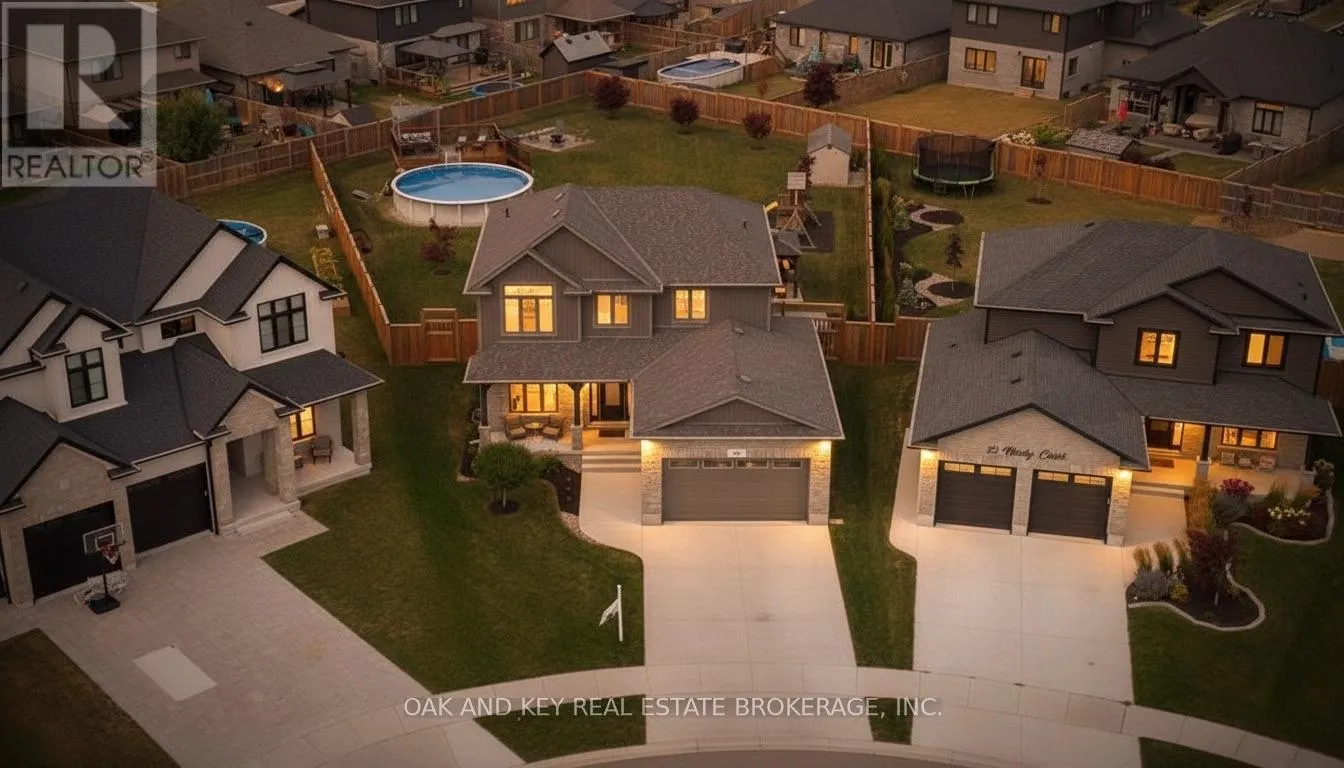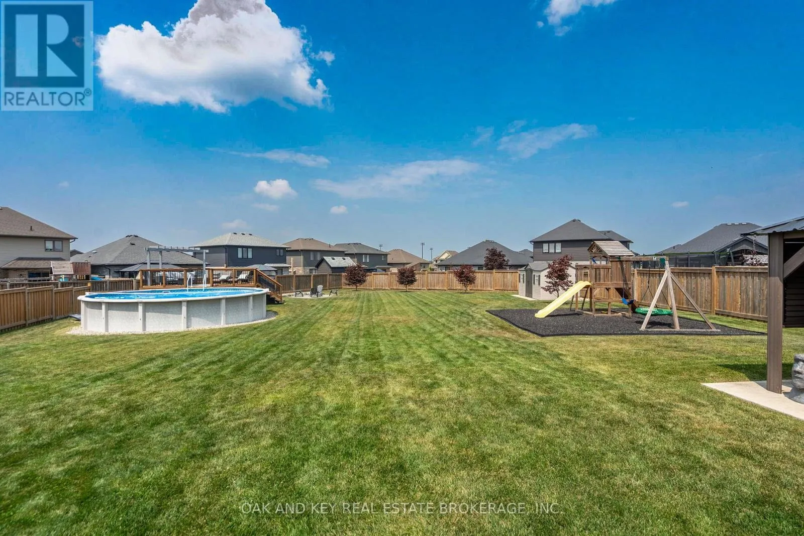 Cross Streets: Gilmour Drive & Hardy Court. ** Directions: Head northwest on Richmond St/ON-4 N. Turn right onto Saintsbury Line/County Rd 47. Turn left onto Gilmour Dr. Turn left onto Hardy Ct. Home will be on the Right hand side. One of the largest residential lots you'll find in Lucan, golden sunsets, and a backyard built for memories - Welcome to 25 Hardy Court. Set on a rare 0.375-acre lot on a quiet family-friendly Court, this beautifully maintained 4+1 bedroom home offers the kind of space and outdoor lifestyle that's becoming increasingly difficult to find. The fully fenced backyard feels more like a private retreat, featuring northwest-facing sunset views, a saltwater pool, covered hot tub, fire pit area, and plenty of room for kids to run and play. Whether you're hosting summer pool days with friends or dreaming of building a backyard skating rink in the winter, this property offers a space that can be enjoyed in every season. Inside, the bright open-concept main floor is designed for both everyday living and entertaining, featuring 9-foot ceilings, built-in speakers, a walk-in pantry, and seamless access to the covered back patio. The newly finished basement adds incredible flexibility with a spacious rec room, wet bar, 3-piece bath, and an additional bedroom or multi-use space ideal for guests, a home office, or gym. Upstairs, the primary suite offers a peaceful retreat complete with a spa-inspired ensuite featuring heated floors and a generous walk-in closet. Located just 20 minutes from North London and walking distance to Lucan's public school, walking trails, and local amenities, this home offers the space families need and the lifestyle they're searching for. (id:27476)