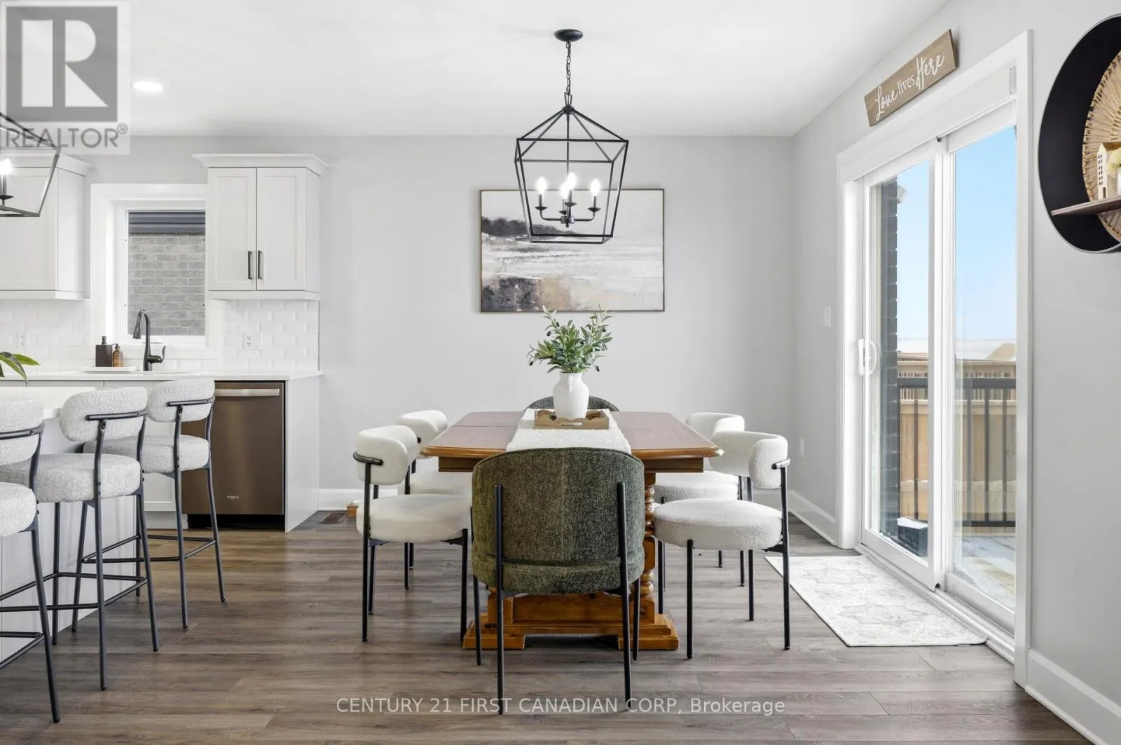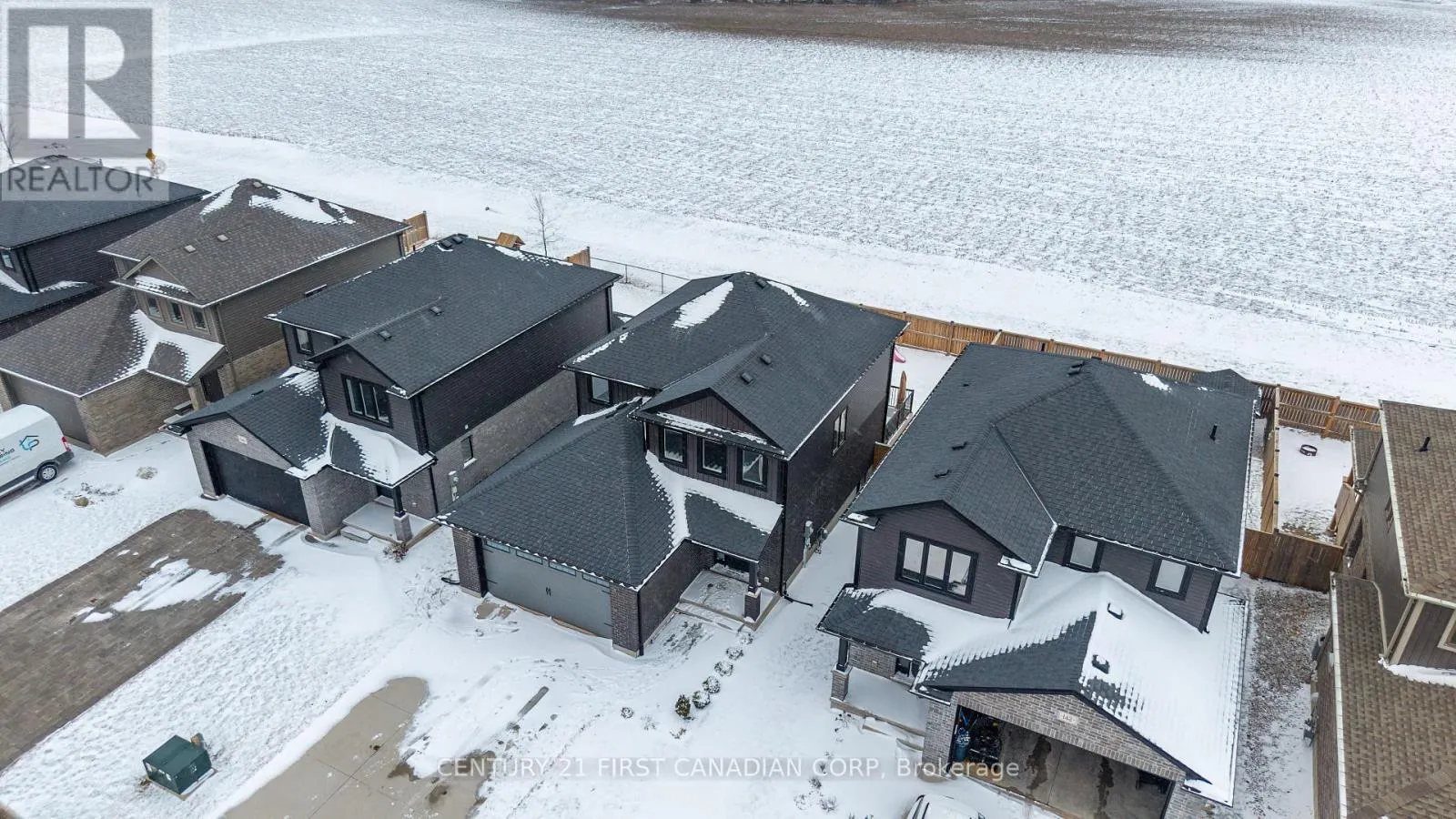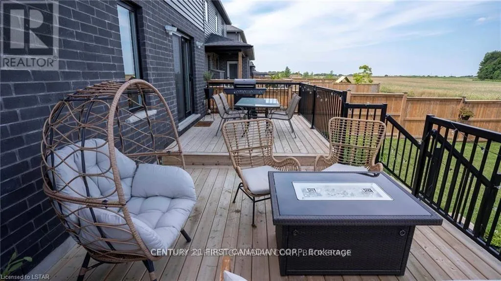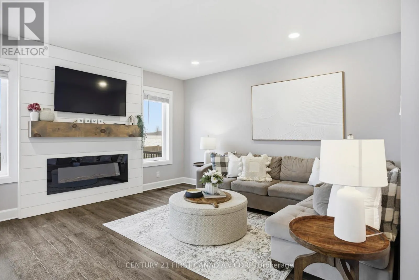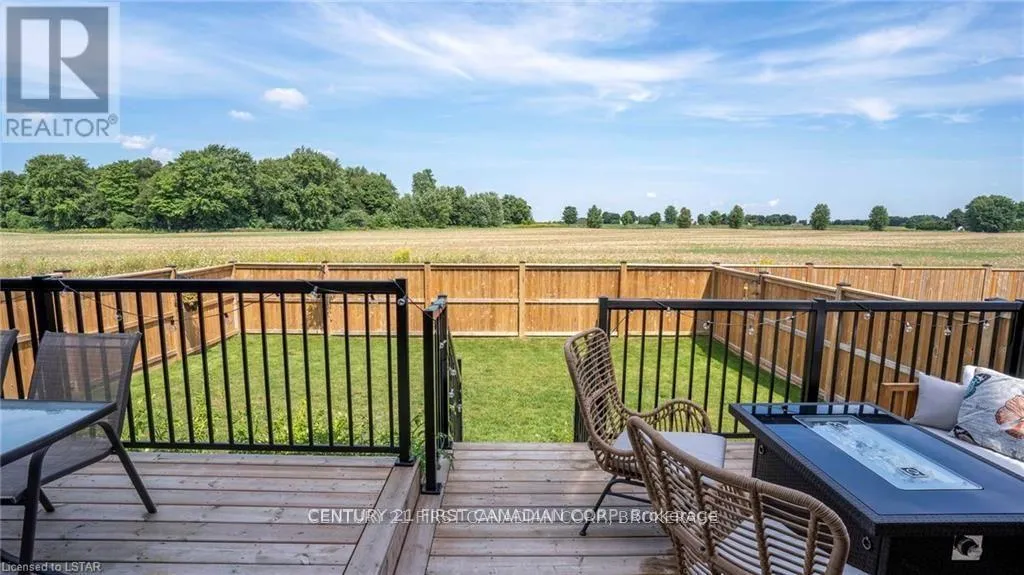 Cross Streets: BEECH STREET. ** Directions: SAINTSBSURY LINE TO GILMOUR DRIVE. Welcome to life in Lucan-where small-town charm meets everyday convenience, just 20 minutes from London.This beautifully designed home offers 3 spacious bedrooms and 2.5 stunning bathrooms, thoughtfully finished with stylish shiplap accent walls and elegant quartz countertops throughout. The heart of the home is the expansive kitchen, featuring sleek black stainless steel appliances, a timeless subway tile backsplash, and a large centre island that seamlessly overlooks the dining area-perfect for both entertaining and everyday living.The bright, open-concept main floor is filled with natural light and anchored by a gorgeous shiplap electric fireplace, creating a warm and inviting focal point for the living space.Upstairs, you'll find three generously sized bedrooms, including a beautiful primary retreat complete with a large walk-in closet and a luxurious 4-piece ensuite. Enjoy a spa-like experience with a tiled shower and glass enclosure, along with a double sink vanity designed for both comfort and style. The backyard is fully fenced and features a large deck overlooking farmland where you can take in some of the most breathtaking sunsets Lucan has to offer. This is the perfect blend of modern finishes, functional design, and a welcoming community-an ideal place to call home. (id:27476)