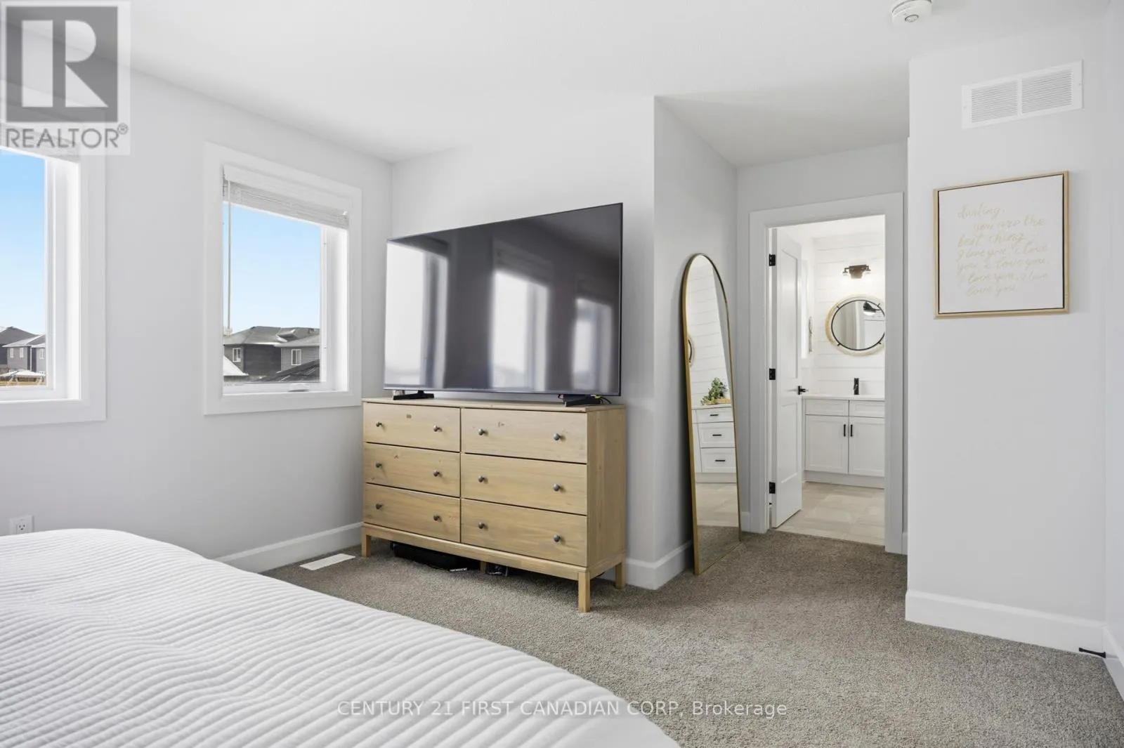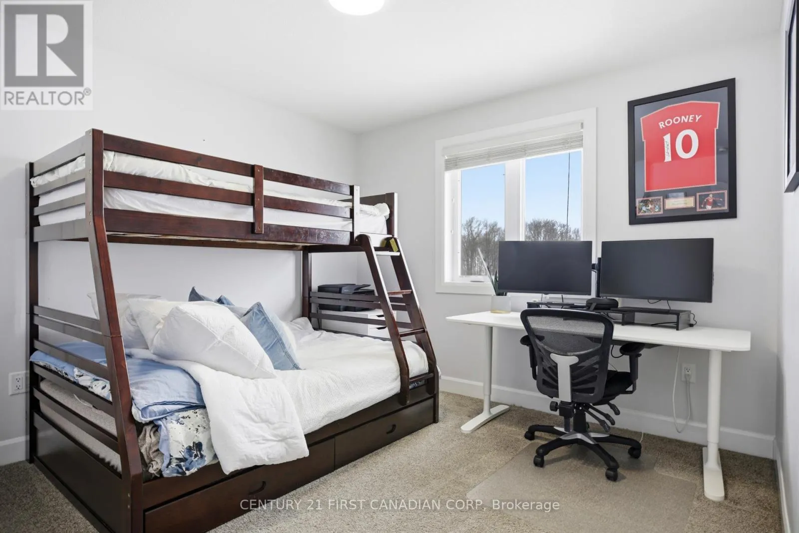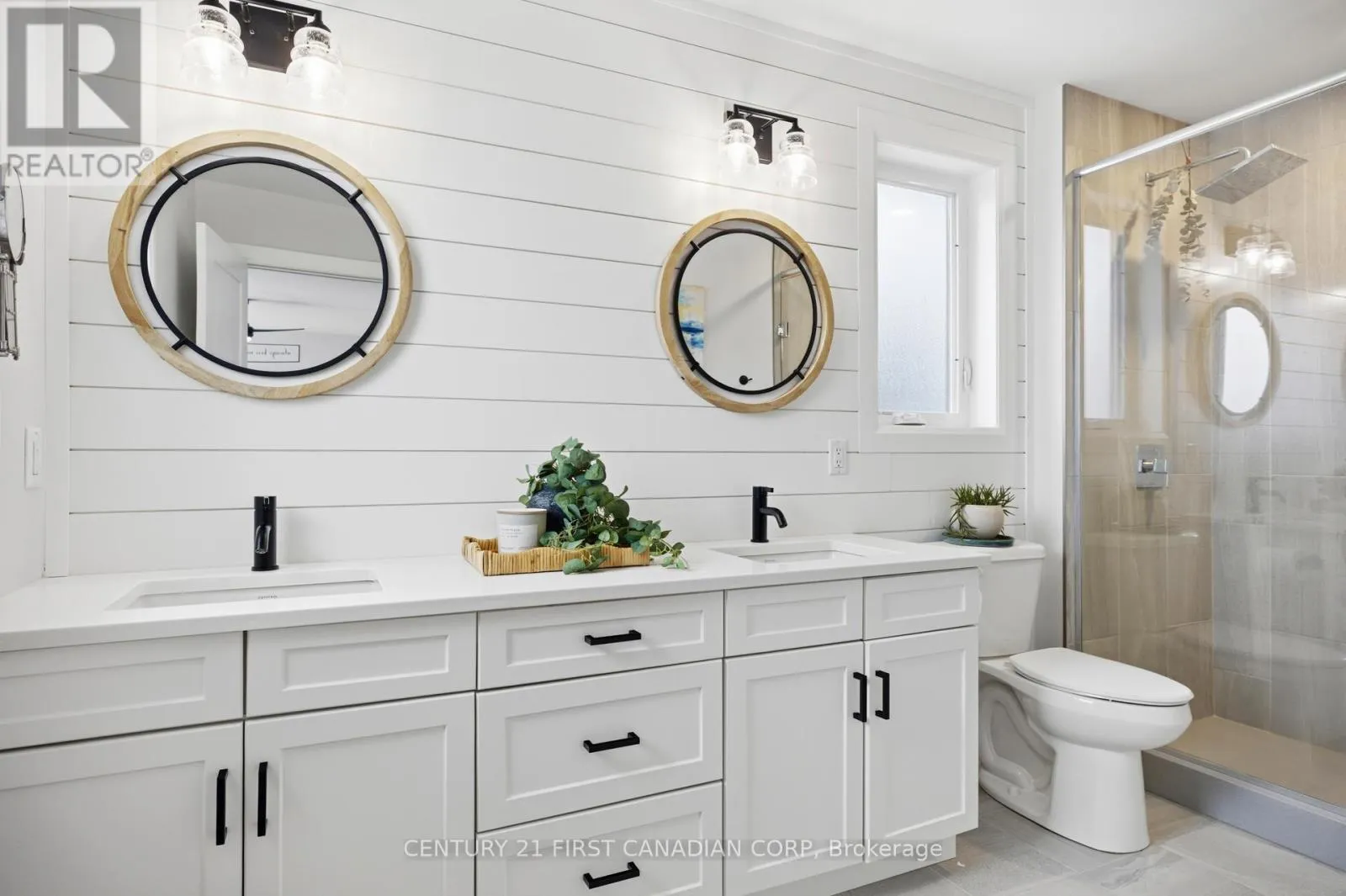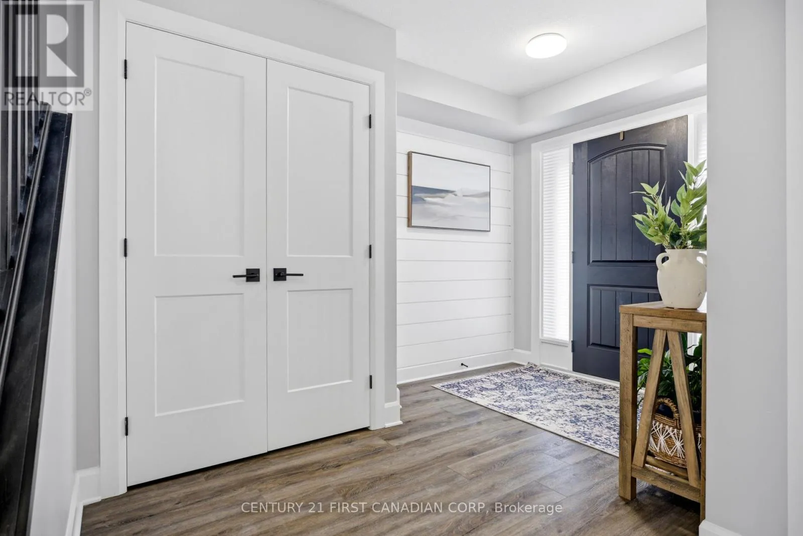 Cross Streets: BEECH STREET. ** Directions: SAINTSBSURY LINE TO GILMOUR DRIVE. Welcome to life in Lucan-where small-town charm meets everyday convenience, just 20 minutes from London.This beautifully designed home offers 3 spacious bedrooms and 2.5 stunning bathrooms, thoughtfully finished with stylish shiplap accent walls and elegant quartz countertops throughout. The heart of the home is the expansive kitchen, featuring sleek black stainless steel appliances, a timeless subway tile backsplash, and a large centre island that seamlessly overlooks the dining area-perfect for both entertaining and everyday living.The bright, open-concept main floor is filled with natural light and anchored by a gorgeous shiplap electric fireplace, creating a warm and inviting focal point for the living space.Upstairs, you'll find three generously sized bedrooms, including a beautiful primary retreat complete with a large walk-in closet and a luxurious 4-piece ensuite. Enjoy a spa-like experience with a tiled shower and glass enclosure, along with a double sink vanity designed for both comfort and style. The backyard is fully fenced and features a large deck overlooking farmland where you can take in some of the most breathtaking sunsets Lucan has to offer. This is the perfect blend of modern finishes, functional design, and a welcoming community-an ideal place to call home. (id:27476)