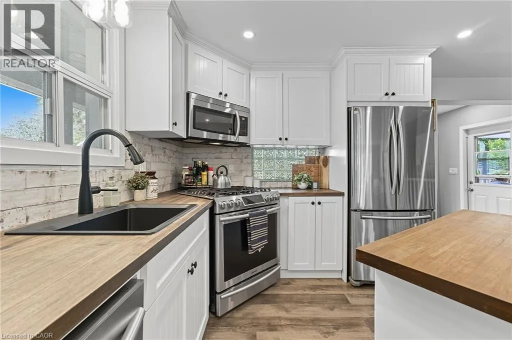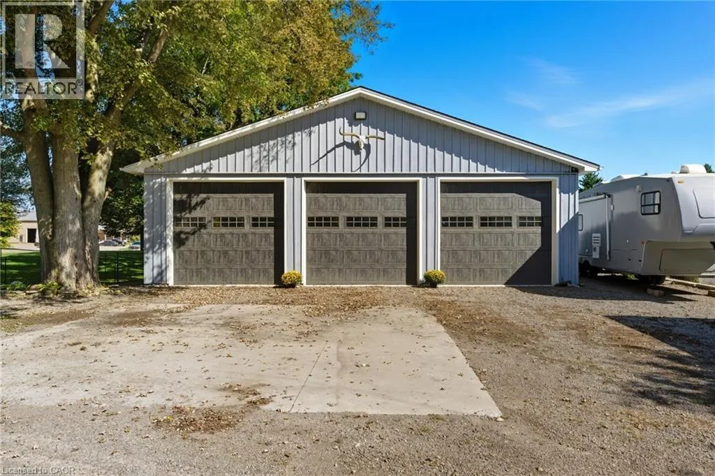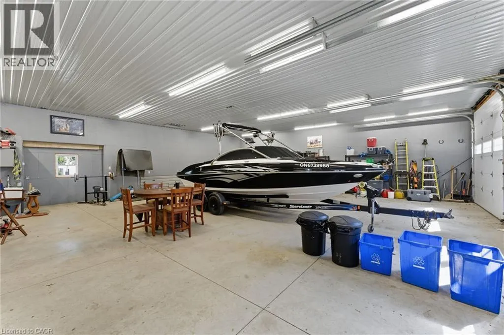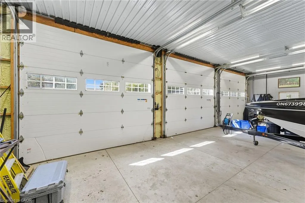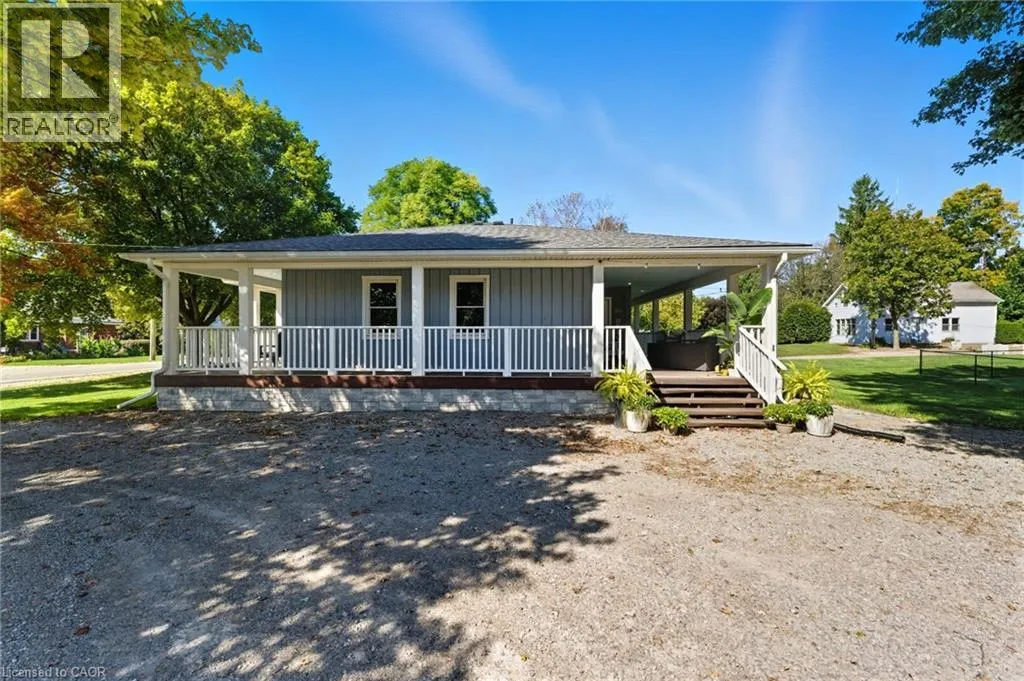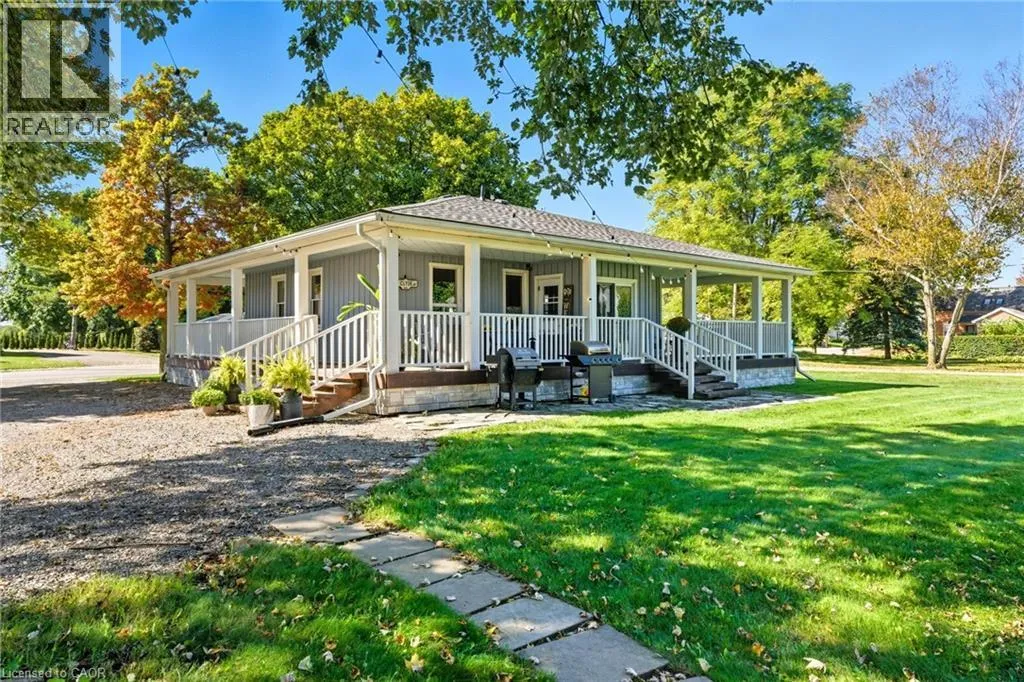 West Side of Lynden Road, South of 2nd Concession Discover this beautifully updated country bungalow with a detached 3-bay shop/garage, ideally located in the quaint West Flamborough village of Lynden. From the moment you arrive, the homeâs curb appeal stands out with its board-and-batten exterior, welcoming wrap-around porch, and large driveway. Inside, the open-concept design connects the living, dining, and kitchen areas, creating a bright and functional main living space. The main floor also features two comfortable bedrooms and a modernized four-piece bathroom. The fully finished basement adds tremendous versatility. Currently arranged as a spacious primary suite with a three-piece ensuite and walk-in closet, it could easily be used as a recreation room, guest suite, or additional living space, offering flexibility to meet your familyâs needs. Step outside to enjoy multiple covered outdoor living areas on the expansive wrap-around porchâperfect for relaxing or entertaining. The backyard includes a fully fenced dog run and, most impressively, a winterized three-bay shop. This exceptional garage features oversized 11â x 12â doors, 12â ceilings, and the ability to comfortably fit up to six vehicles. Whether youâre a car enthusiast, hobbyist, or need space for RVs, trucks, or equipment, this shop delivers unmatched functionality. Renovations completed in 2019 include a new roof, wrap-around porch, updated flooring, plumbing, appliances, and a finished basement, along with construction of the shop. Lynden offers local amenities such as a library, parks, and the Lynden Legion, which hosts popular food and drink nights on weekends. With quick access to Cambridge, Brantford, Ancaster, Dundas, and Hamilton, this rural property combines peaceful living with excellent convenience. Donât miss this opportunity to make it yours! (id:27476)