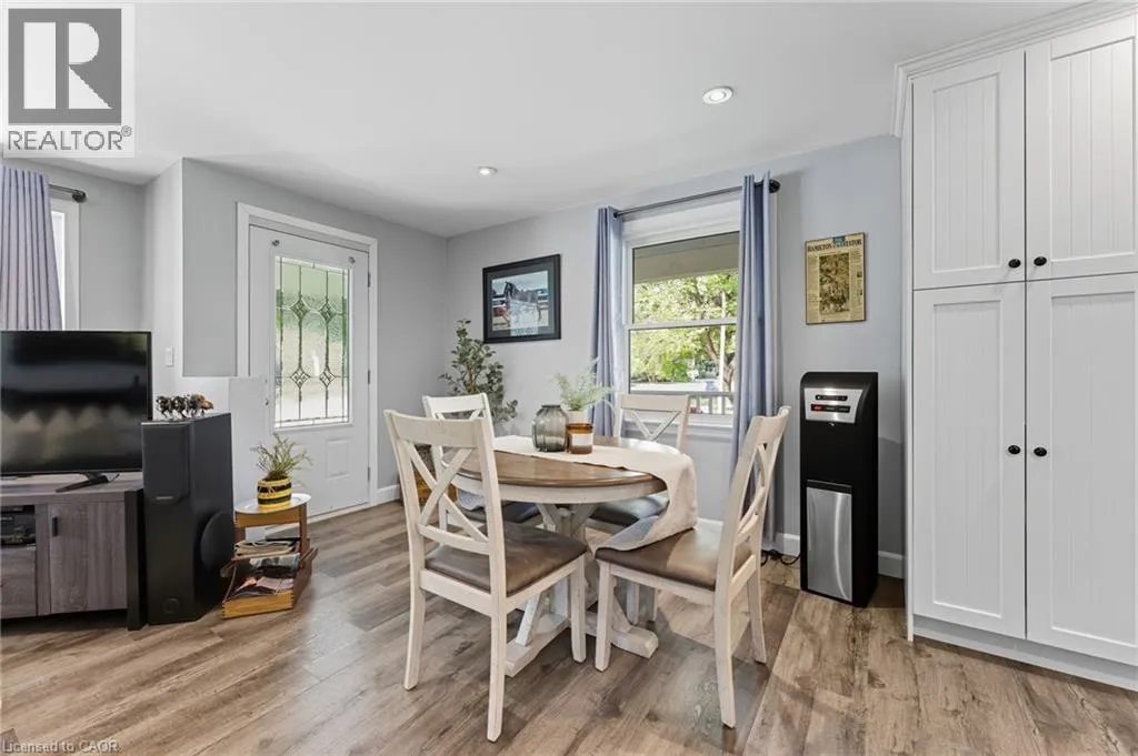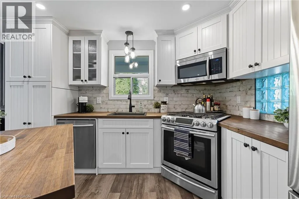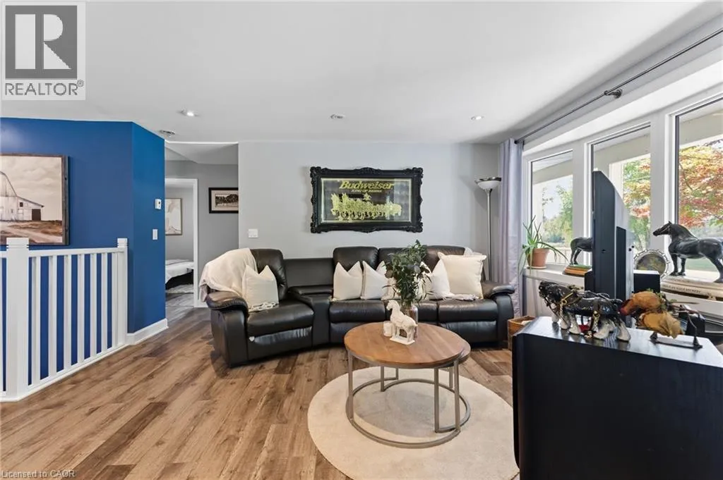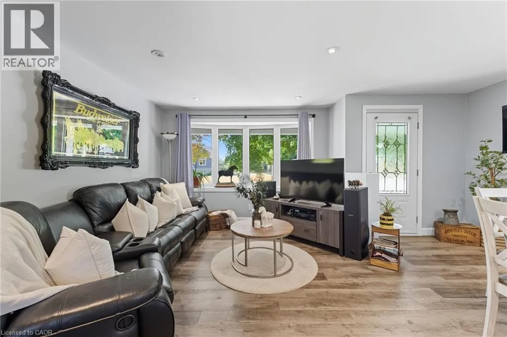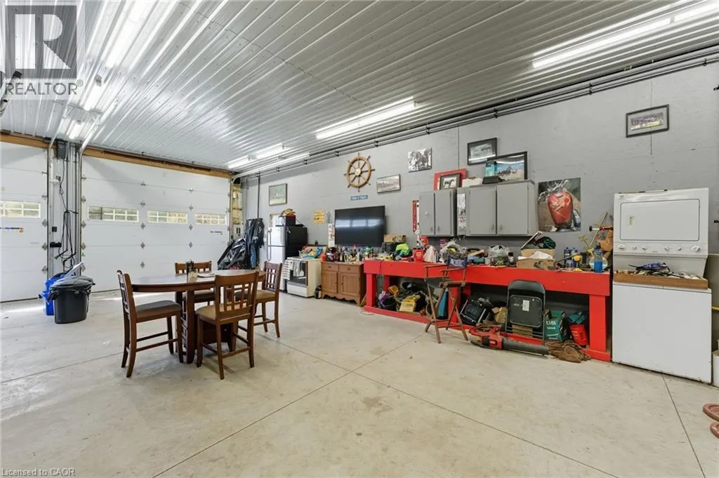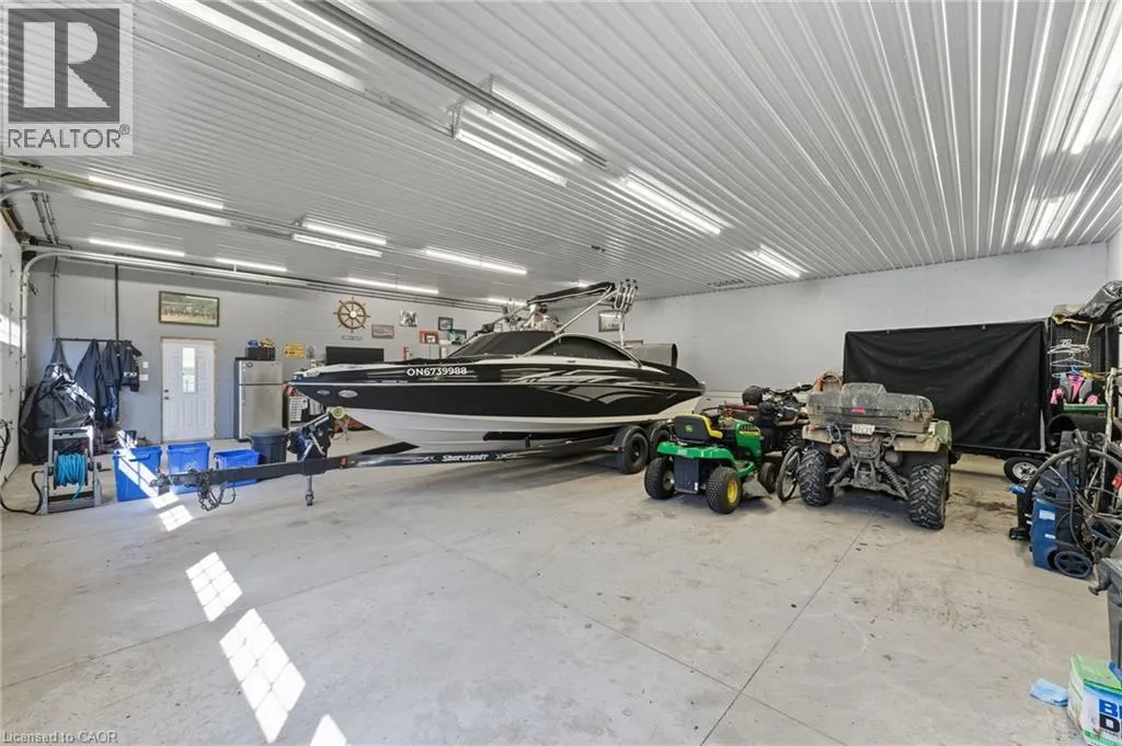 West Side of Lynden Road, South of 2nd Concession Discover this beautifully updated country bungalow with a detached 3-bay shop/garage, ideally located in the quaint West Flamborough village of Lynden. From the moment you arrive, the homeâs curb appeal stands out with its board-and-batten exterior, welcoming wrap-around porch, and large driveway. Inside, the open-concept design connects the living, dining, and kitchen areas, creating a bright and functional main living space. The main floor also features two comfortable bedrooms and a modernized four-piece bathroom. The fully finished basement adds tremendous versatility. Currently arranged as a spacious primary suite with a three-piece ensuite and walk-in closet, it could easily be used as a recreation room, guest suite, or additional living space, offering flexibility to meet your familyâs needs. Step outside to enjoy multiple covered outdoor living areas on the expansive wrap-around porchâperfect for relaxing or entertaining. The backyard includes a fully fenced dog run and, most impressively, a winterized three-bay shop. This exceptional garage features oversized 11â x 12â doors, 12â ceilings, and the ability to comfortably fit up to six vehicles. Whether youâre a car enthusiast, hobbyist, or need space for RVs, trucks, or equipment, this shop delivers unmatched functionality. Renovations completed in 2019 include a new roof, wrap-around porch, updated flooring, plumbing, appliances, and a finished basement, along with construction of the shop. Lynden offers local amenities such as a library, parks, and the Lynden Legion, which hosts popular food and drink nights on weekends. With quick access to Cambridge, Brantford, Ancaster, Dundas, and Hamilton, this rural property combines peaceful living with excellent convenience. Donât miss this opportunity to make it yours! (id:27476)