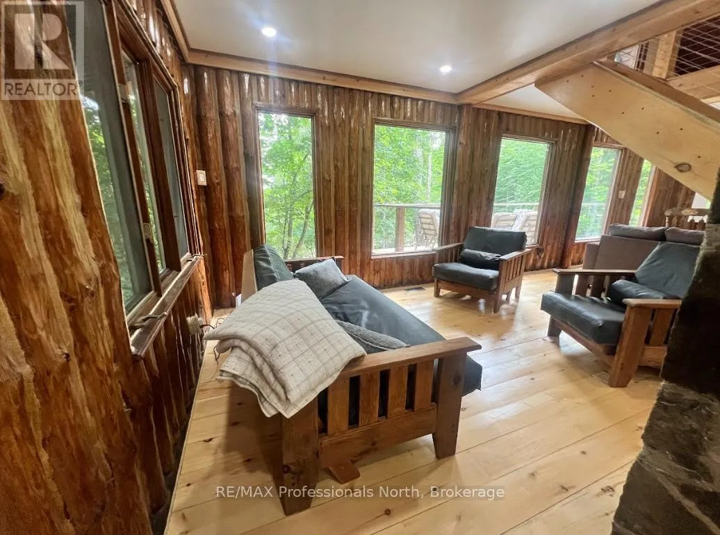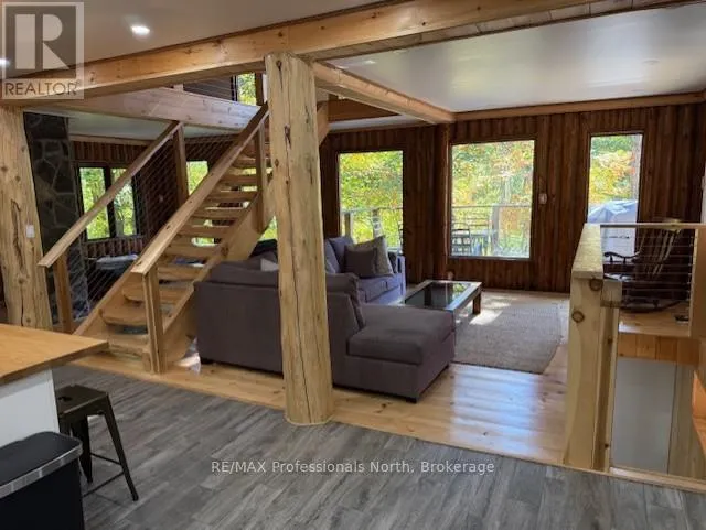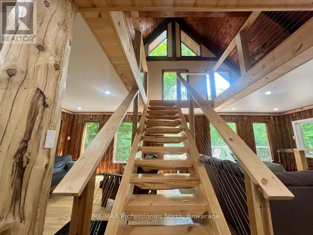 Cross Streets: Morris Lane to Angus Point Rd. ** Directions: Boundary Rd to Morris Ln to Angus Point rd. Welcome to this exceptional custom log home situated on over 4 private acres, directly across from beautiful Eagle Lake. Thoughtfully designed and fully winterized, this home offers year-round access with frontage on two sides of municipally maintained Angus Point Road. Just steps away, you'll find a 5-acre municipal waterfront property featuring a beach and boat launch giving you all the benefits of lakeside living without the added cost of waterfront taxes. Inside, the home has been updated with modern amenities while preserving its classic log home charm. With 3 bedrooms, a spacious loft, and 3 full bathrooms, there's plenty of room for family and guests. The walk-out basement adds even more functionality with a kitchenette and laundry area ideal for extended stays or multi-generational living. Soaring ceilings, large windows, and warm wood finishes throughout create a bright, inviting atmosphere that truly feels like a getaway. In addition, the property includes an impressive 1,200 sq ft garage with ample lower-level parking and a large upper level that's ready to be finished into a guest suite or rental space, complete with a separate entrance. Whether you're looking for a family home, a vacation retreat, or an investment opportunity, this property offers endless possibilities in a peaceful, natural setting. (id:27476)