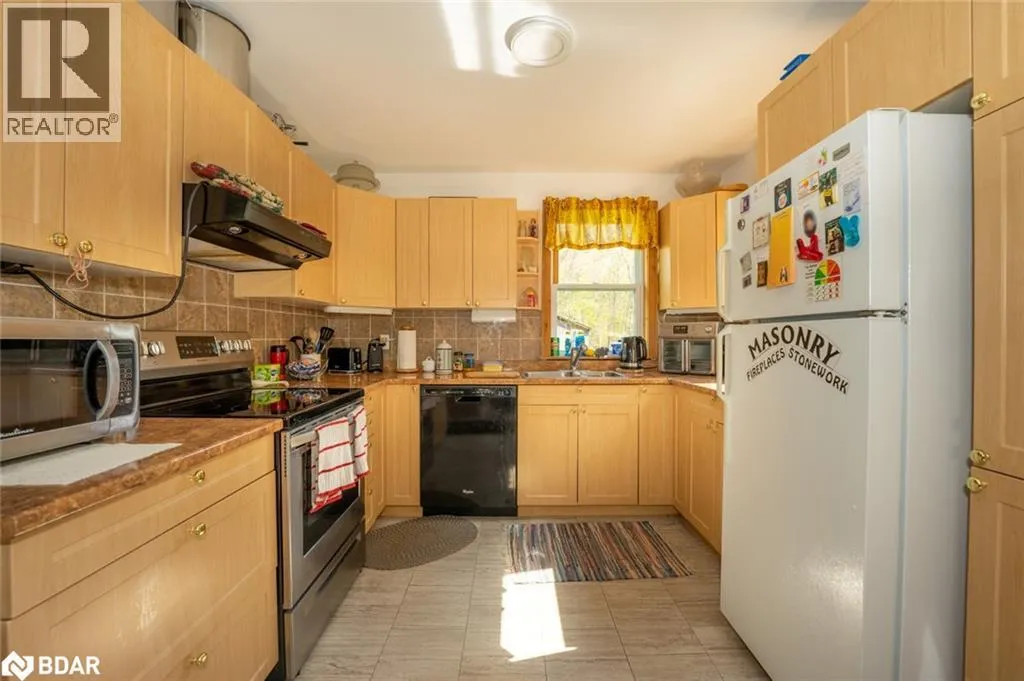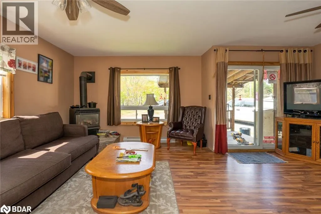 HWY 400/Lake Joseph Rd/High St YOUR PRIVATE MUSKOKA SANCTUARY AWAITS WITH ENDLESS POTENTIAL & UNMATCHED PRIVACY! Escape to your private retreat in the heart of Muskoka! This charming 1.5-storey, 2-bedroom, 1-bathroom home offers unmatched privacy, set on a sprawling lot surrounded by lush, mature trees. Located just minutes from Highway 400 and Muskoka District Road 169, this property is excellent for commuters, outdoor enthusiasts, and anyone looking to enjoy the convenience of nearby shopping, marinas, and endless recreational activities like golf, fishing and boating. This home is nearly 400 feet from the road, offering a peaceful and secluded lifestyle. The board-and-batten exterior provides curb appeal with a rustic touch. Step inside to discover an updated kitchen complete with ample storage to meet all your needs. The bright, airy living room features a walkout to a spacious deck, inviting you to soak up the views and enjoy the serene surroundings. Large primary rooms are bathed in natural light, offering beautiful views of the outdoors while creating a warm, inviting atmosphere. Durable laminate flooring throughout ensures easy maintenance. Some windows in the home have been updated, enhancing energy efficiency. Outside, a large shed provides plenty of storage for all your outdoor gear and seasonal items. The expansive lot is your personal haven, offering endless potential for gardening, outdoor entertaining, or simply relaxing in your peaceful sanctuary. Whether youâre seeking a cozy year-round home, a weekend getaway, or a property brimming with the potential to make it your own, this home has it all. With its unbeatable location, ultra-private setting, and proximity to amenities, this property is a must-see! (id:27476)