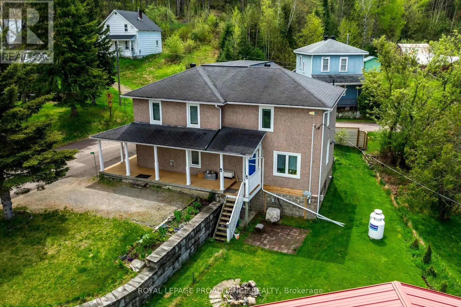 Cross Streets: Highway 60 / Burchat. ** Directions: Highway 60 to Wilno. Incredible Turnkey Opportunity on Highway 60 in Wilno, Ontario. Welcome to a rare and exceptional offering in the heart of Wilno - two turnkey buildings on a high-visibility stretch of Highway 60, both included in the price! Whether you're an owner/operator ready to launch your dream business or a savvy entrepreneur looking for a versatile investment, this property delivers unmatched potential. Building One - Commercial Storefront + Apartment. This stunning highway-facing commercial space features soaring ceilings, gorgeous wooden beams and posts, and expansive front windows that flood the space with natural light. With beautiful hardwood floors, a walk-in refrigerator, and a heated, insulated garage, it's perfectly set up for retail, food service, or a studio. A 400 sq ft loft overlooks the main floor, offering flexible space for office use or additional display. Above the commercial unit is a bright and inviting one-bedroom apartment, ideal for live-work convenience or rental income. Building Two - Spacious Country Home - Tucked privately behind the storefront is a charming and meticulously finished 4-bedroom, 3-bathroom home with over 2,100 sq ft of living space. Highlights include a custom kitchen with stainless steel appliances and an island, hardwood flooring, propane fireplace, main floor laundry, and on-demand hot water heater. The primary suite features a luxurious 4-piece ensuite, and the wrap-around porch provides the perfect space to relax and enjoy the peaceful country setting. A Rare Find in Cottage Country. This unique property offers endless possibilities, operate your business up front while enjoying the comfort of a beautiful home in the back, or rent both spaces for solid income potential. Don't miss your chance to own this one-of-a-kind package in a thriving, high-traffic location. Book your private showing today and unlock the potential of this exceptional Wilno property! (id:27476)
