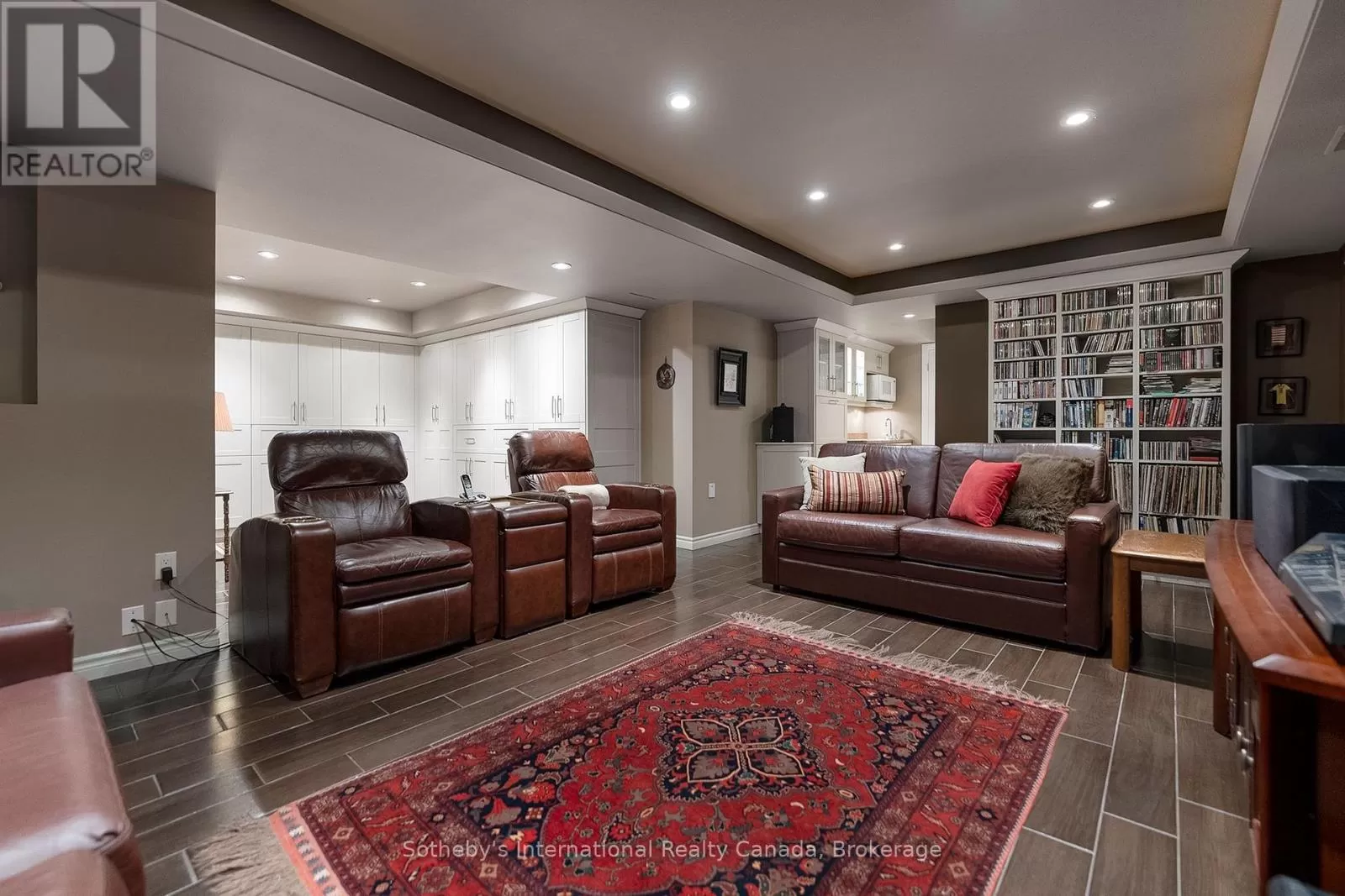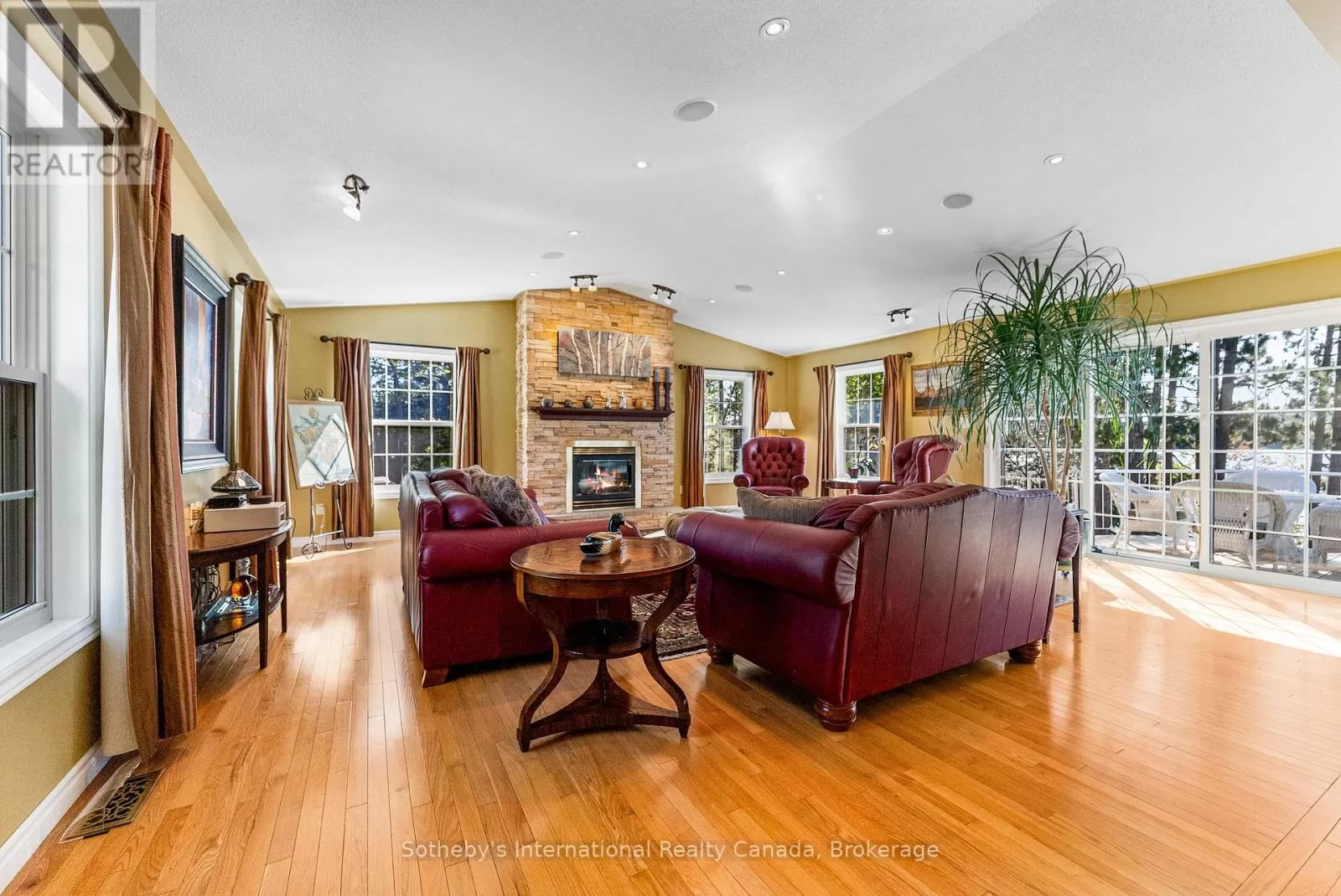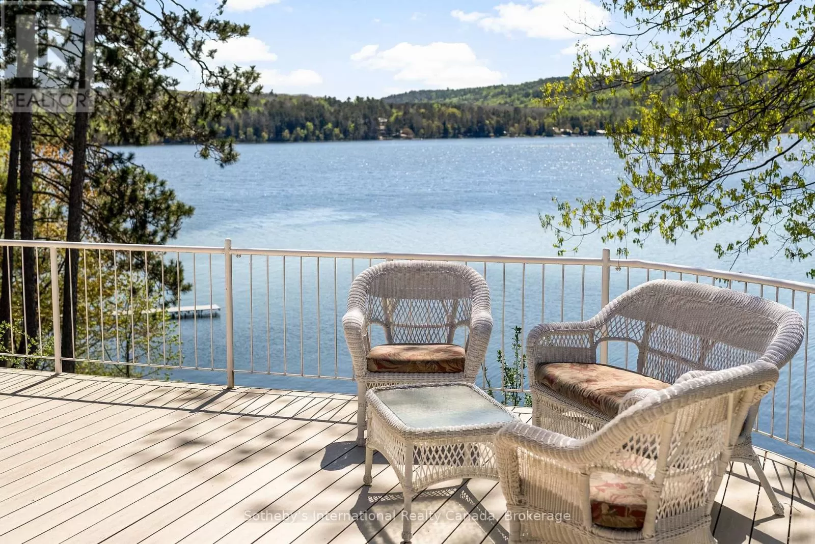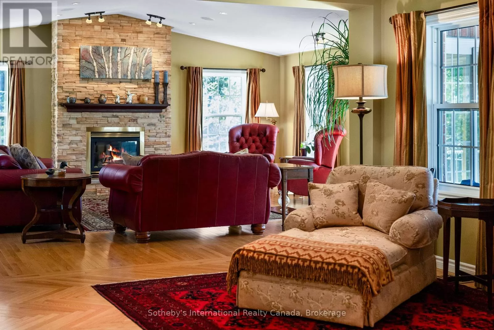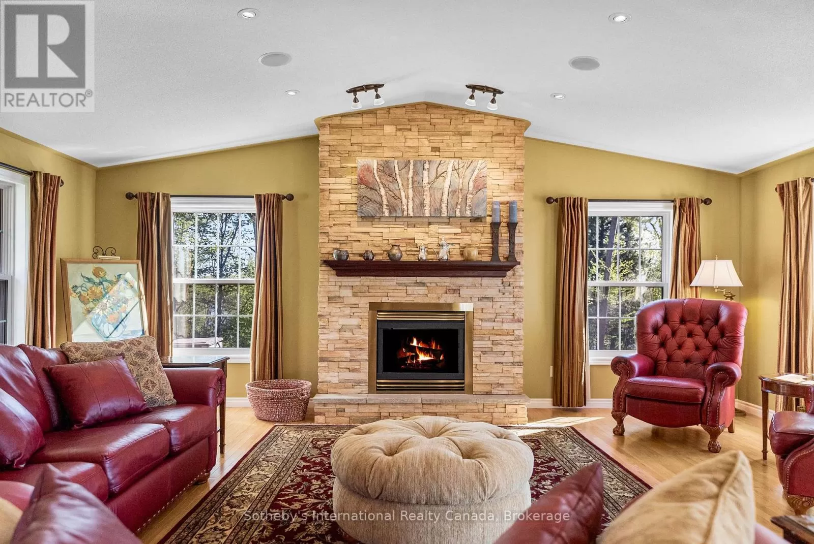 Cross Streets: Mask Island Dr & Lakeshore Dr. ** Directions: Lakeshore Dr. To Mask Island Dr. Accessed year-round via a privately maintained road! Positioned on a private peninsula with nearly 1,100 feet of pristine shoreline and just under 3 acres of land, this executive lakeside retreat offers a rare combination of seclusion, space, and timeless design on Kamaniskeg Lake. With southern exposure, enjoy all-day sun, which is ideal for lakeside entertaining, swimming, and relaxing in total privacy. The stately two-storey brick home is thoughtfully designed for elevated living. The main level features a chef-inspired custom kitchen outfitted with luxury granite countertops, built-in appliances, and extensive custom cabinetry. The kitchen features a six-burner gas range with grill and two gas ovens, topped by a high-capacity dual-motor range hood and complemented by a pot filler faucet, and much more! The open concept kitchen, dining and living area offers expansive lake views and walkout access to a large deck, complete with Phantom retractable screens providing a comfortable space for evening cocktails and chats. A fireplace insert anchors the main living space, adding comfort and ambiance year-round. The main-floor primary suite includes a large ensuite and generous layout with lake views. Upstairs offers four spacious bedrooms, a four-piece bath, a second living area, and a cozy reading nook perfect for guests or extended family. The walkout basement is partially above grade and tailored for both relaxation and recreation, featuring an exercise room with outside access to a stone patio, a moody, ambient entertainment space with a wet bar and woodstove, and a dedicated wood room. Two detached double garages provide versatile space for vehicles, recreational gear, or workshop needs. A rare offering with unmatched privacy, sunshine, and waterfront, ideal as an executive escape or forever lakeside estate. 5 minutes to all amenities, including a hospital. Ask your Realtor for a full list of features today! (id:27476)