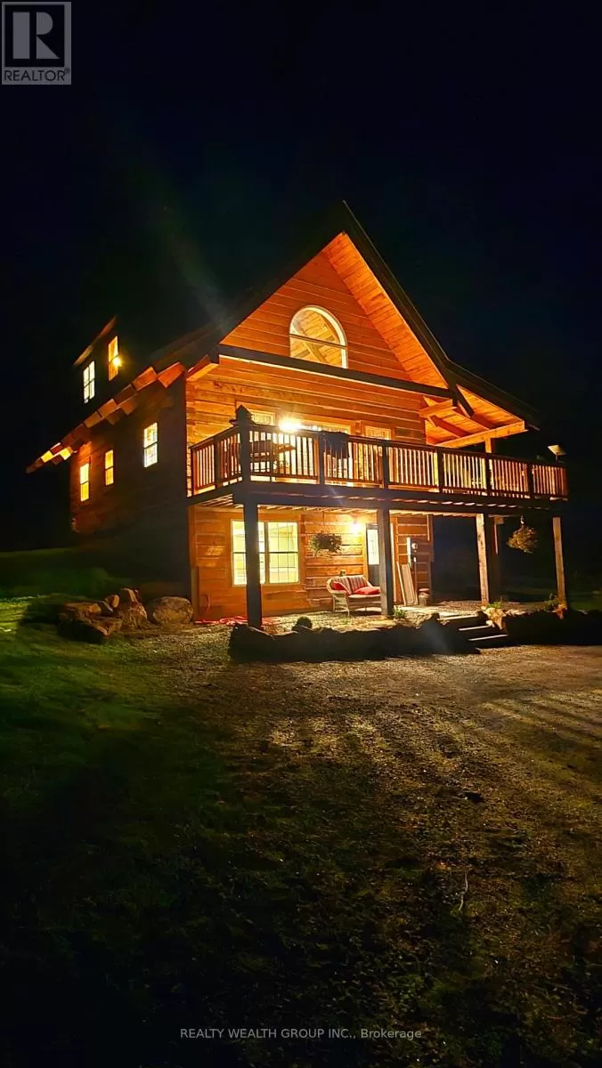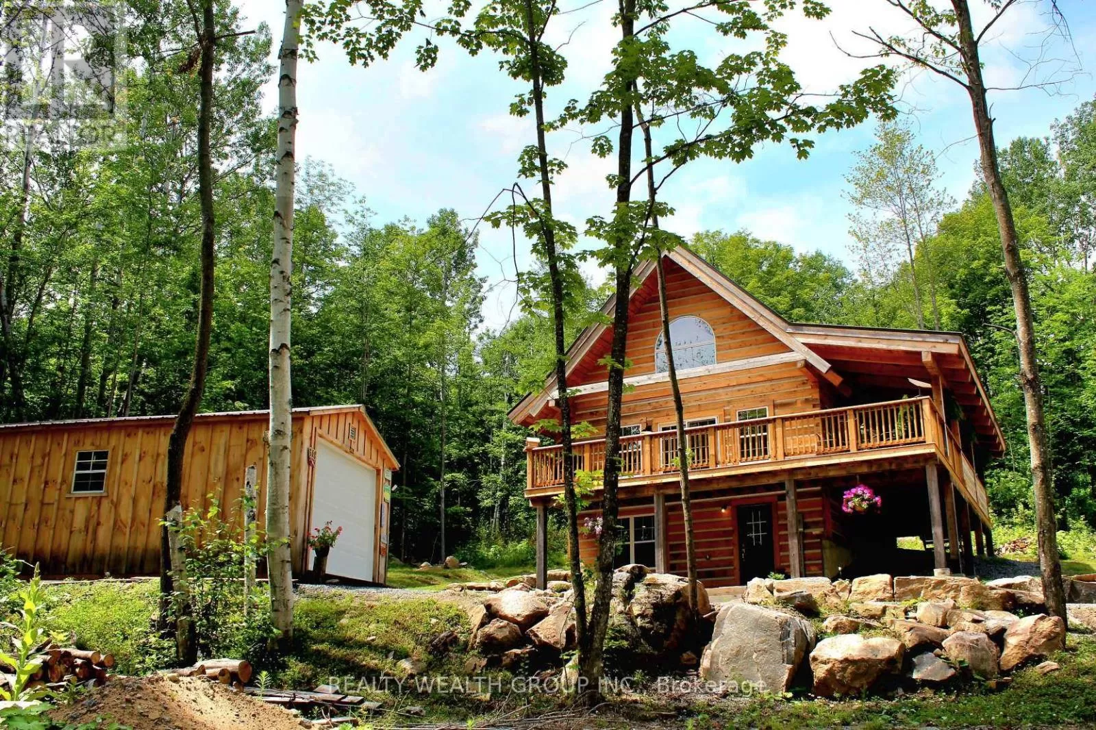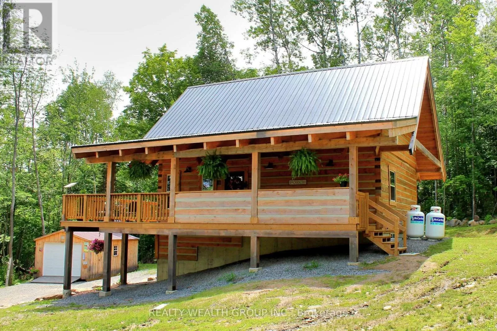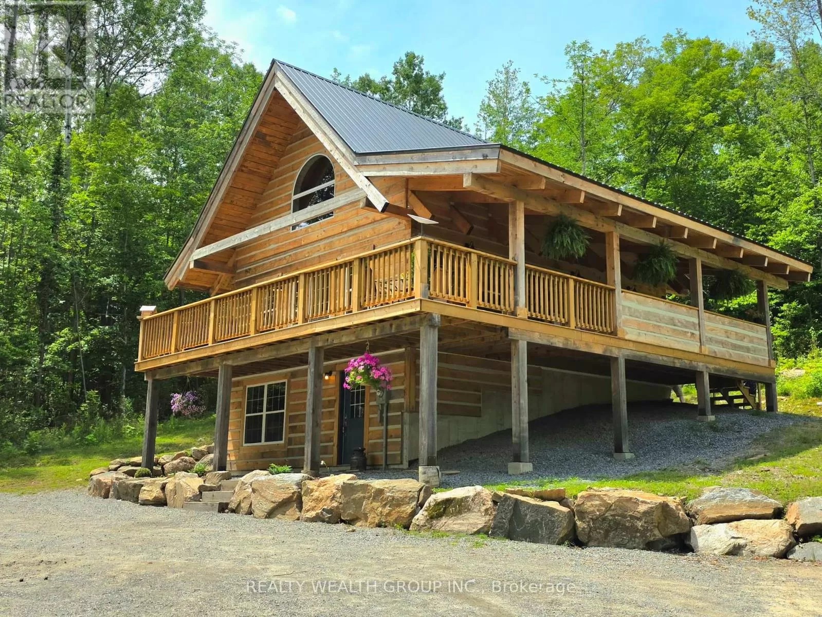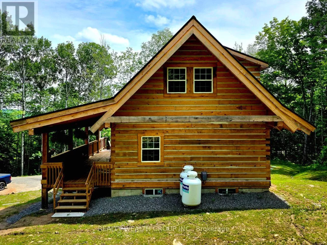 Cross Streets: Hwy 60 & Mitchell Road. ** Directions: Hwy 60 and Mitchell Road. Brand NEW! Custom-Built Log Home in Algonquin Heights Estates A Rare Northern RetreatWelcome to your dream escape! Nestled on a beautifully landscaped 1.5-acre lot in the prestigious Algonquin Heights Estates, this custom-built log home is a rare gem that perfectly blends rustic elegance with modern comforts.Crafted with exceptional attention to detail, this 1,500 sq ft masterpiece showcases the warmth and character of true log home living. Step inside to find glowing pine plank floors, a stunning custom kitchen with handcrafted red pine cabinetry, and a thoughtfully designed layout featuring two spacious bedrooms, a stylish 3-piece bath, and a convenient main floor laundry.Upstairs, your private loft-style primary suite awaitscomplete with a second 3-piece bathroom and a standalone soaker tub thats perfect for relaxing after a day outdoors.The bright walkout basement adds even more versatile space, featuring a 2-piece bath, vinyl plank flooring, a large picture window, and a cozy V-joint pine ceilingideal for a family room, guest suite, or creative workspace.Step outside and take in the peace and beauty of your surroundings on the massive 20' x 8' covered wraparound deckperfect for morning coffee, evening sunsets, or entertaining friends, with seasonal views of stunning Trout Lake.Just a 2-minute walk to deeded waterfront access, enjoy the use of a shared dock where you can launch your kayak or simply unwind by the waters edge.Located only 30 minutes from the East Gate of iconic Algonquin Park, this property offers year-round adventure with world-class hiking, canoeing, and wildlife right at your doorstep. Plus, you're just a short drive from shopping, dining, and all local amenities.Whether you're searching for a year-round residence, a peaceful cottage getaway, or a unique investment opportunity, this incredible log home delivers it all.Dont miss your chance to own a true piece of Northern Ontario paradise! (id:27476)