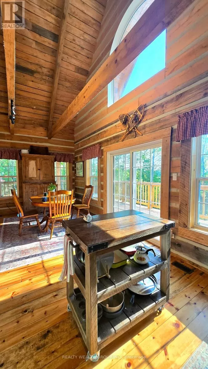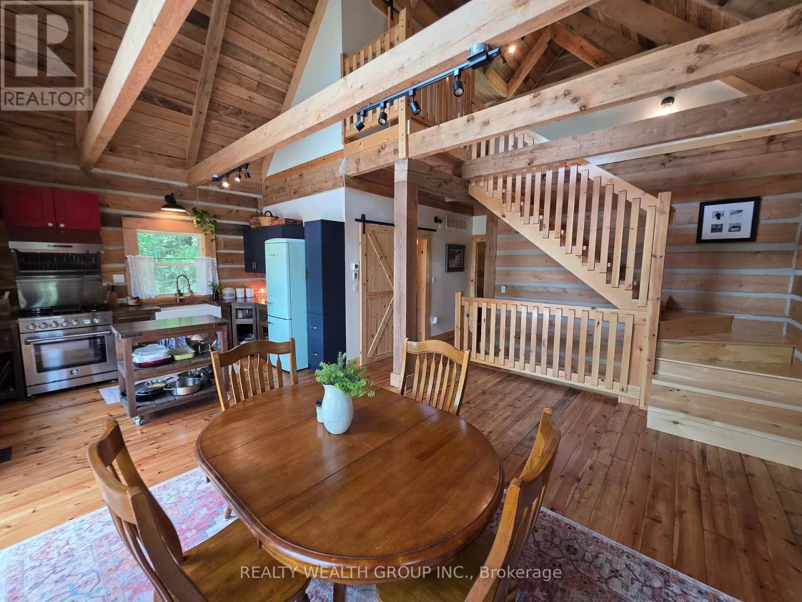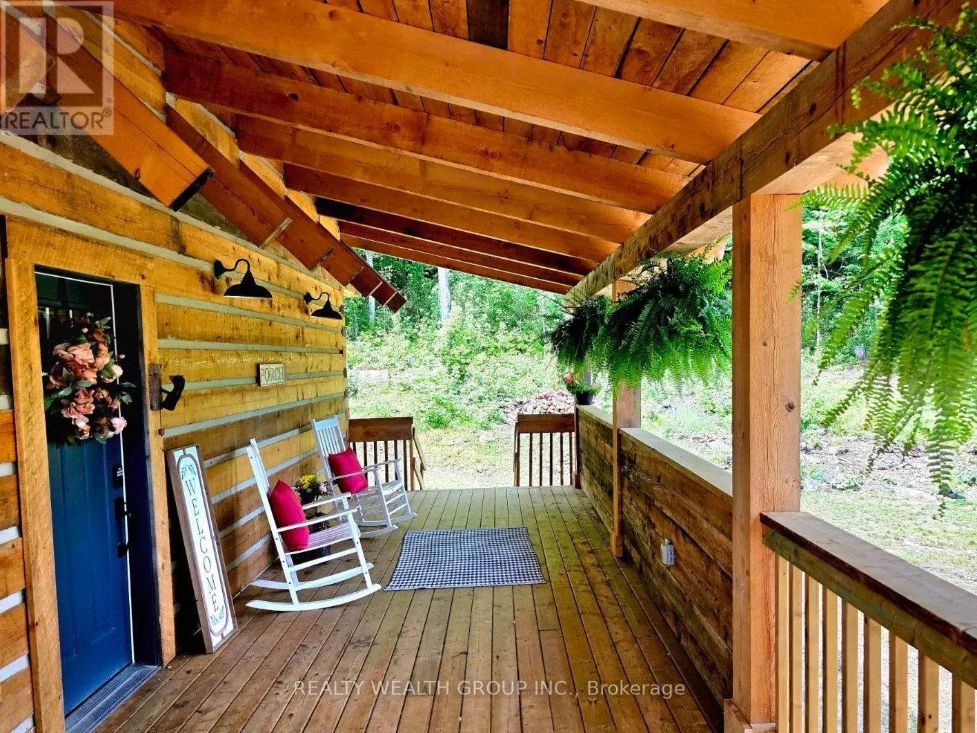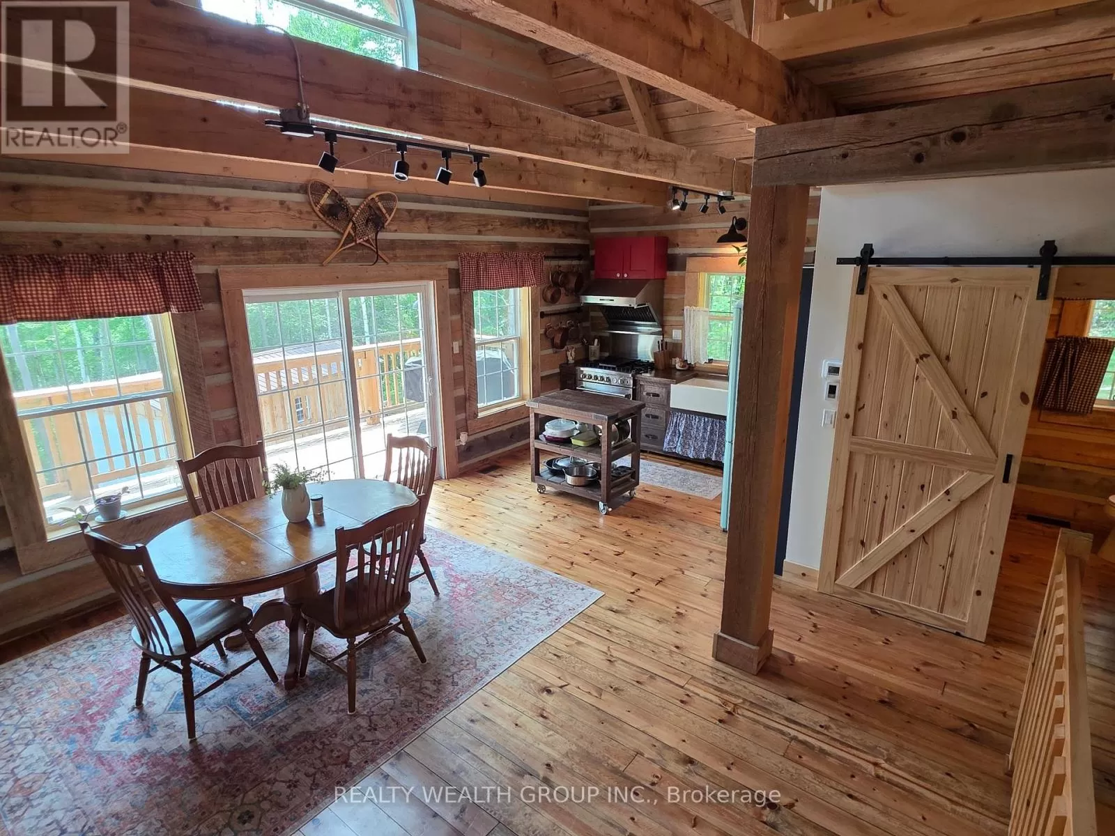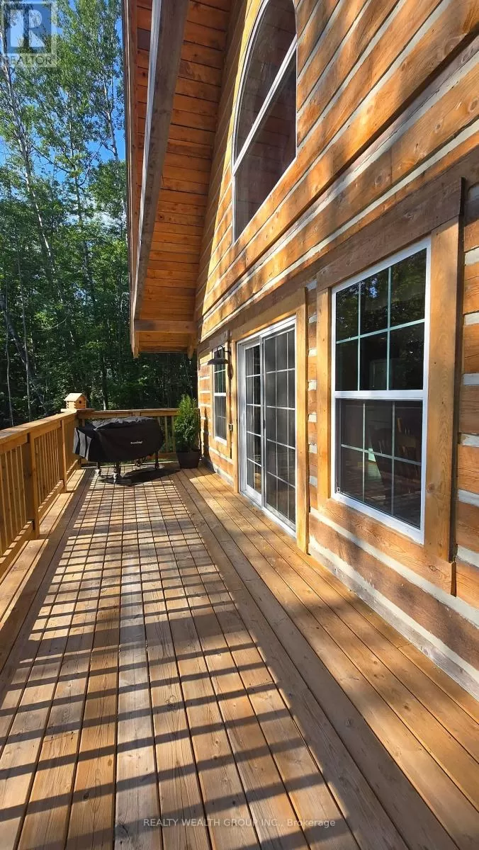 Cross Streets: Hwy 60 & Mitchell Road. ** Directions: Hwy 60 and Mitchell Road. Brand NEW! Custom-Built Log Home in Algonquin Heights Estates A Rare Northern RetreatWelcome to your dream escape! Nestled on a beautifully landscaped 1.5-acre lot in the prestigious Algonquin Heights Estates, this custom-built log home is a rare gem that perfectly blends rustic elegance with modern comforts.Crafted with exceptional attention to detail, this 1,500 sq ft masterpiece showcases the warmth and character of true log home living. Step inside to find glowing pine plank floors, a stunning custom kitchen with handcrafted red pine cabinetry, and a thoughtfully designed layout featuring two spacious bedrooms, a stylish 3-piece bath, and a convenient main floor laundry.Upstairs, your private loft-style primary suite awaitscomplete with a second 3-piece bathroom and a standalone soaker tub thats perfect for relaxing after a day outdoors.The bright walkout basement adds even more versatile space, featuring a 2-piece bath, vinyl plank flooring, a large picture window, and a cozy V-joint pine ceilingideal for a family room, guest suite, or creative workspace.Step outside and take in the peace and beauty of your surroundings on the massive 20' x 8' covered wraparound deckperfect for morning coffee, evening sunsets, or entertaining friends, with seasonal views of stunning Trout Lake.Just a 2-minute walk to deeded waterfront access, enjoy the use of a shared dock where you can launch your kayak or simply unwind by the waters edge.Located only 30 minutes from the East Gate of iconic Algonquin Park, this property offers year-round adventure with world-class hiking, canoeing, and wildlife right at your doorstep. Plus, you're just a short drive from shopping, dining, and all local amenities.Whether you're searching for a year-round residence, a peaceful cottage getaway, or a unique investment opportunity, this incredible log home delivers it all.Dont miss your chance to own a true piece of Northern Ontario paradise! (id:27476)