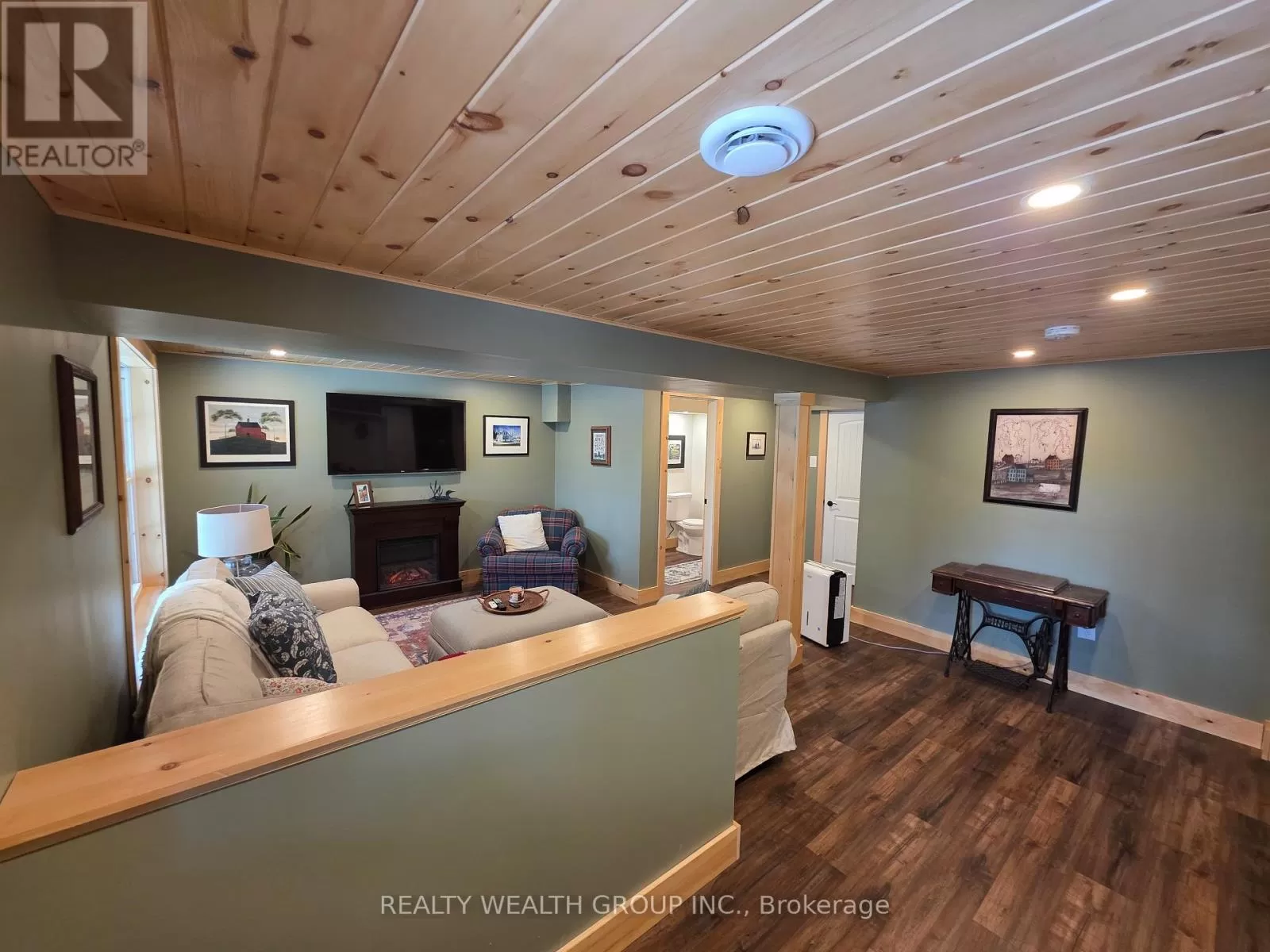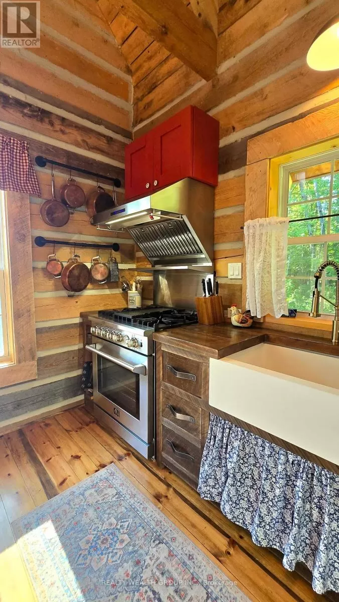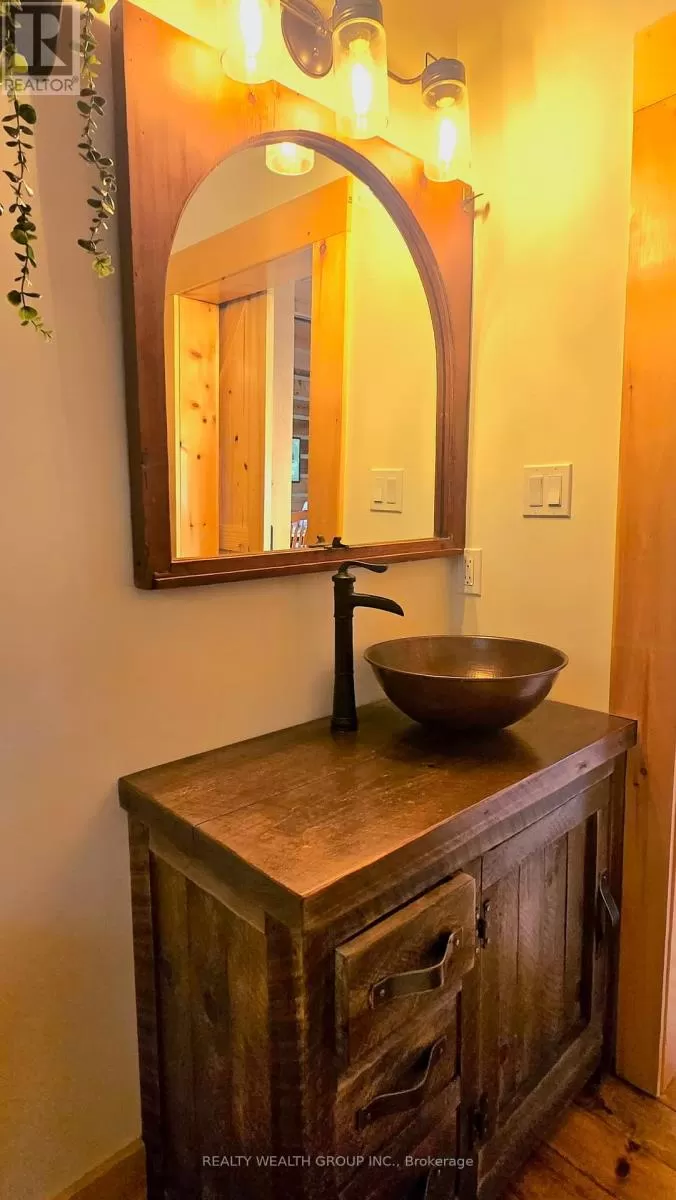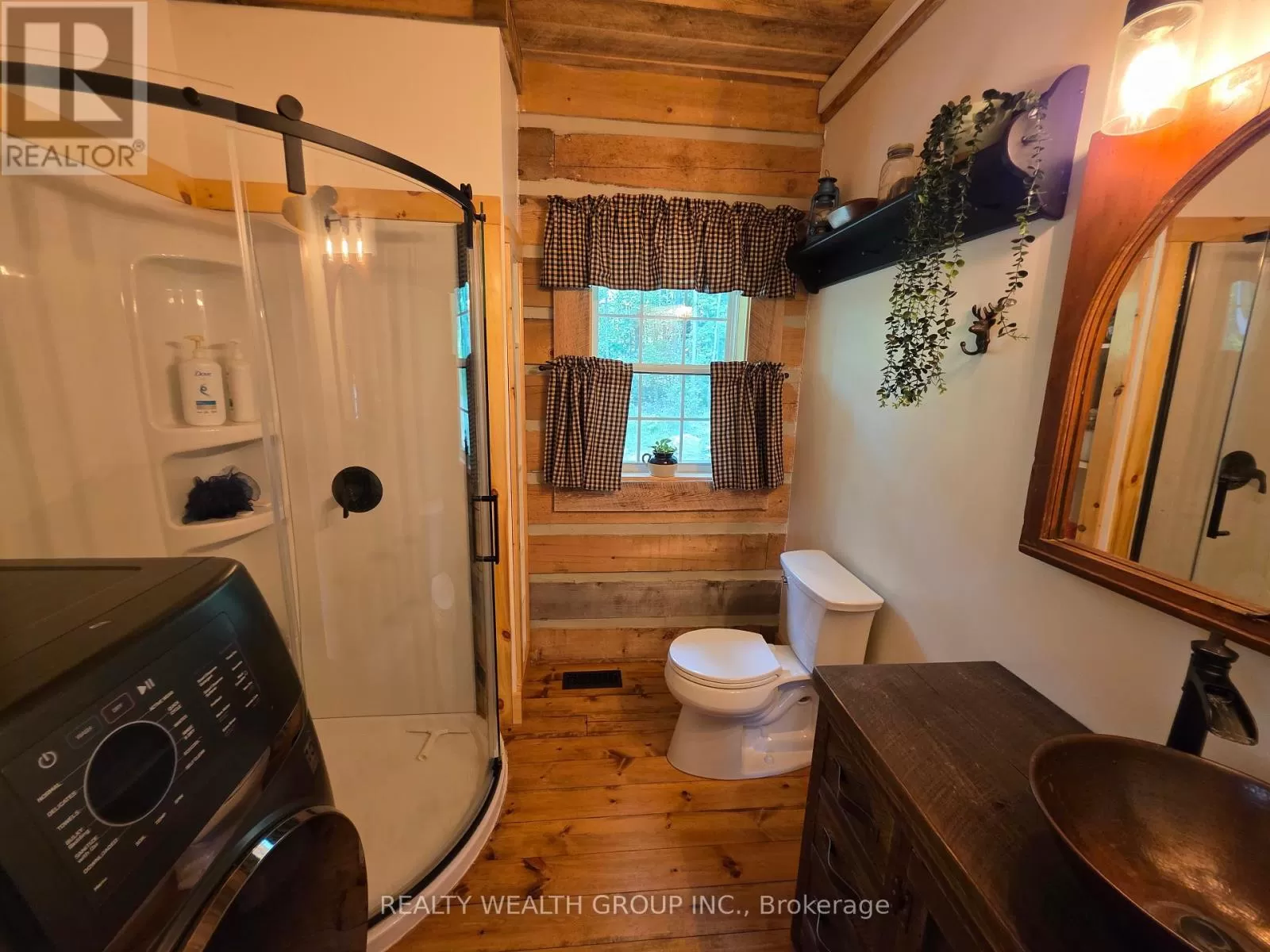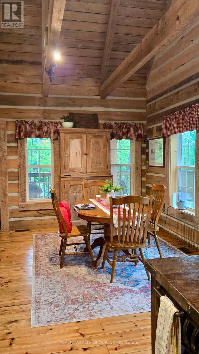 Cross Streets: Hwy 60 & Mitchell Road. ** Directions: Hwy 60 and Mitchell Road. Brand NEW! Custom-Built Log Home in Algonquin Heights Estates A Rare Northern RetreatWelcome to your dream escape! Nestled on a beautifully landscaped 1.5-acre lot in the prestigious Algonquin Heights Estates, this custom-built log home is a rare gem that perfectly blends rustic elegance with modern comforts.Crafted with exceptional attention to detail, this 1,500 sq ft masterpiece showcases the warmth and character of true log home living. Step inside to find glowing pine plank floors, a stunning custom kitchen with handcrafted red pine cabinetry, and a thoughtfully designed layout featuring two spacious bedrooms, a stylish 3-piece bath, and a convenient main floor laundry.Upstairs, your private loft-style primary suite awaitscomplete with a second 3-piece bathroom and a standalone soaker tub thats perfect for relaxing after a day outdoors.The bright walkout basement adds even more versatile space, featuring a 2-piece bath, vinyl plank flooring, a large picture window, and a cozy V-joint pine ceilingideal for a family room, guest suite, or creative workspace.Step outside and take in the peace and beauty of your surroundings on the massive 20' x 8' covered wraparound deckperfect for morning coffee, evening sunsets, or entertaining friends, with seasonal views of stunning Trout Lake.Just a 2-minute walk to deeded waterfront access, enjoy the use of a shared dock where you can launch your kayak or simply unwind by the waters edge.Located only 30 minutes from the East Gate of iconic Algonquin Park, this property offers year-round adventure with world-class hiking, canoeing, and wildlife right at your doorstep. Plus, you're just a short drive from shopping, dining, and all local amenities.Whether you're searching for a year-round residence, a peaceful cottage getaway, or a unique investment opportunity, this incredible log home delivers it all.Dont miss your chance to own a true piece of Northern Ontario paradise! (id:27476)