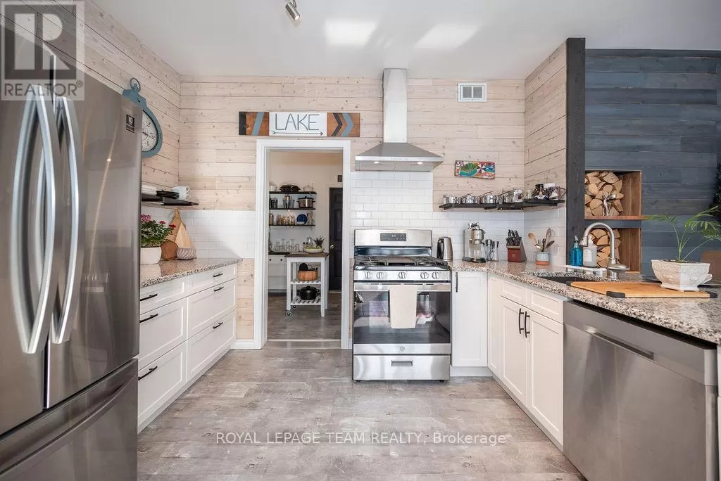 Hwy 60 in Barry's Bay to Paugh Lake Road. 188 Paugh Lake Road on right Elegant and beautifully designed ONE LEVEL 3 bedroom, 2 bath home situated on private 3.5 acres (approximate) lot, with frontage on exclusive Drohan Lake! Conveniently located within walking distance to all Barry's Bay has to offer, including shopping, Kamaniskeg Lake & launch, hospital! Featuring sun tunnels & large south-facing windows for an abundance of sunlight, the home boasts many upgrades including a new kitchen, complete with granite countertops, stainless steel appliances (2021); servery/pantry (2022) which leads to a cold room; renovated main bathroom (2022); renovated ensuite (2023). The home also features a dedicated laundry room, spacious primary bedroom w/ ensuite, 2 additional bedrooms, & an open concept kitchen/family room with cozy wood stove. Outside, the elevated landscaped grounds feature gardens, a12x12 pergola (2021), 8x10 wooden shed (2022), and a 24x8 private side deck (2024) that overlooks the landscape & water. There are stairs to the lake, and a plethora of woodland creatures will visit! The attached one car garage features a spacious workshop. This home is perfectly situated within close proximity to all the Valley offers including Renfrew County VTAC, world class hunting & fishing, ATVing, cross country skiing, ice fishing, skidooing, water sports, only 35 mins from Algonquin Park's East Gate, & much more. This home is ideal for retirees looking for main floor living, or a family looking for room to grow! ****EXTRAS**** Great property for staging all your motorized fun, such as skidoo/ATVing for trails down the street. Earth sheltered on 2 sides means cooler summers and reduced winter heating bills. This property was originally fitted for solar. On-Command hot water, and solar water heater on the metal roof. The home uses approximately 6 face cords of wood during the winter. Generator is located behind the house. (id:27476)