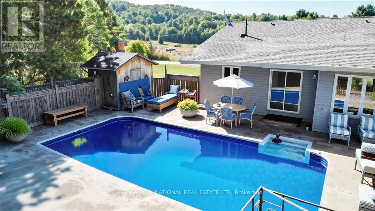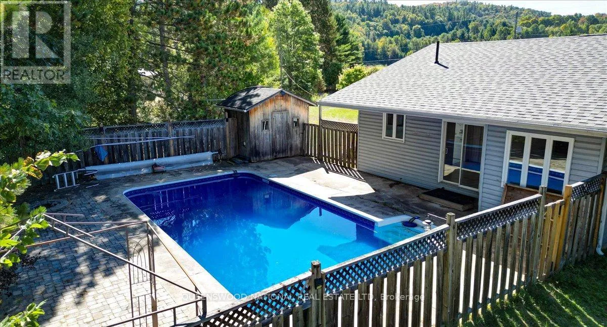 Cross Streets: Highway 60 & Opeongo Road. ** Directions: Take Hwy 60 To Opeongo Road. This spacious executive family home on 0.69 Acres is nestled in the hills of the Madawaska Valley surrounded by lakes and minutes from the town of Barry's Bay. On the main floor there are 4 bedrooms, 2 bathrooms, laundry room , 2 family rooms, a dining room and eat in kitchen with a sweet breakfast nook so the home is perfect for main floor living. The lower level has another family room, a walk in cedar closet for all your woolen goods and blankets and a workshop space. There is a large foyer entrance from the attached garage handy for all your winter boots and accessories. An inground newly lined pool lets you enjoy your own private resort, great for gatherings, family fun and also keeping fit! The property includes a fenced pool yard and a separate fenced dog run with room left over for gardens if you so desire. The many updates include a new roof in 2024, a new propane furnace 2024, new deck 2025, water softener 2024, new liner in the pool 2025, pool pump 2024, central air conditioning added 2018, newer flooring in all 4 bedrooms, some painting. This is a wonderful country home just minutes from town where you can access a great Hospital, Schools, shopping, churches and many activities and clubs to join. Just down the road is a beautiful Horse Riding Establishment that gives lessons if you are keen on horses. All furnishings are AI generated for space/sizing purposes only. (id:27476)