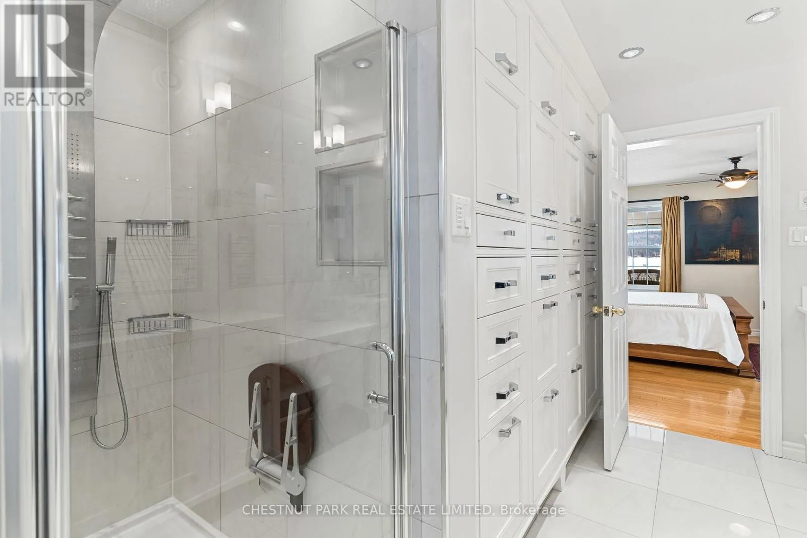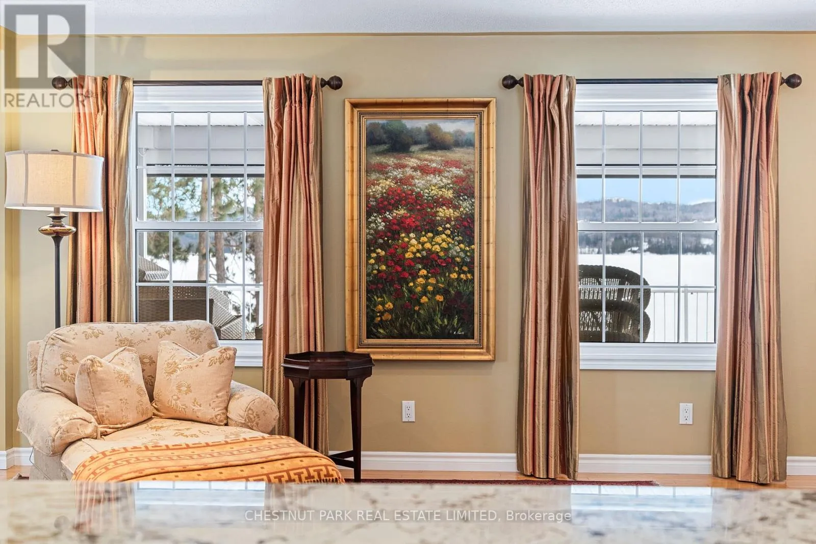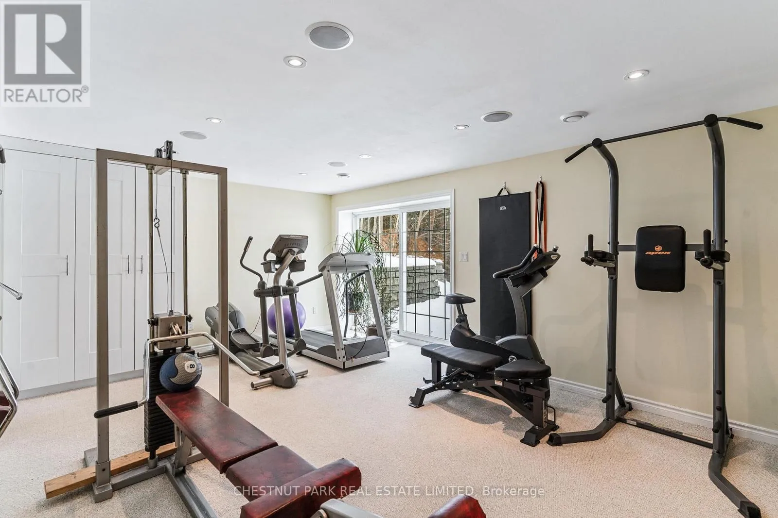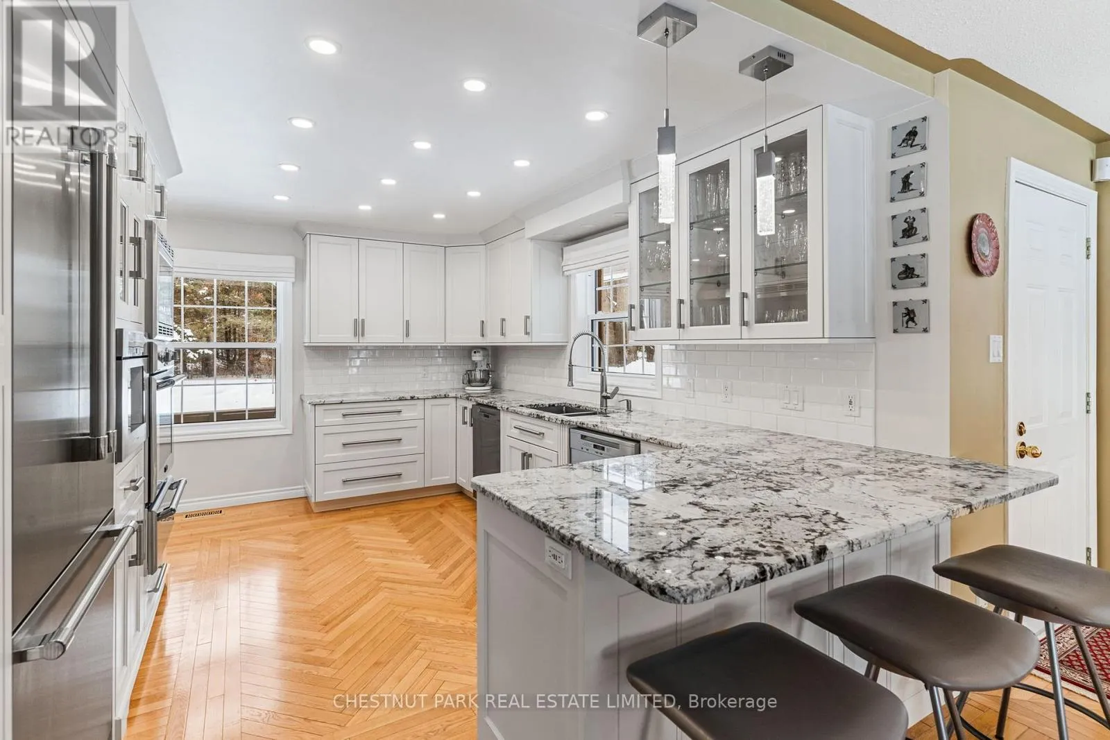 Cross Streets: Mask Island Drive & Lakeshore. ** Directions: Lakeshore Drive to Mask Island. Privately positioned on a peninsula lot with nearly 1,100 feet of shoreline and just under 3 acres, this is a rare Kamaniskeg Lake offering defined by scale, sun, and exceptional privacy. With ideal southern exposure and a private sand beach, the setting delivers all-day light, expansive water views, and the kind of seclusion seldom found on today's waterfront market. Designed for true four-season living, the two-storey brick home offers an open-concept main level that balances comfort and function. The custom kitchen is thoughtfully appointed with granite surfaces, extensive cabinetry, built-in appliances, dual dishwashers, automatic coffee maker, and a professional six-burner gas range with grill and dual ovens, additional oven and microwave. Generous bar seating anchors the space for effortless entertaining. The adjoining living area features vaulted ceilings, light oak floors, in-ceiling speakers, and a gas fireplace, with patio doors opening to both the lakeside deck and a covered porch equipped with four Phantom retractable screens-extending enjoyment beyond the summer season. The main-floor primary suite captures peaceful lake views and includes a spacious ensuite. Upstairs, 4 additional bedrooms, a full bath, secondary lounge, and reading nook provide flexibility for family and guests. The walk-out lower level adds valuable living space with a fitness area opening to a stone patio, an inviting entertainment zone with wet bar and woodstove, and a dedicated wood room with exterior access. Landscaped grounds include an in-ground sprinkler system drawing from the lake, beach toy storage, and power to the shoreline for a boat lift and beach outlet. Two detached double garages offer outstanding storage and versatility, including space for vehicles, recreational equipment, and a 21-foot boat with drive-through access. A substantial, private waterfront property with year-round access-just minutes to Barry's Bay and essential amenities, including hospital. (id:27476)